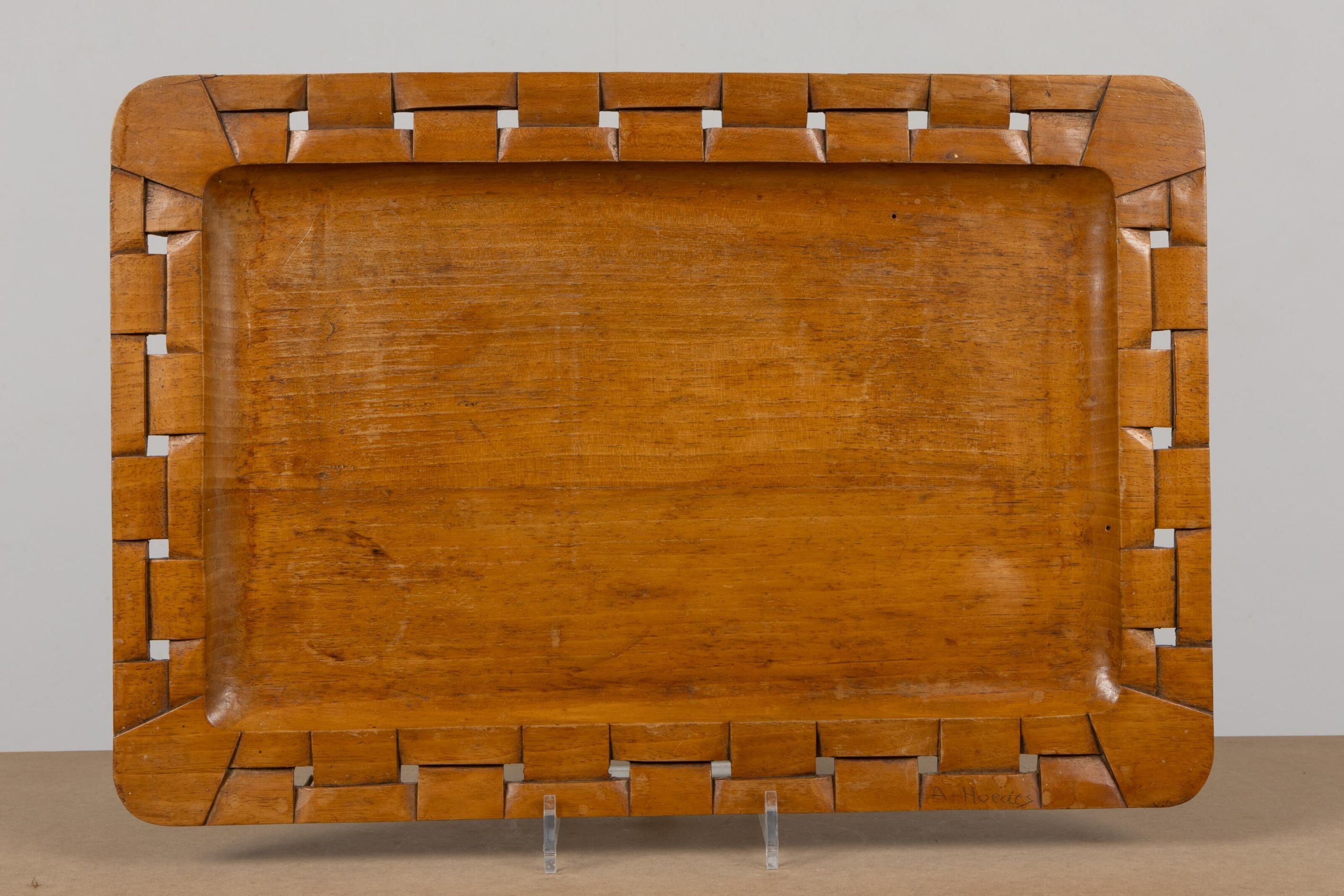 Deux plateaux en bois sculpté, dont un signé A.HODES.