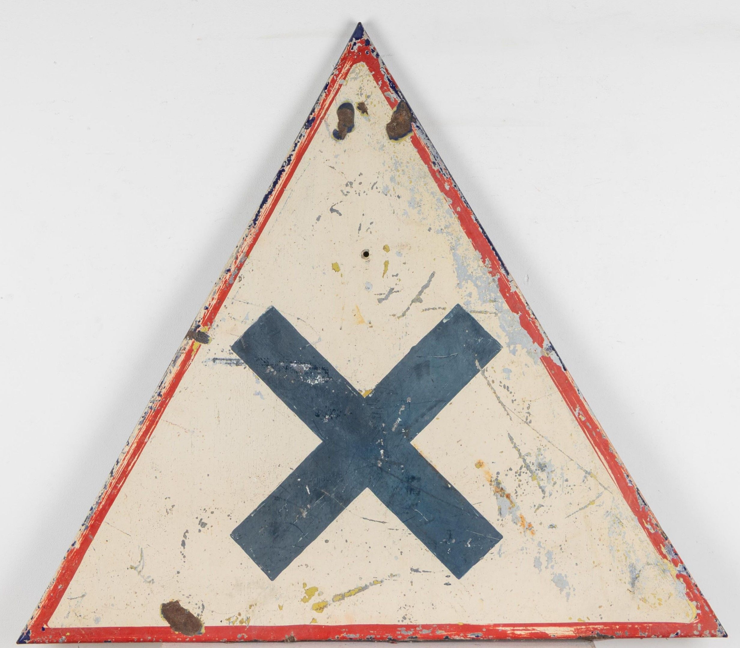 Plaque de signalisation routière triangulaire pour carrefour fond beige.