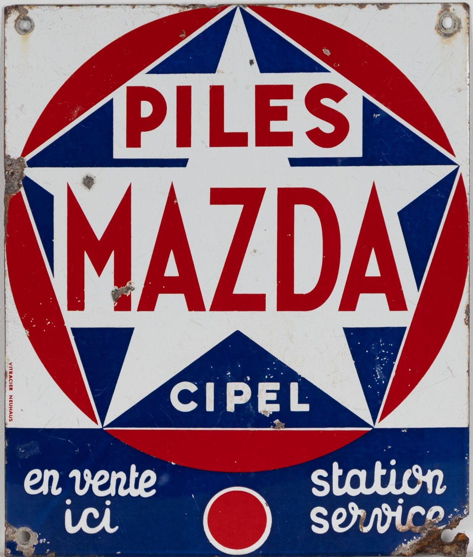 Piles MAZDA Cipel. Plaque en tôle émaillée.