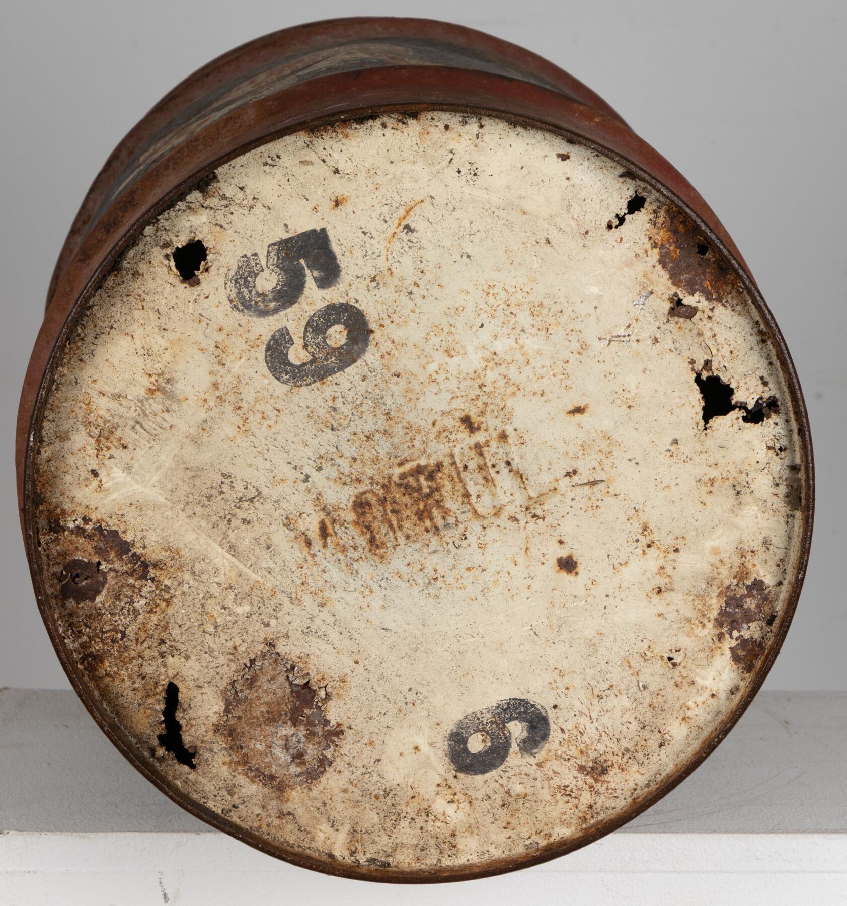 Bidon en tôle peinte.