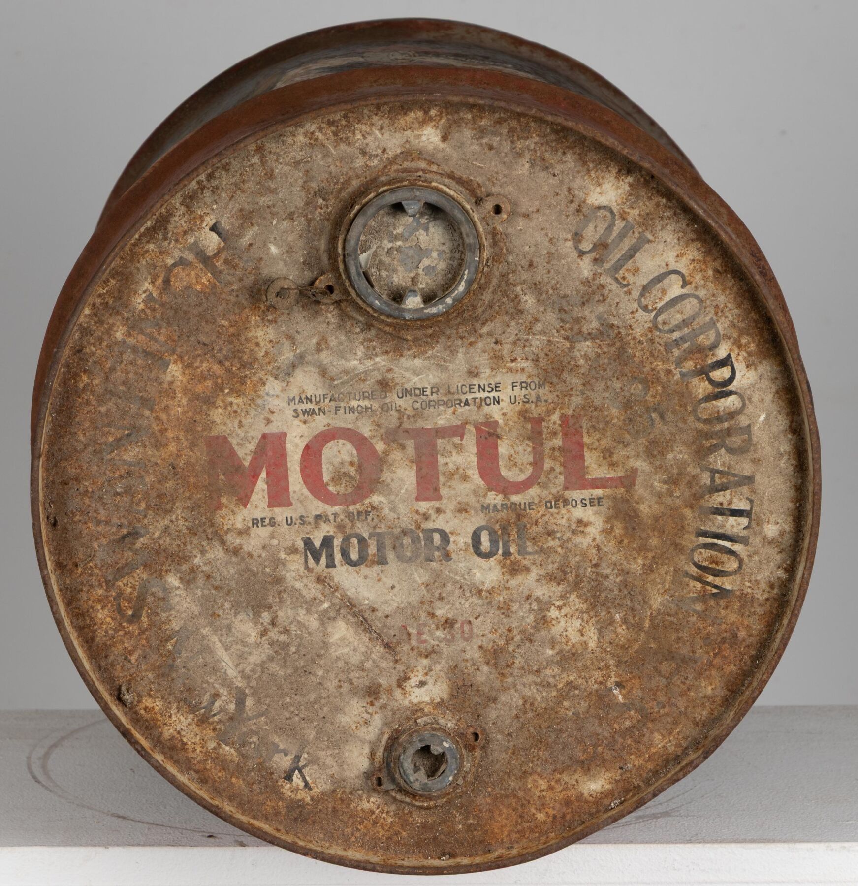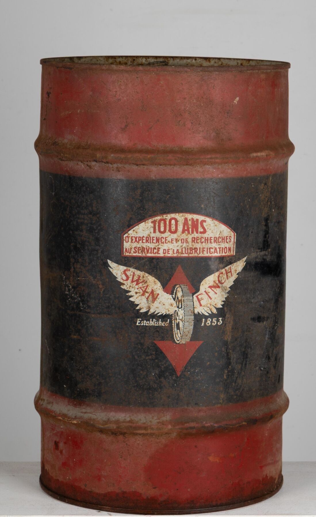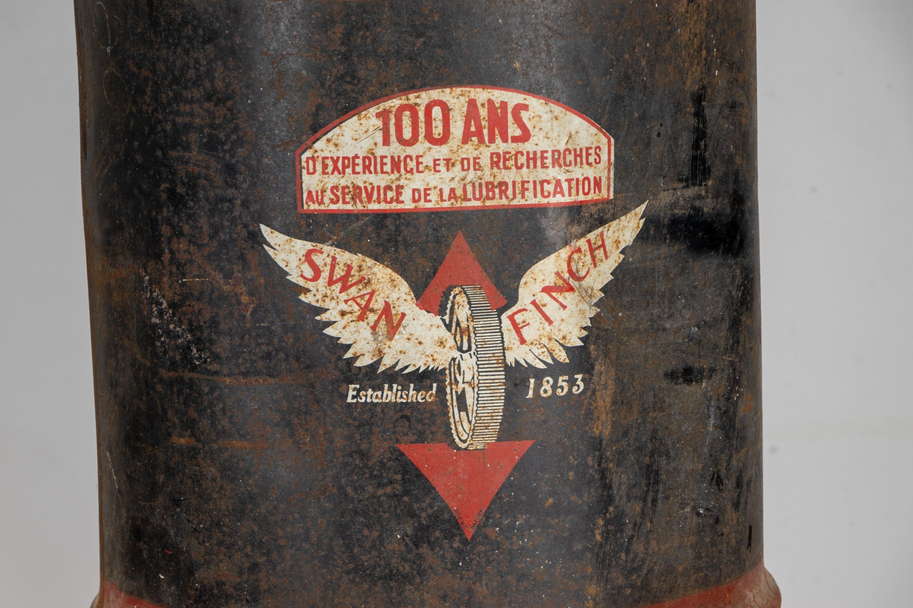 SWAN FINCH. Bidon en tôle peinte.