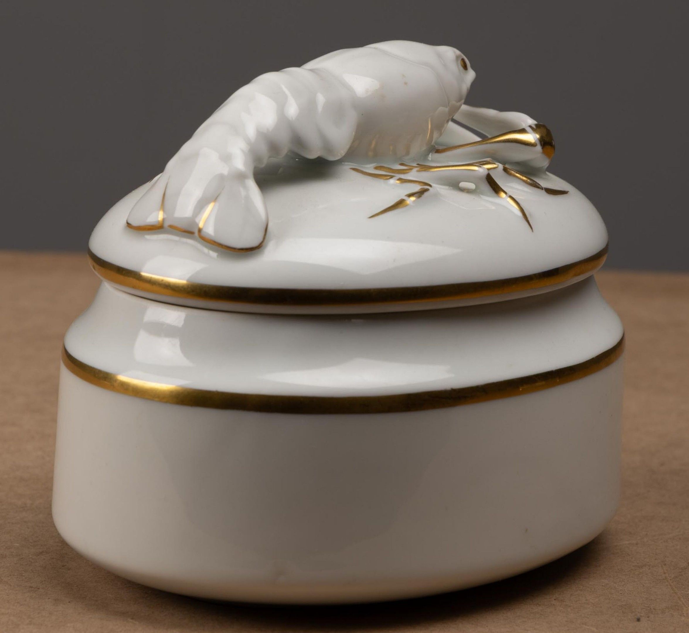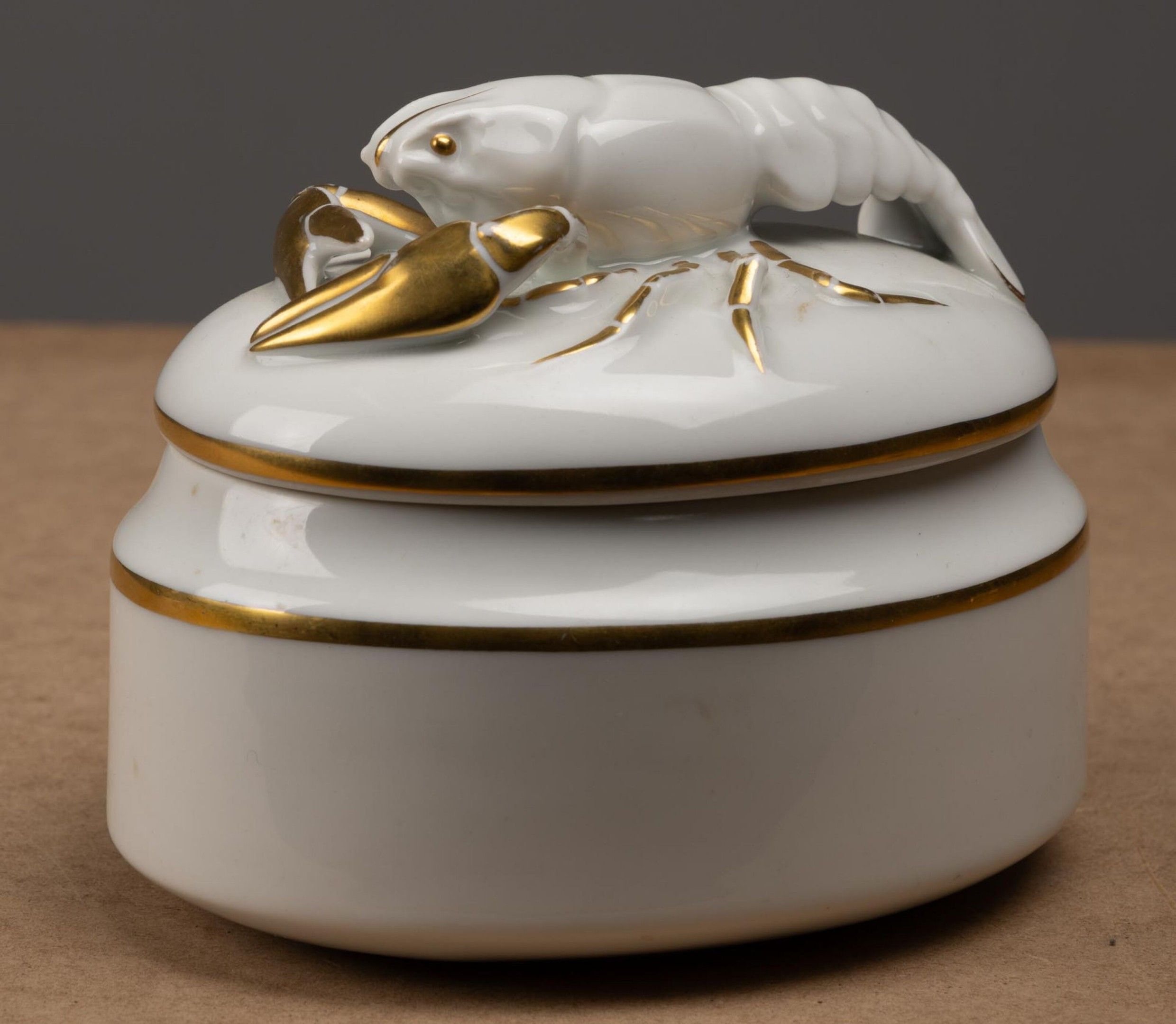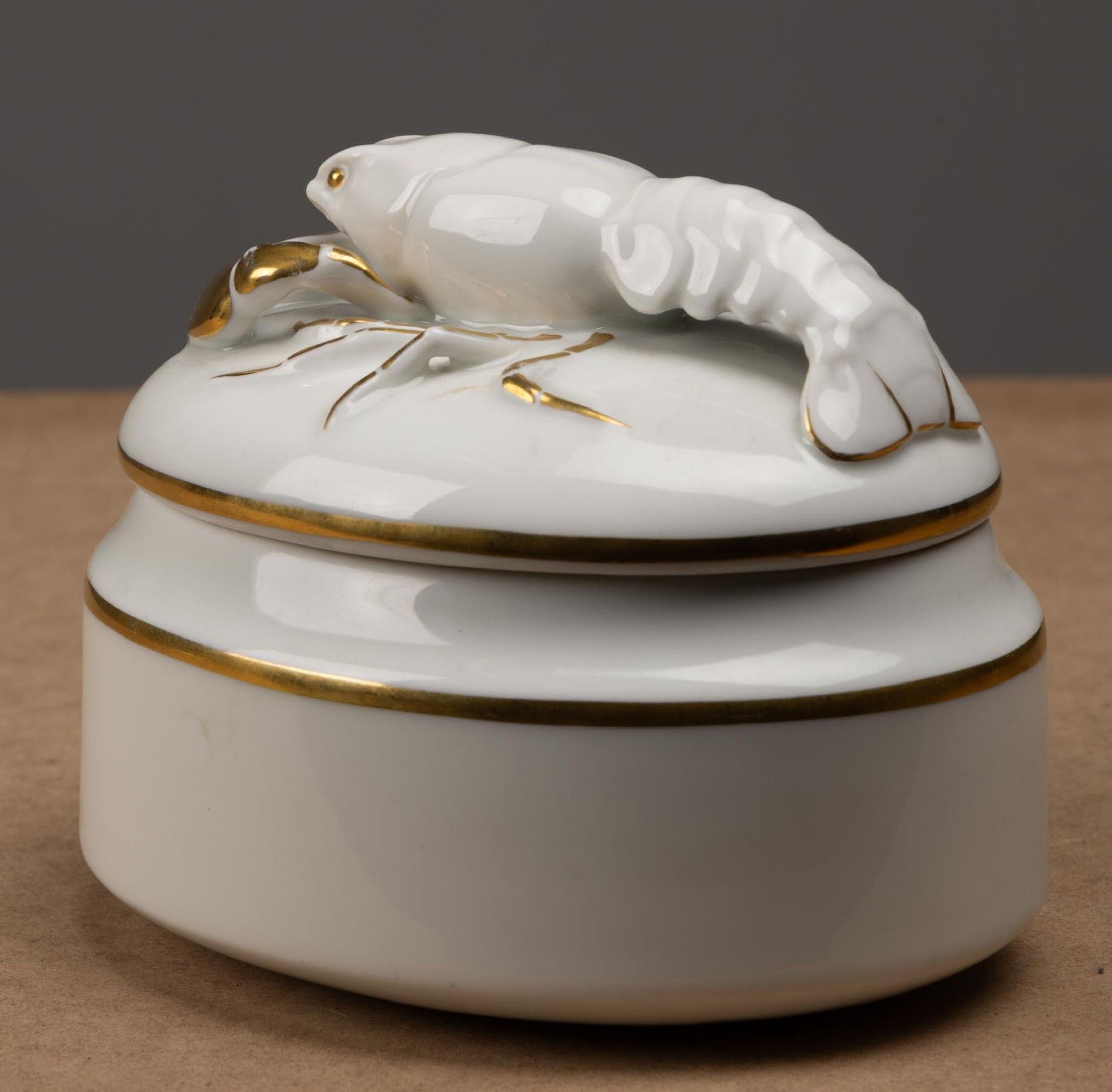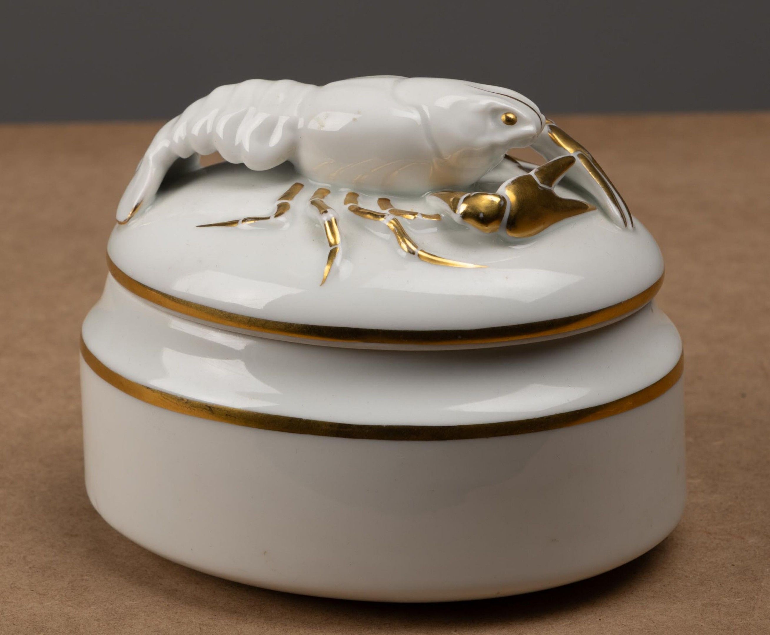 Boite couverte en porcelaine, la prise figurant une écrevisse.