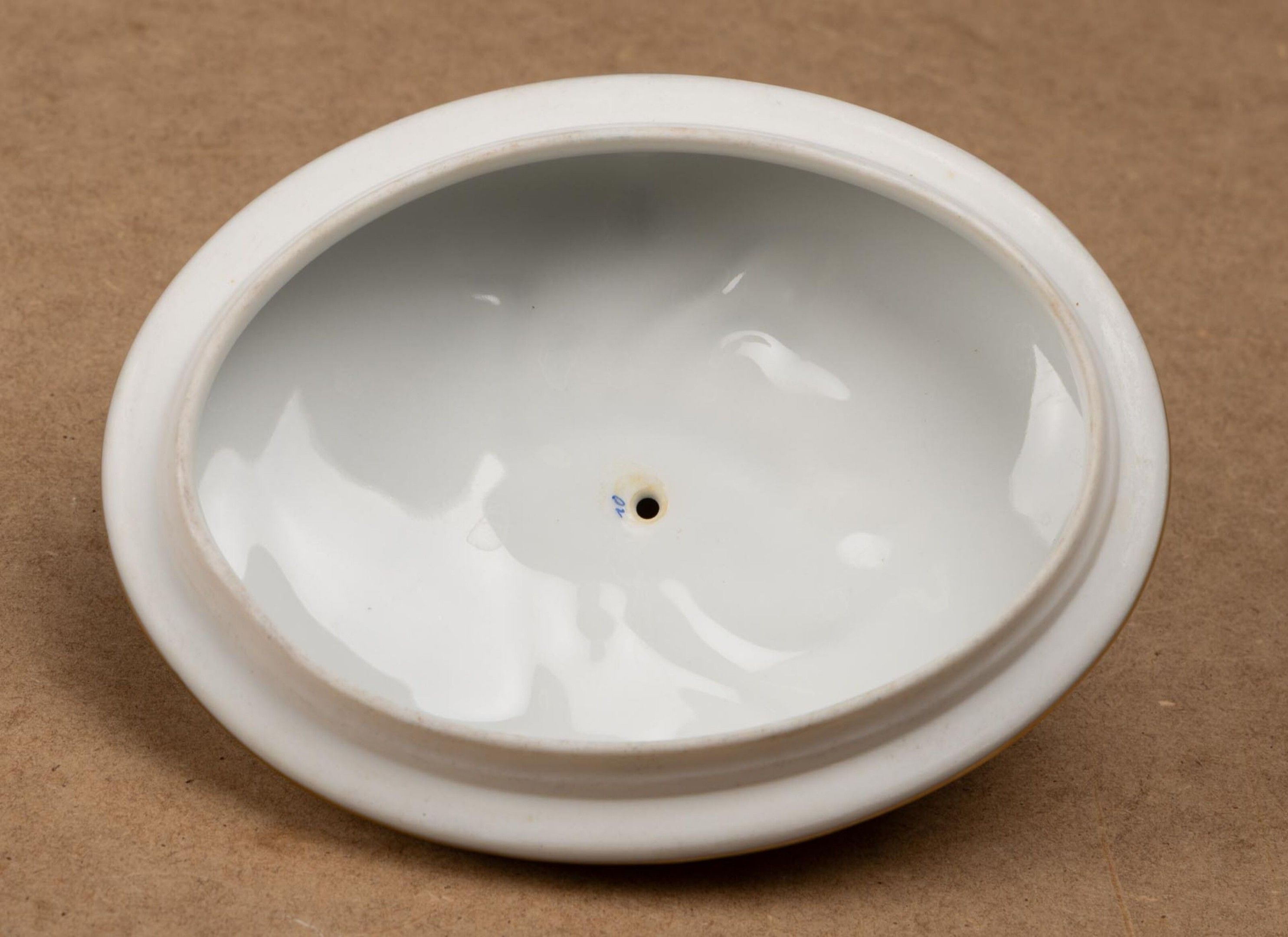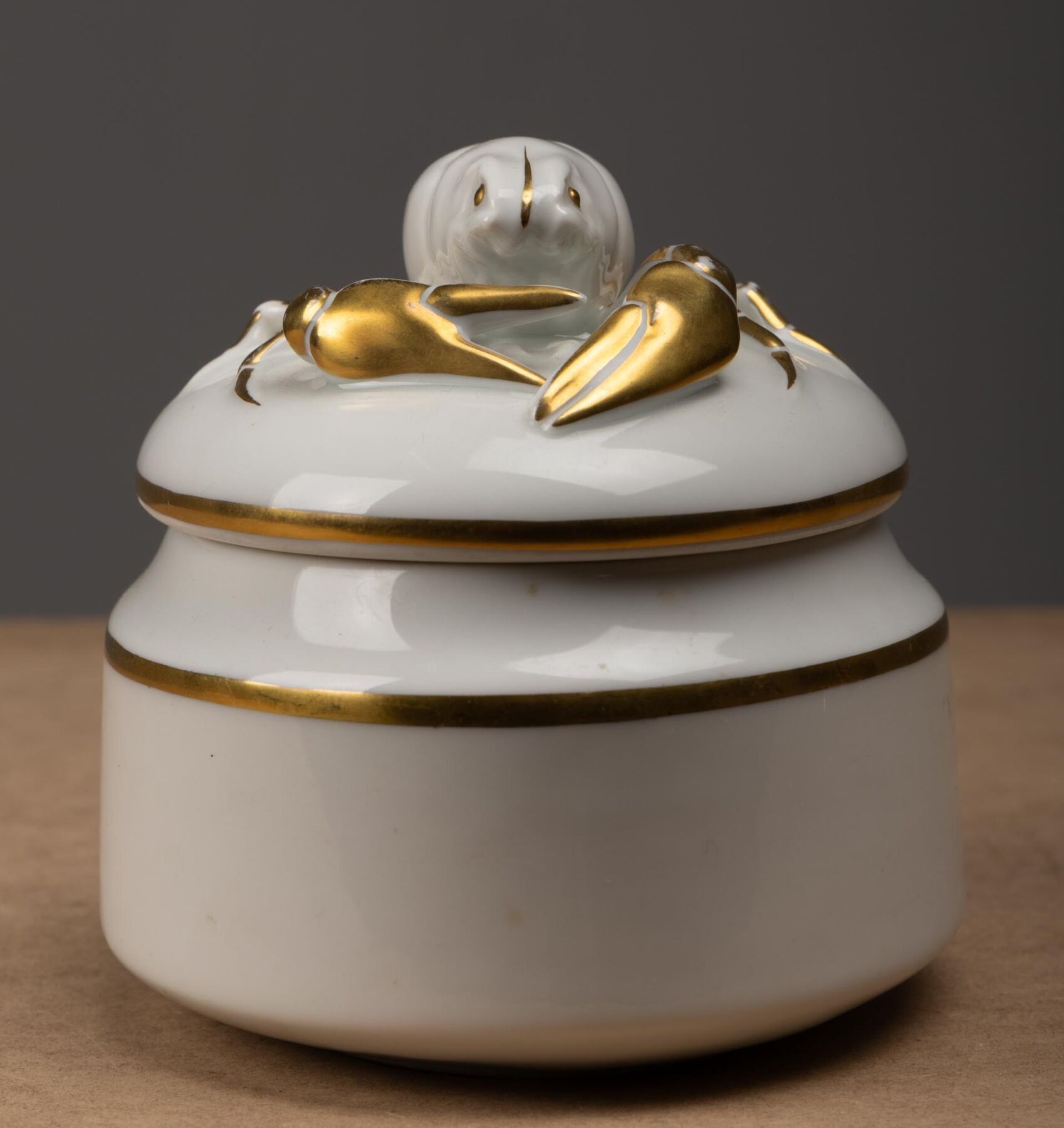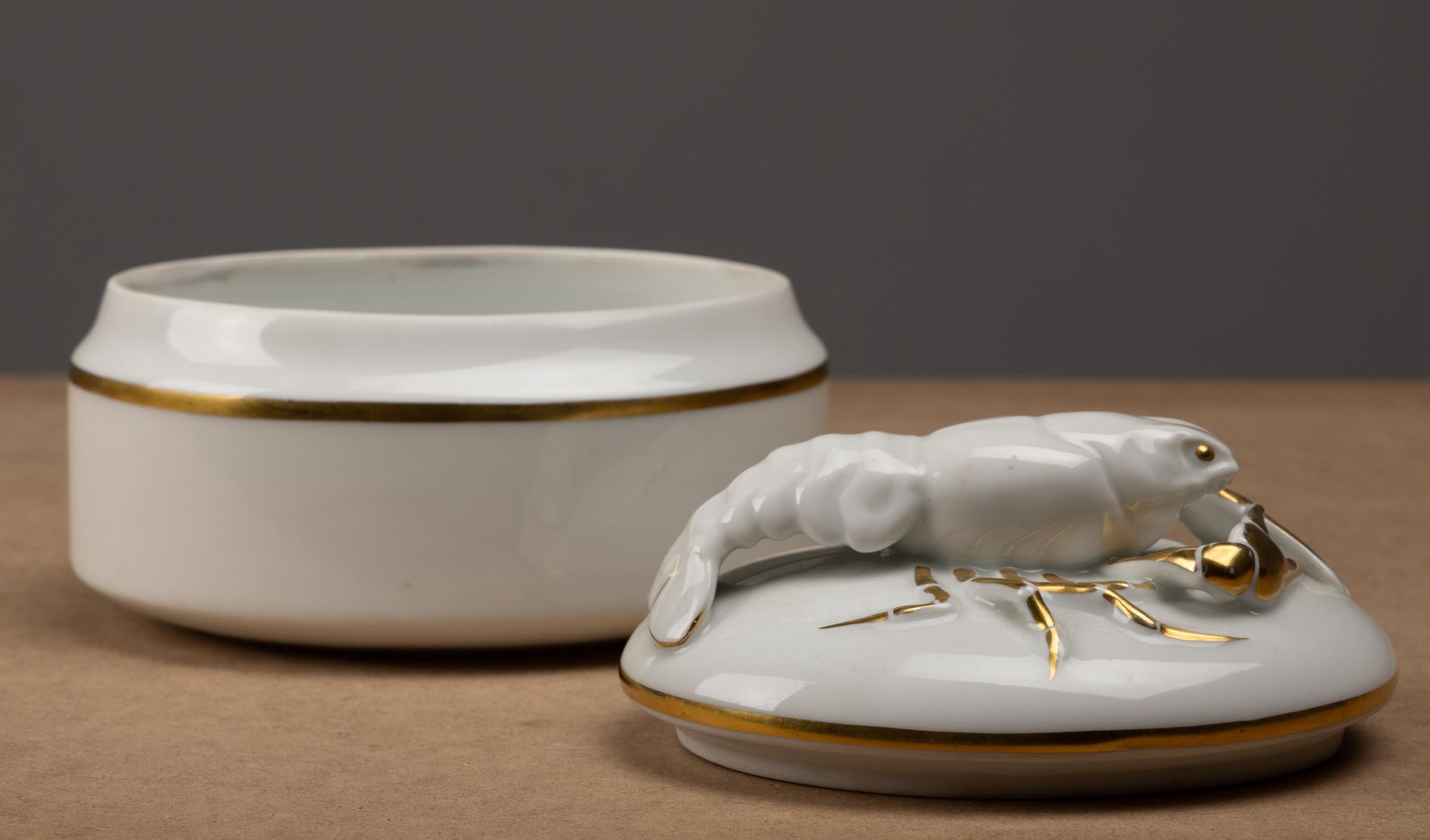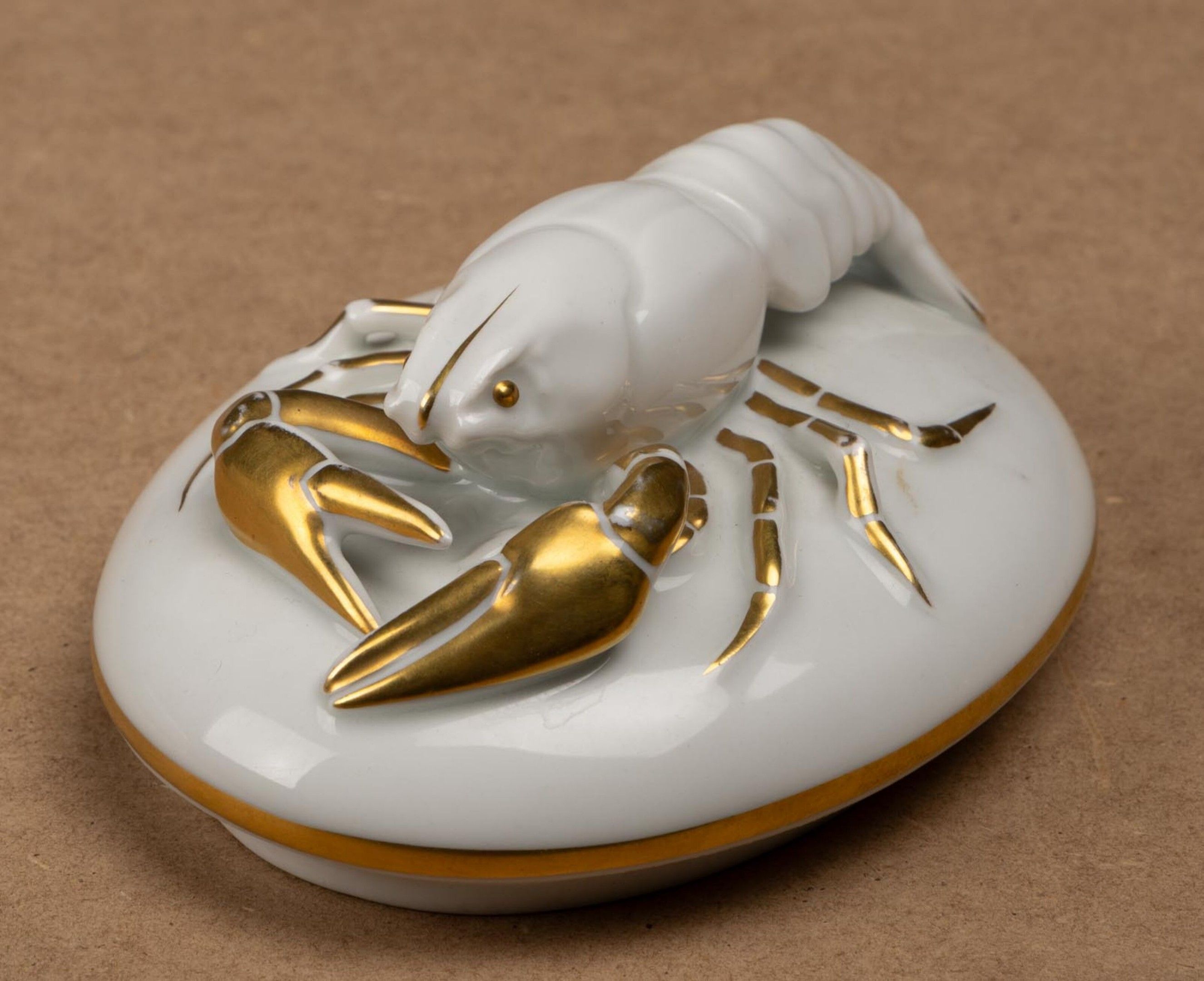 Boite couverte en porcelaine, la prise figurant une écrevisse.