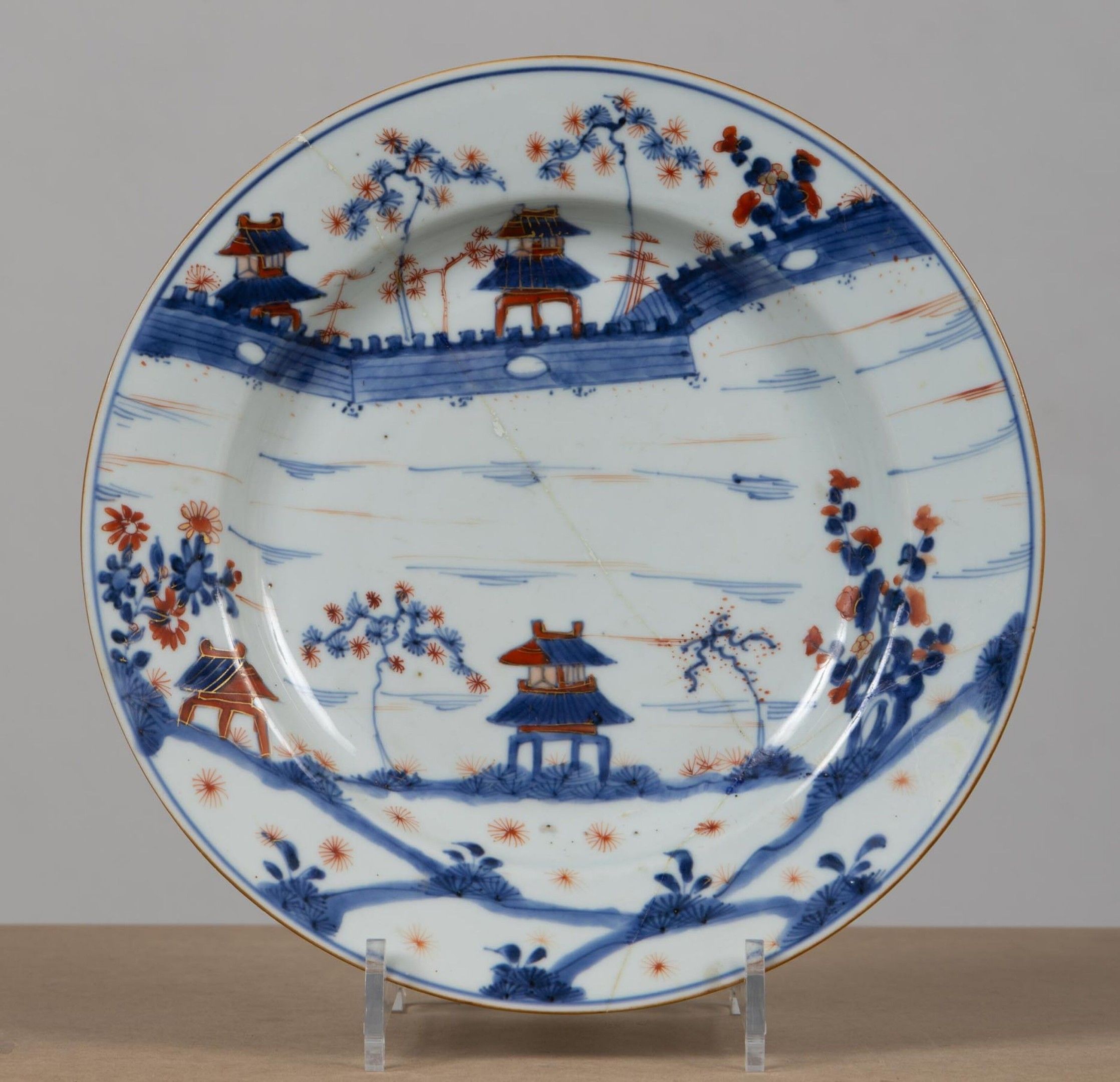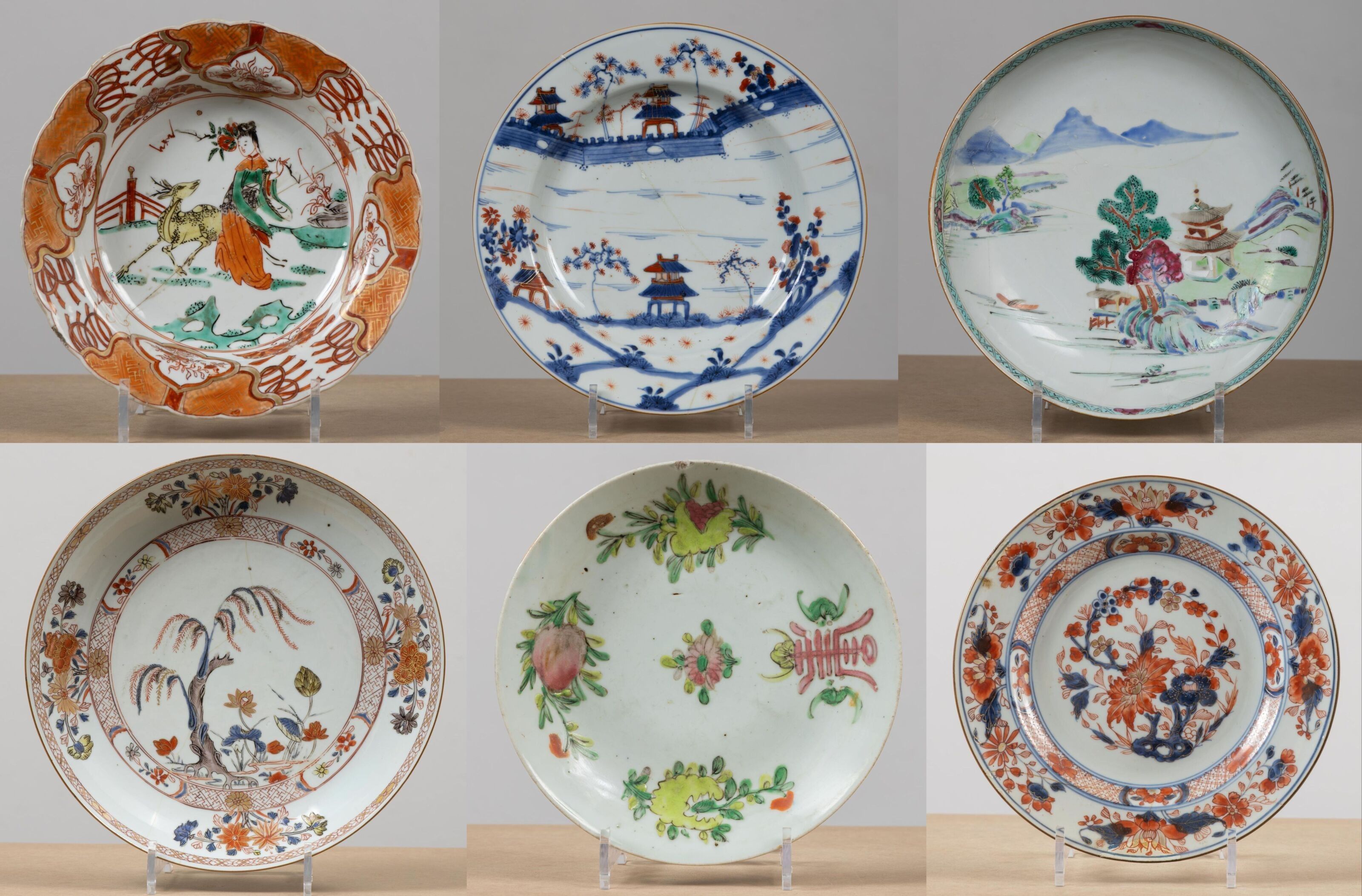 Ensemble de six assiettes en porcelaine polychrome.
