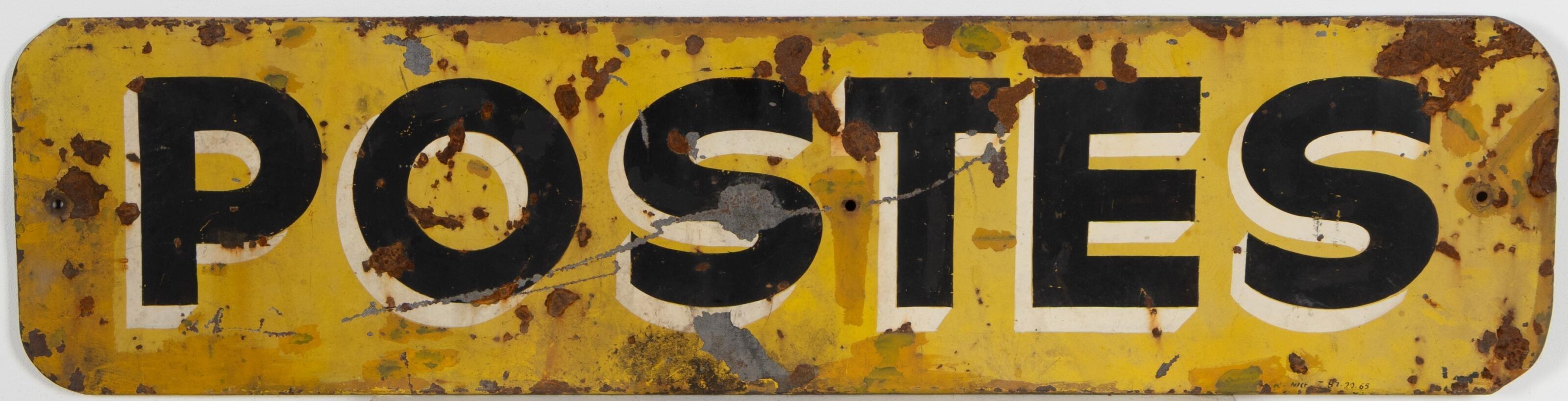Plaque en tôle peinte , lettrage noire sur fond jaune "Poste…