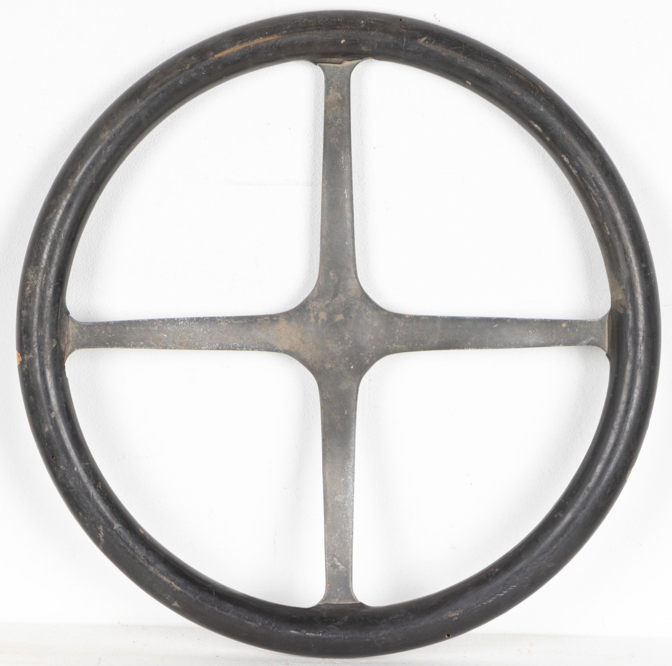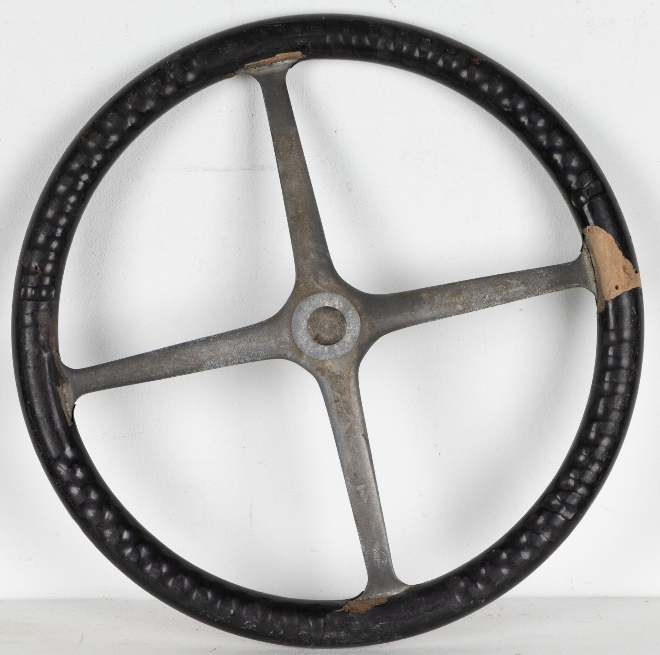 PEUGEOT. Volant pour véhicule des années 1920. D_18 cm D_2 cm, chape de serrage coupée pour démontage.