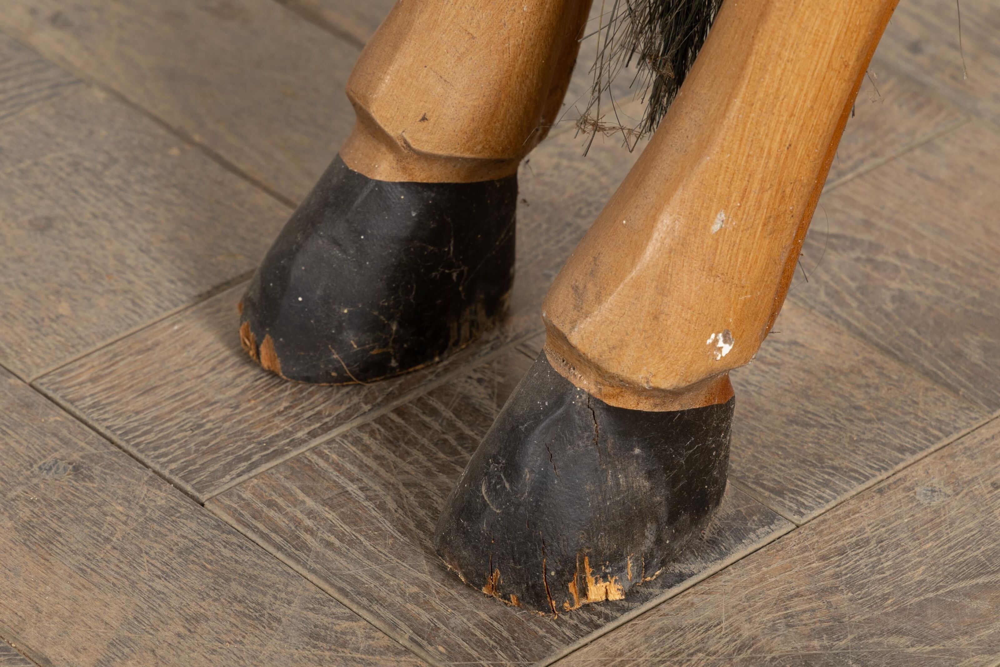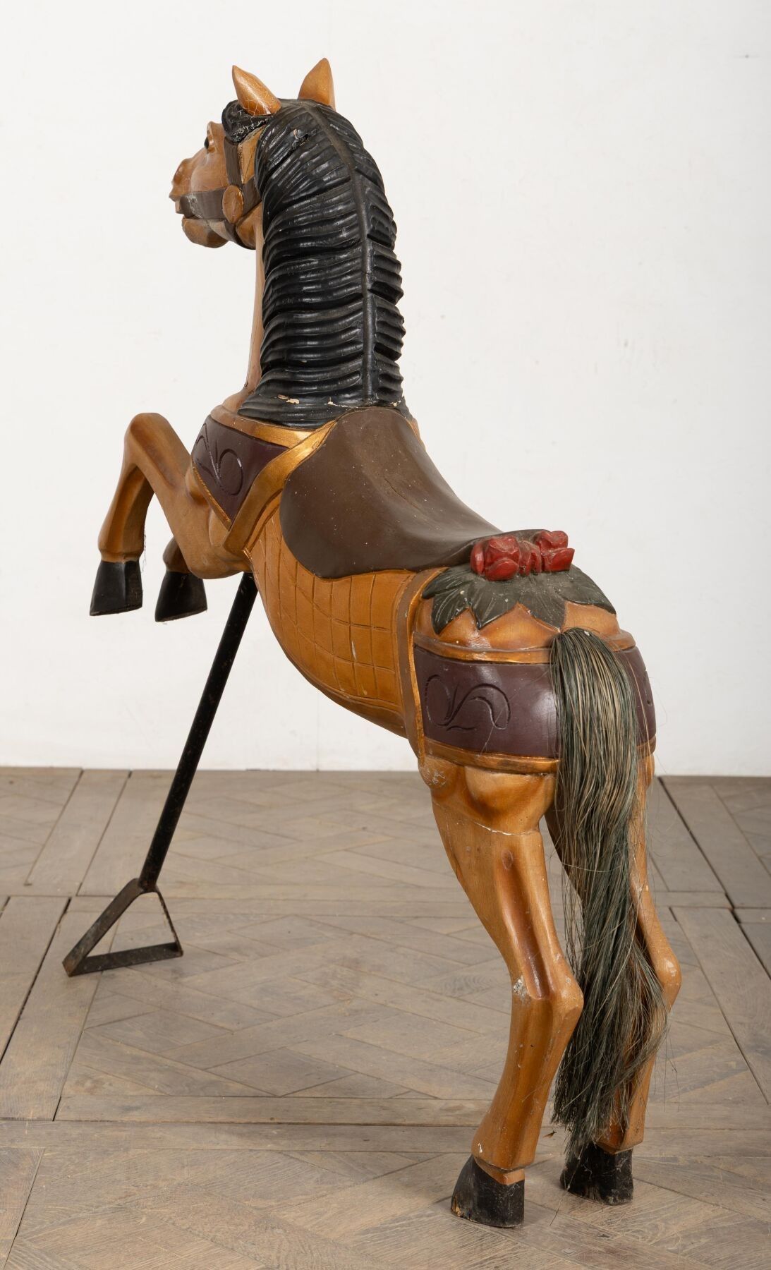 Cheval dans le style des chevaux de carrousel en bois polychrome.