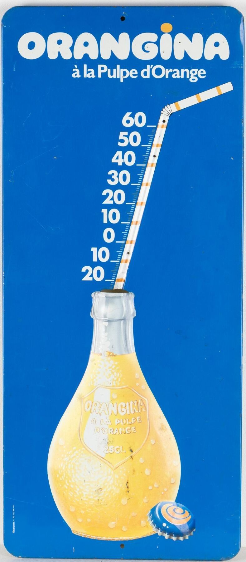 ORANGINA. Thermomètre en tôle imprimée "ORANGINA à la pulpe …