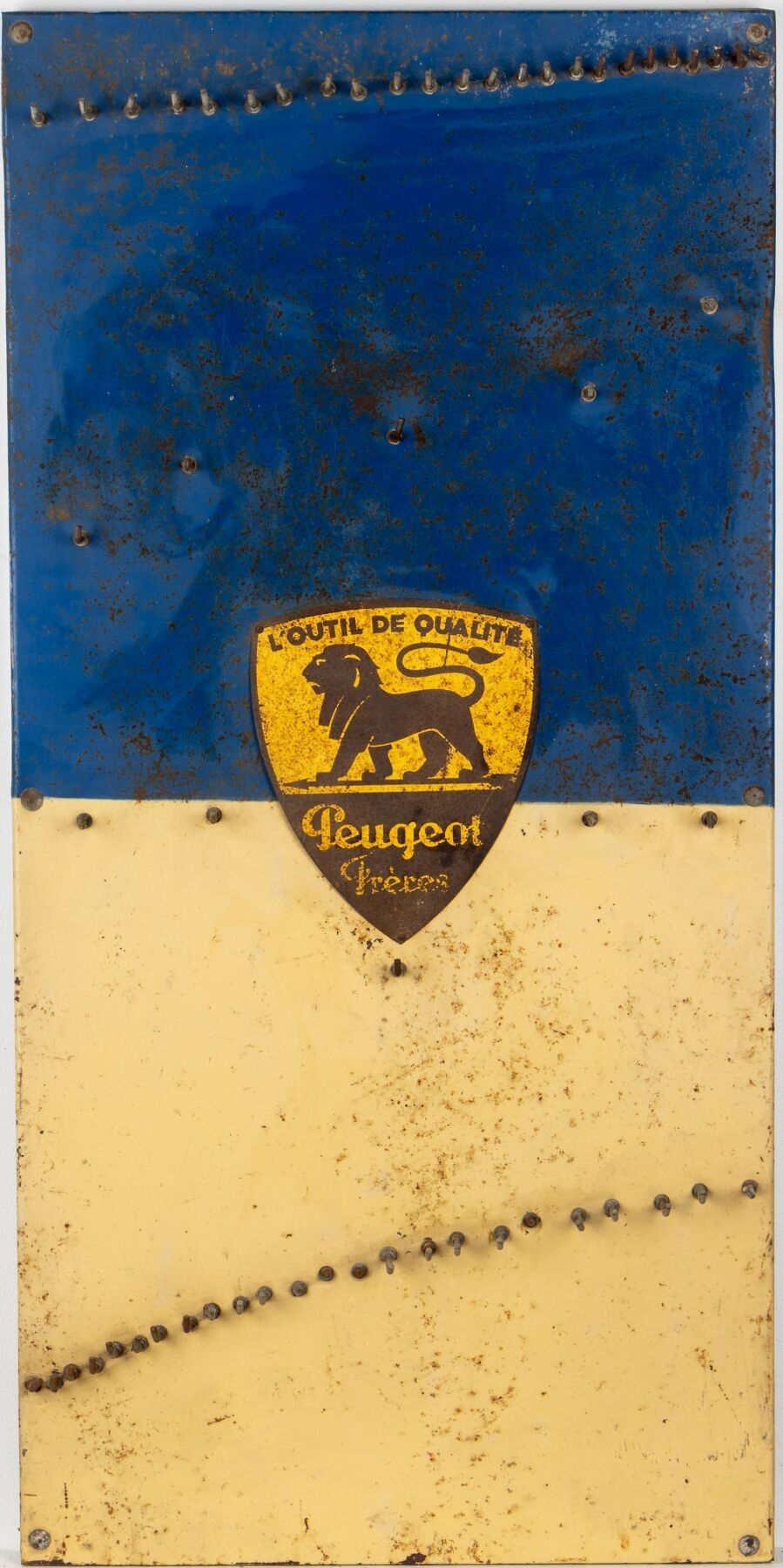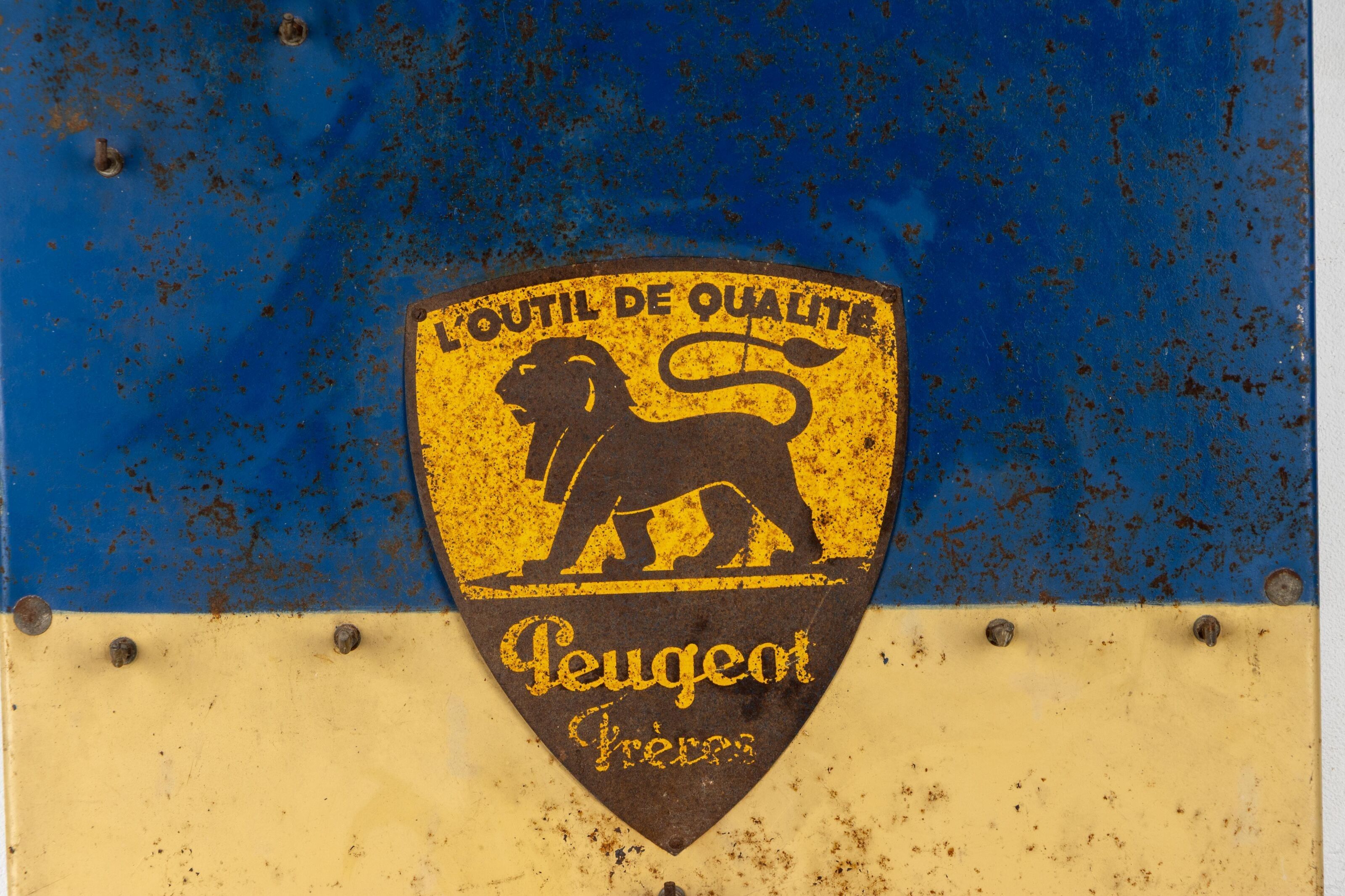 PEUGEOT FRERES. Plaque en tôle bleu et crème formant porte-o…