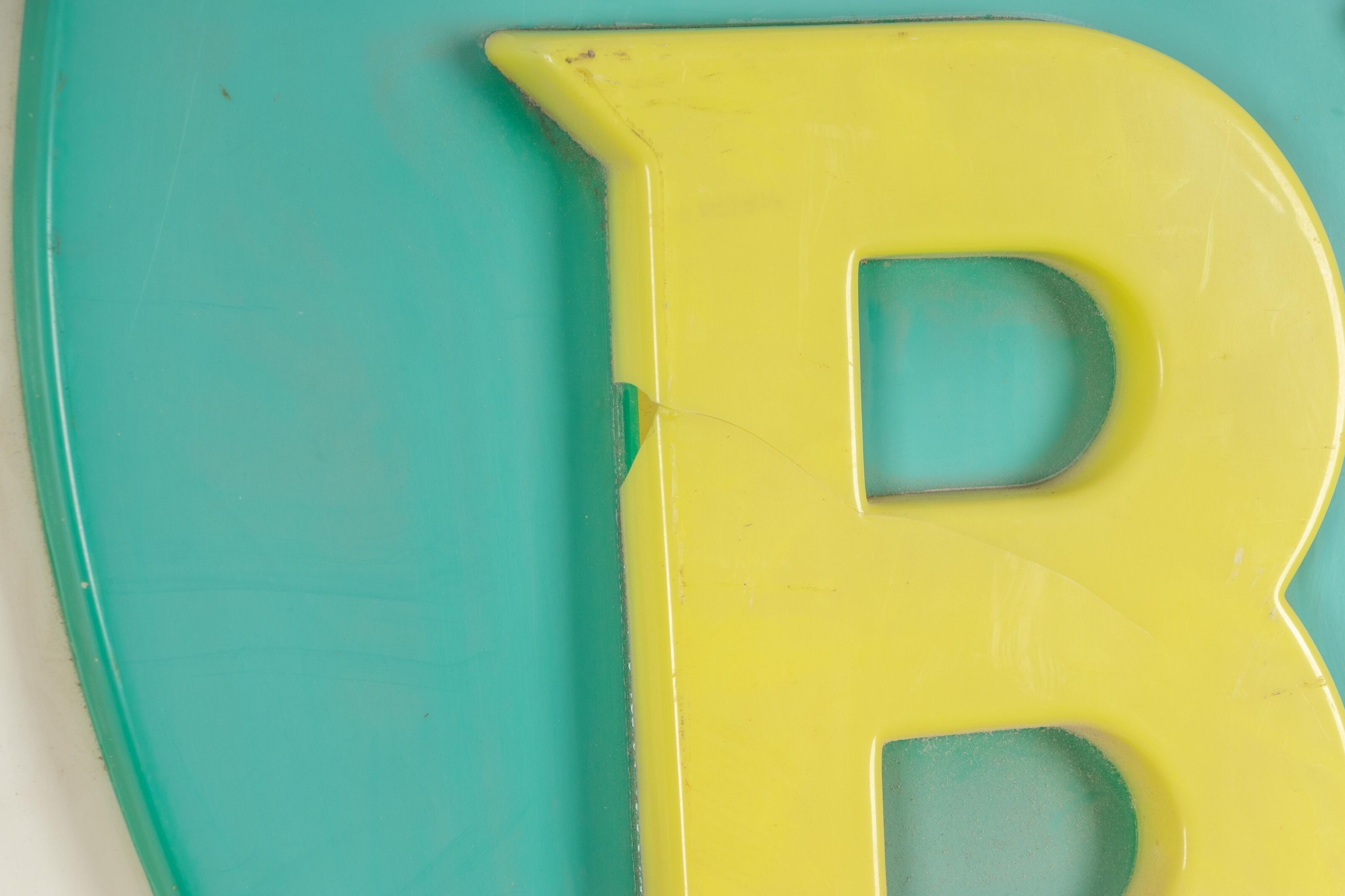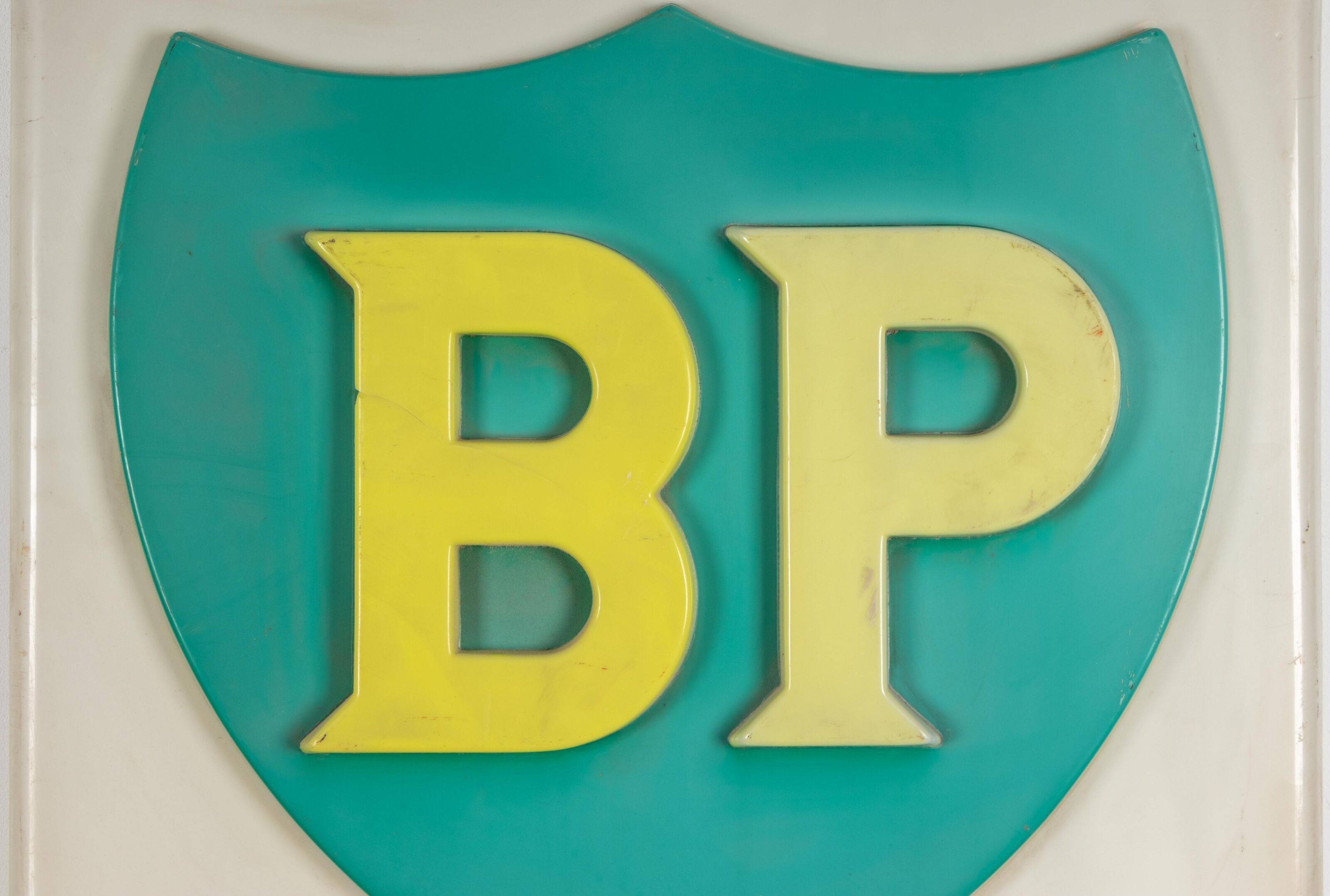 BP. Plaque d'enseigne lumineuse en plastique moulé.