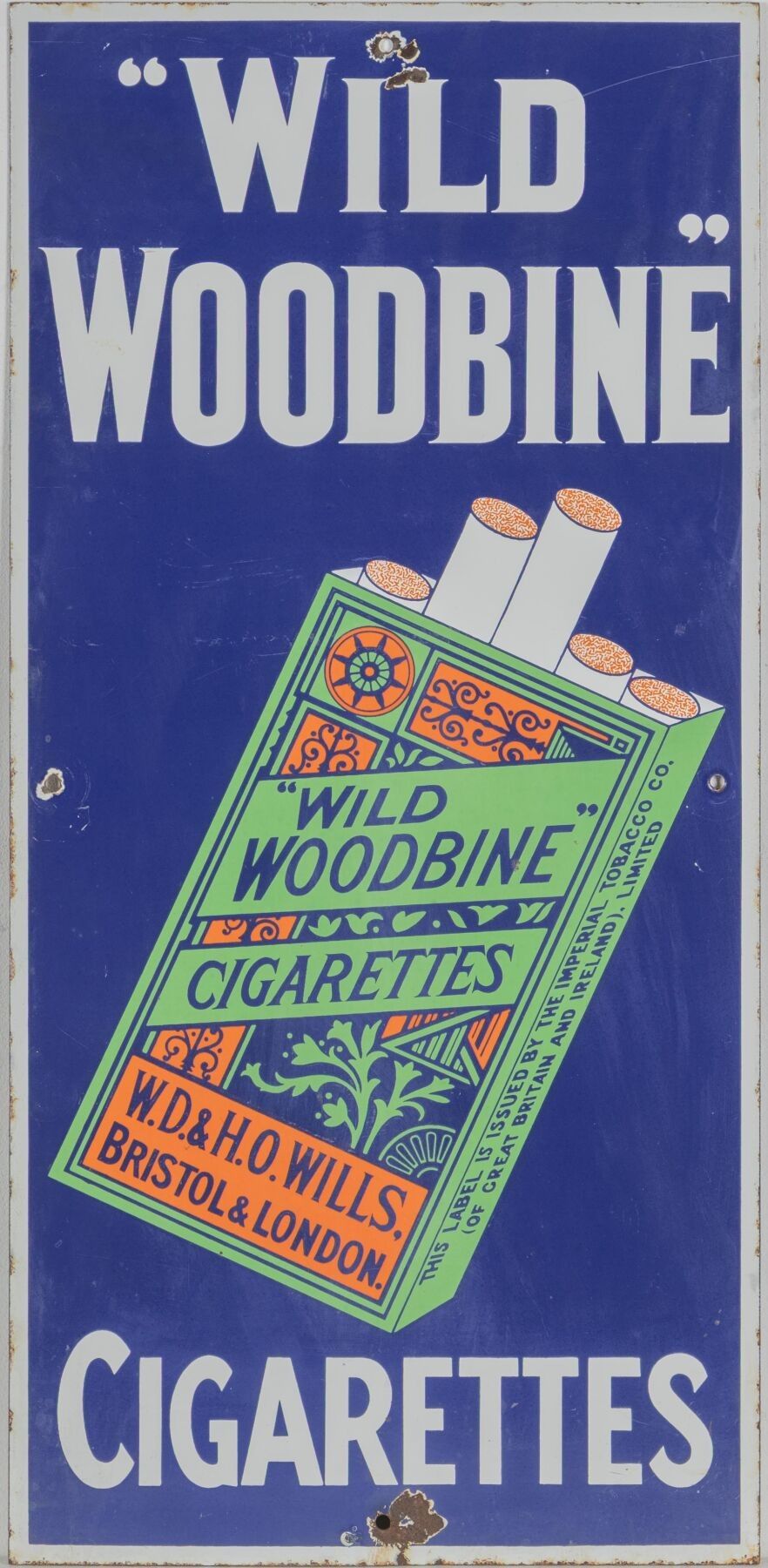 WILD WOODBINE, cigarettes. Plaque en tôle émaillée.