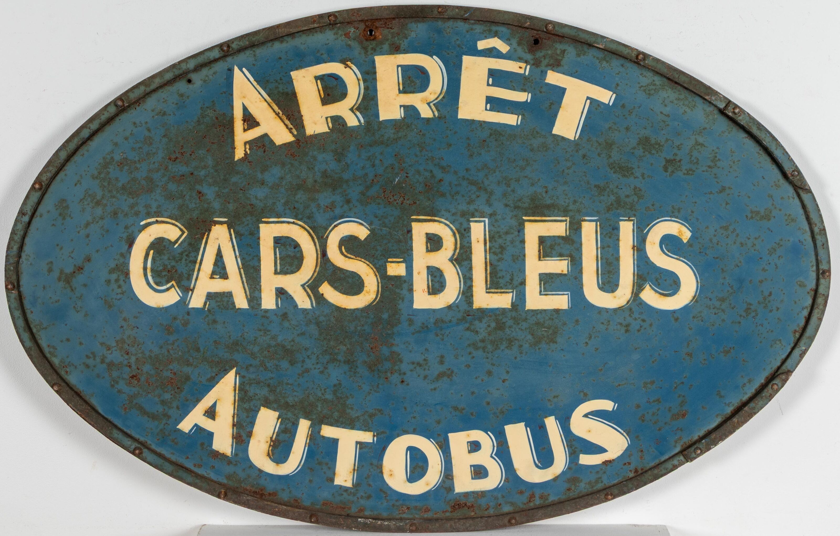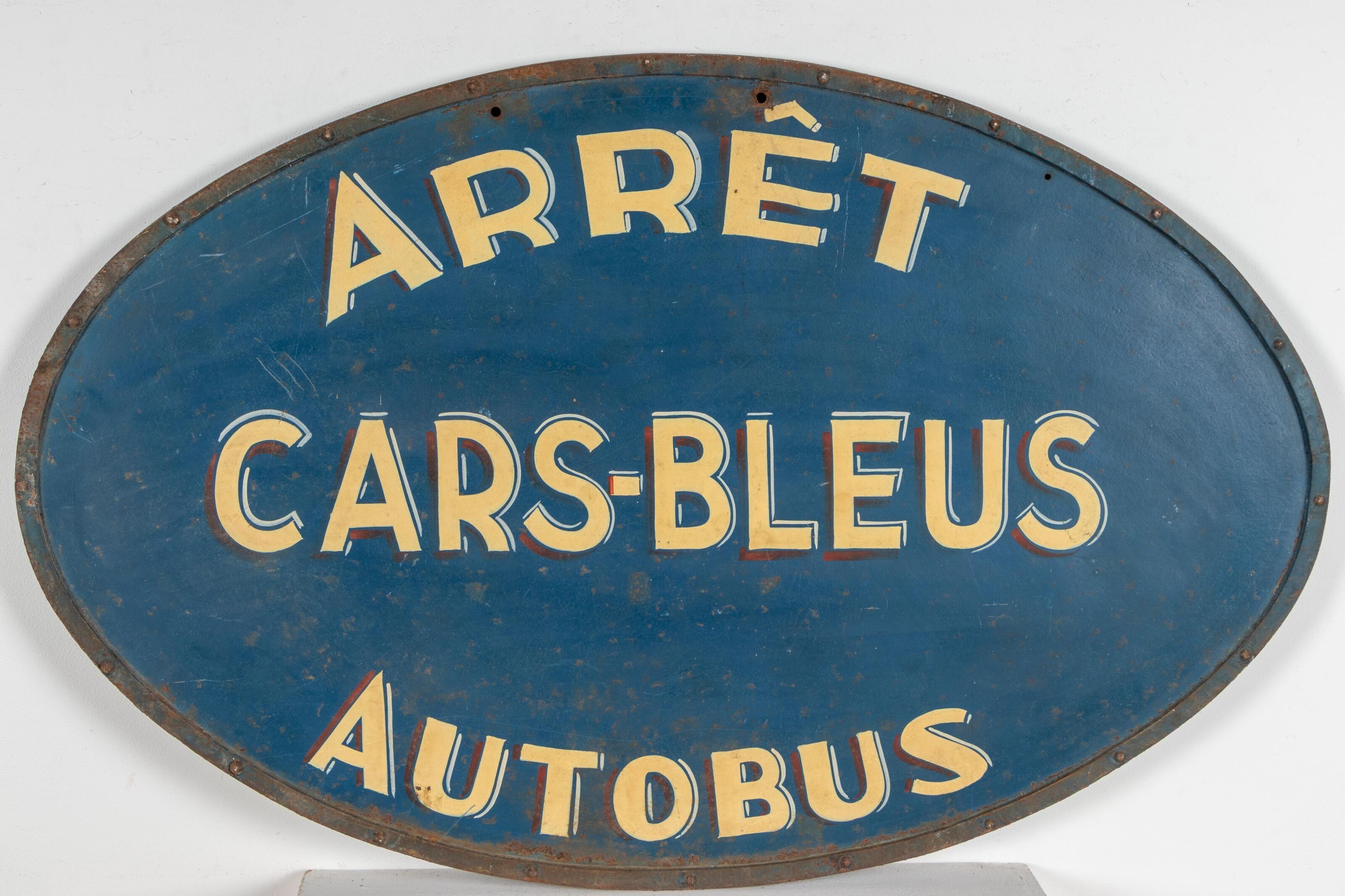 Tôle peinte double face "Arrêt Cars-Bleus Autobus"