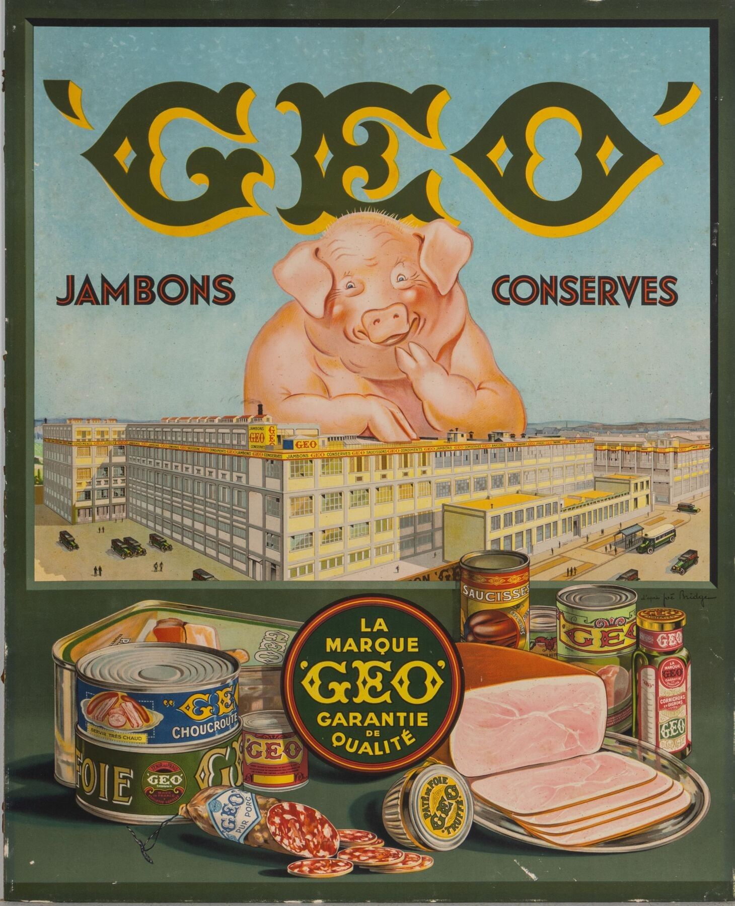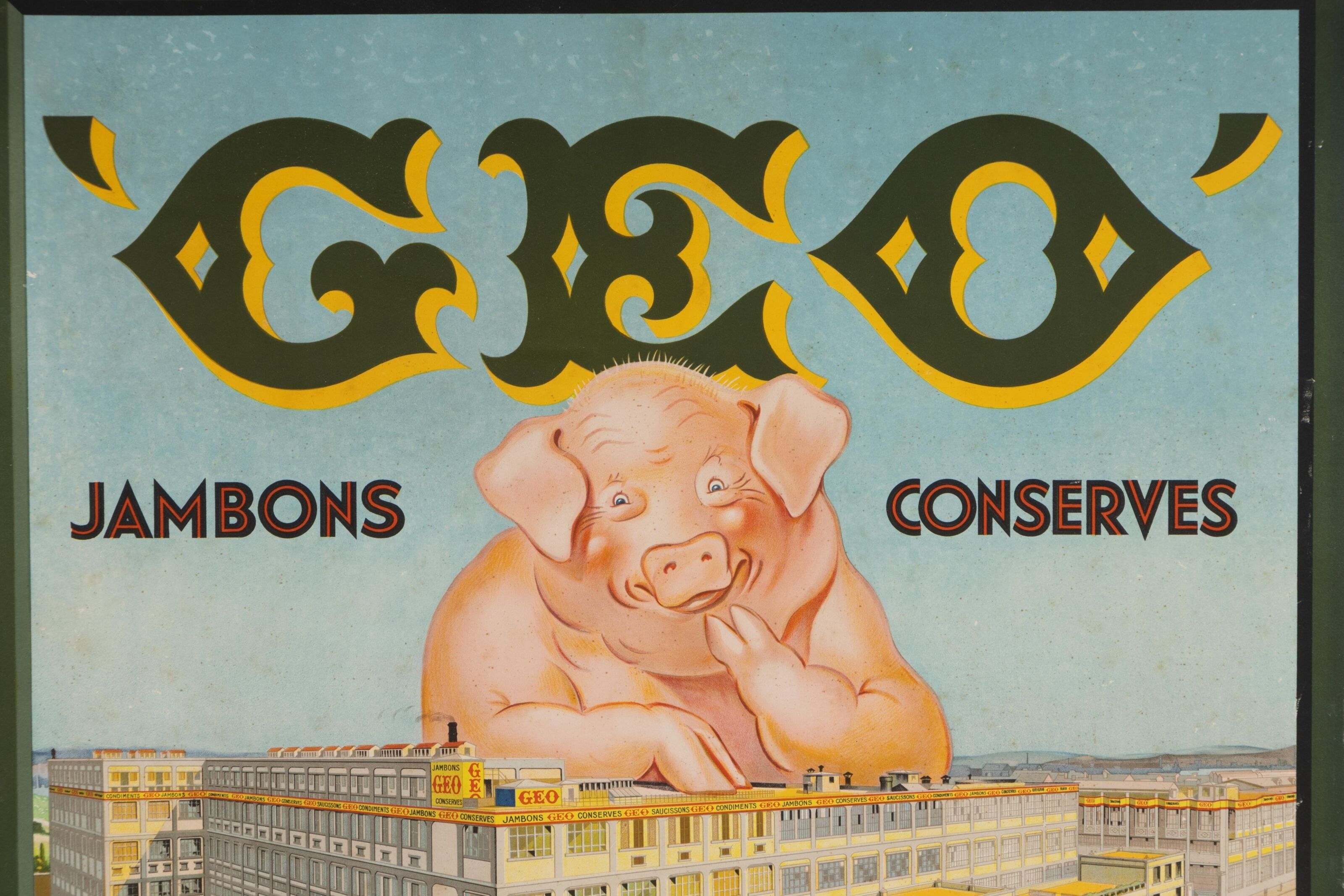 GEO Jambons - Conserves. Carton Publicitaire d'après Joé Bri…