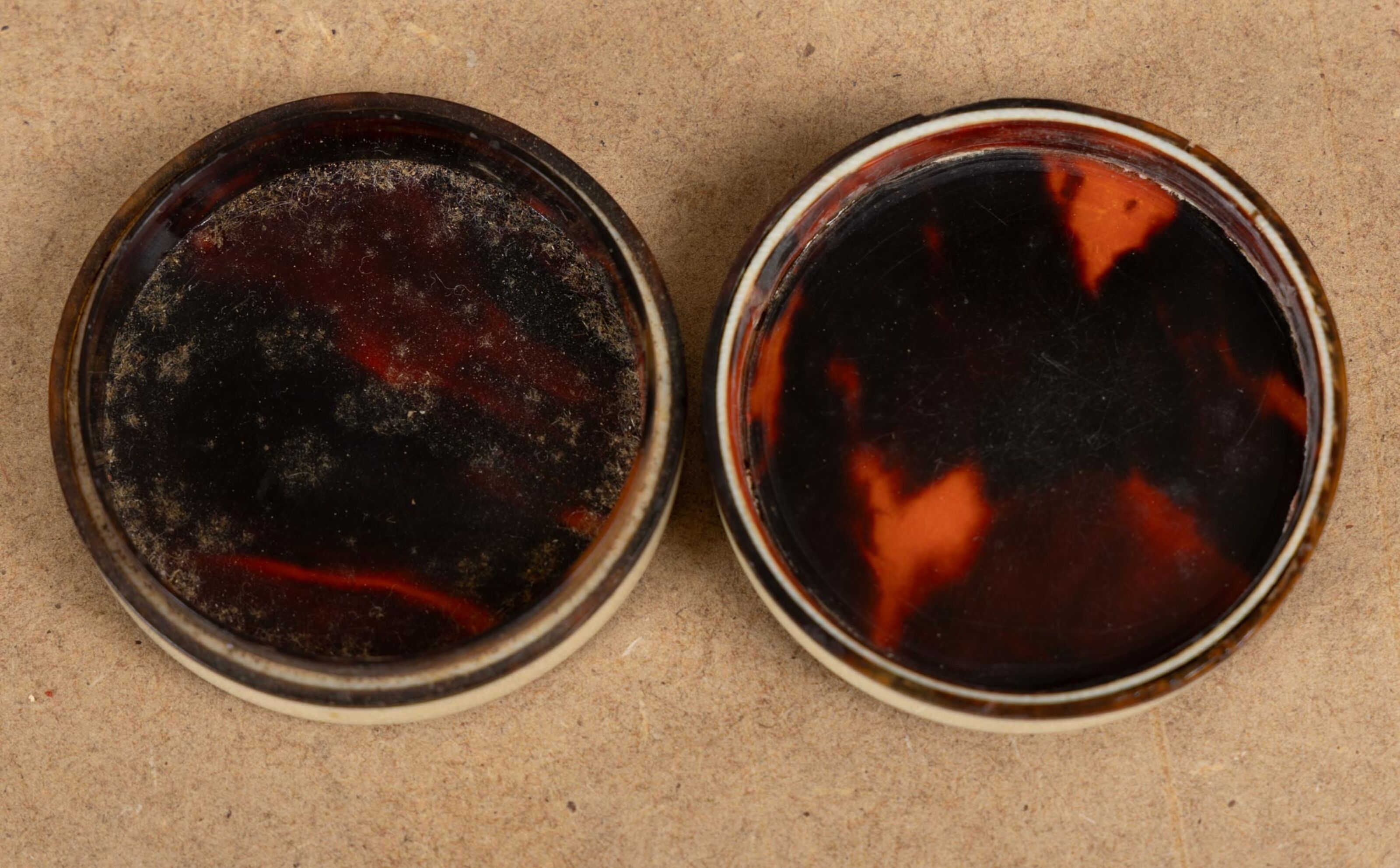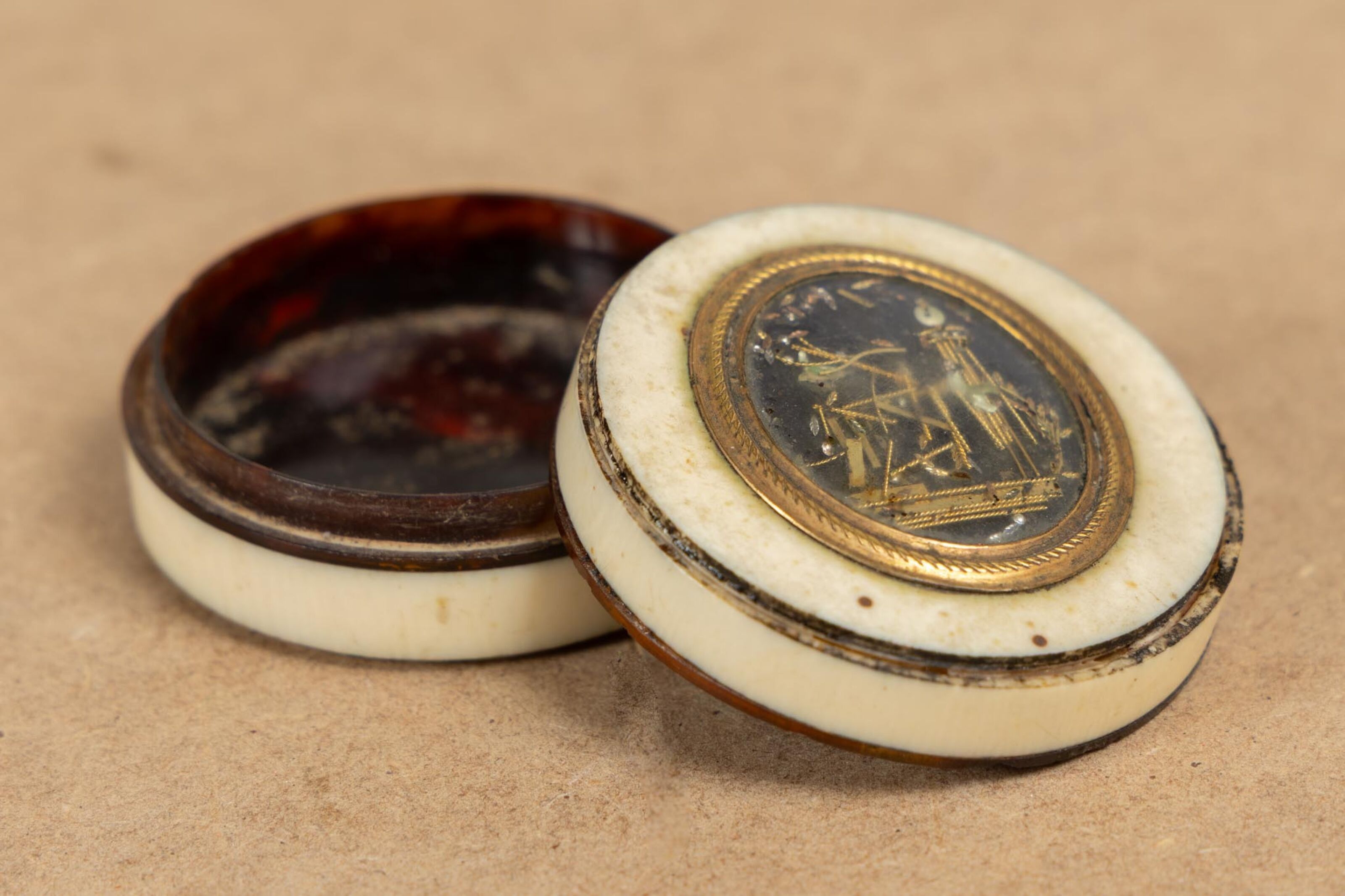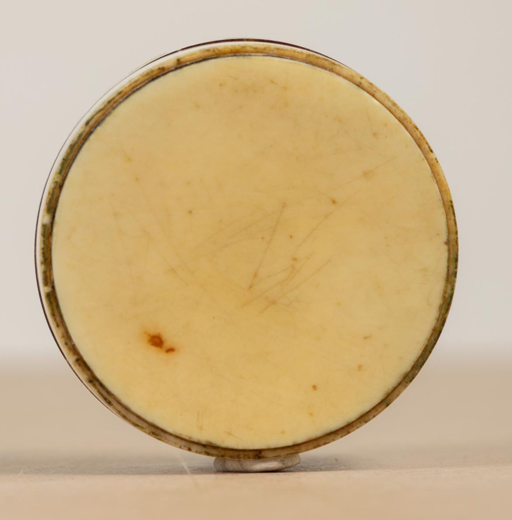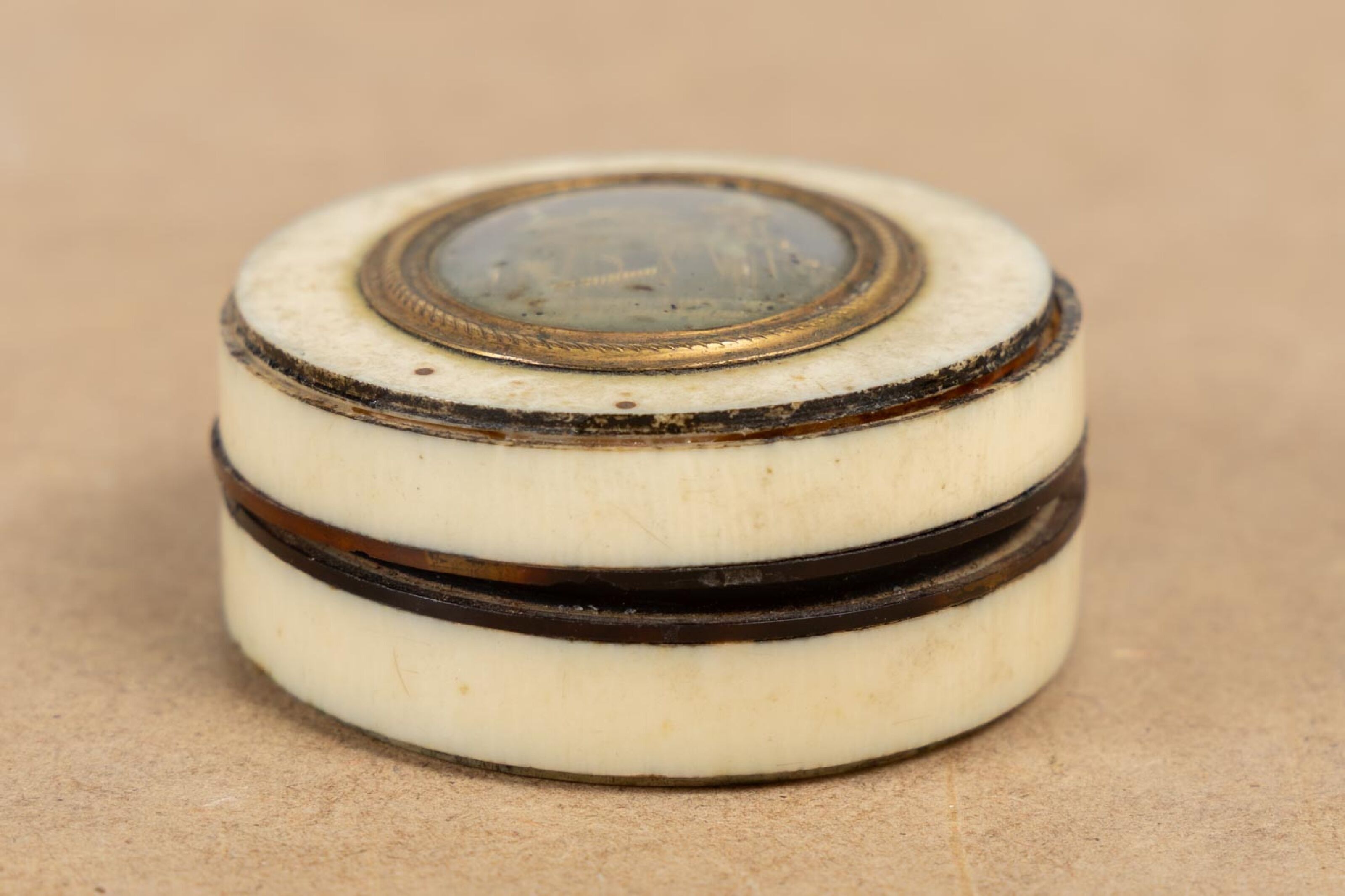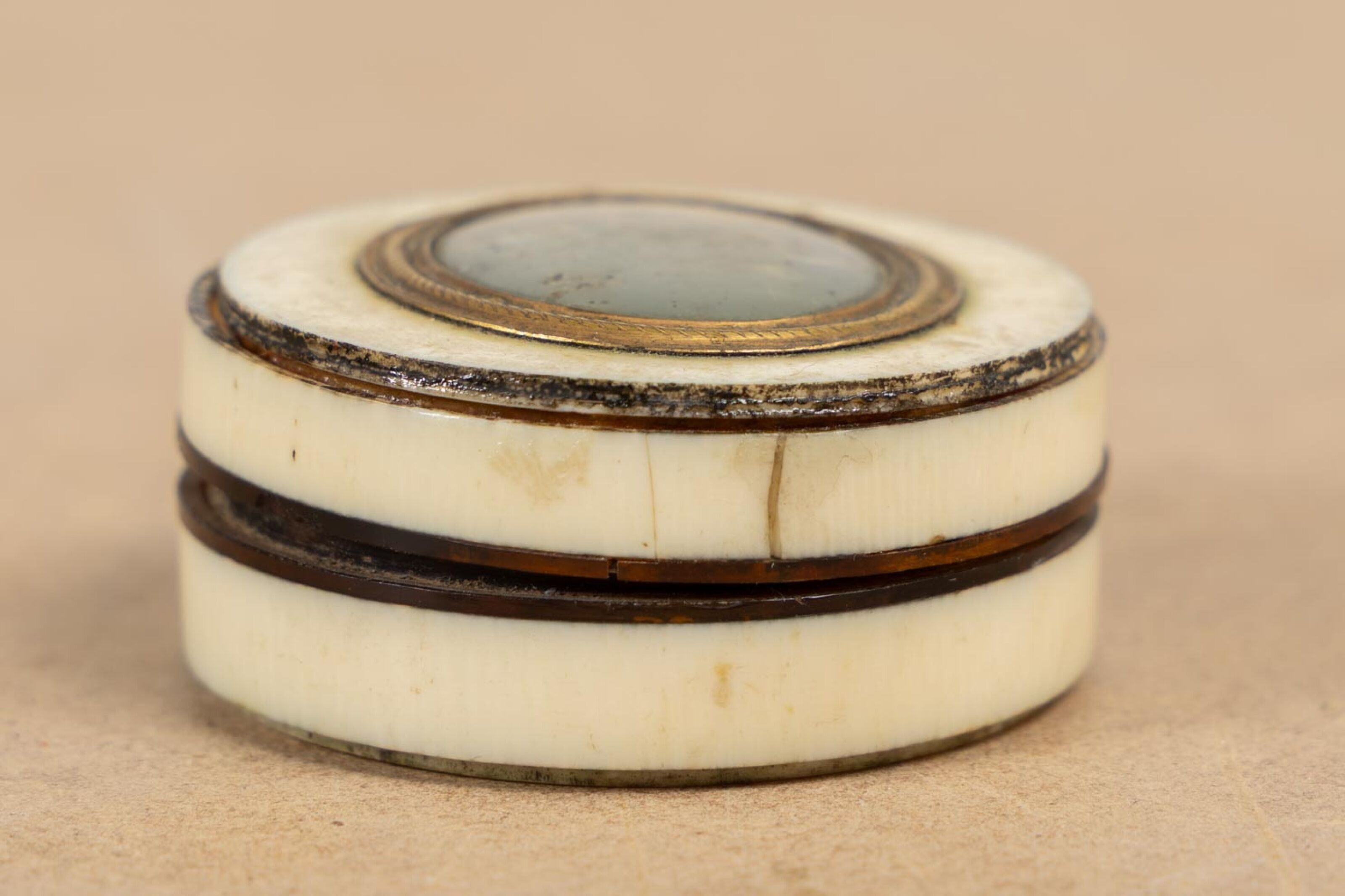 Boite couverte en os, le couvercle orné d'un travail sous verre, l'intérieur en écaille.