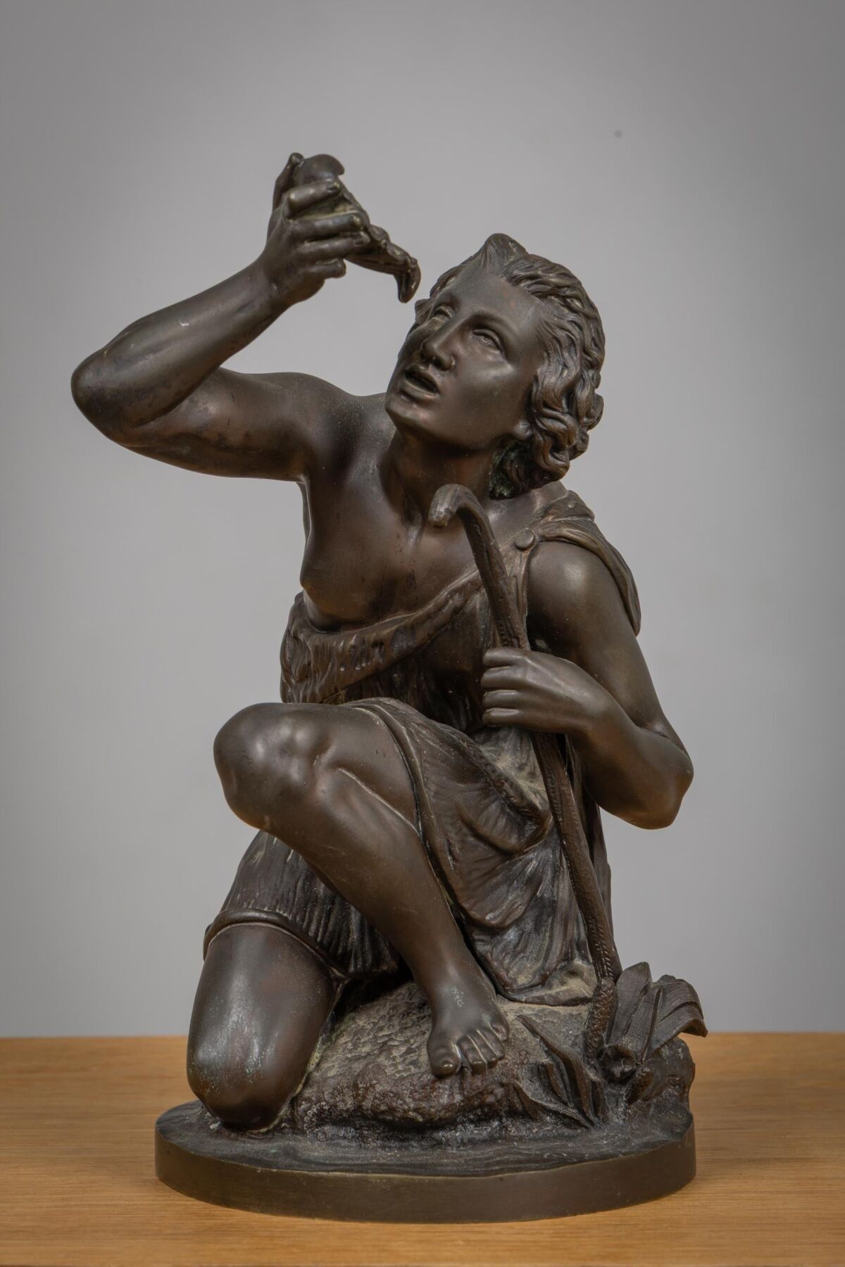 Sculpture en bronze à patine brune, signée sur la base.