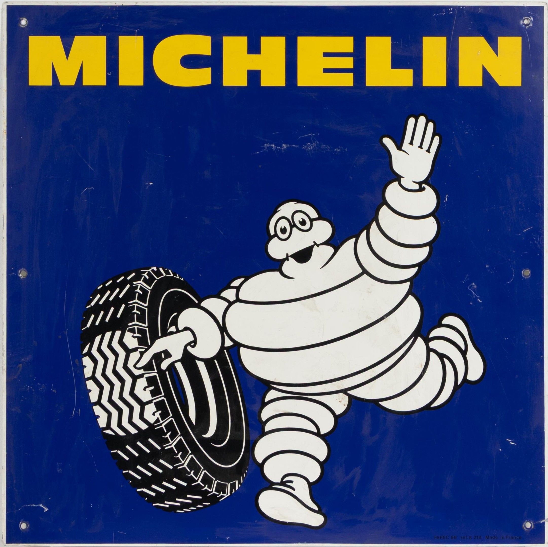 MICHELIN. Plaque publicitaire en tôle de forme carrée, illus…