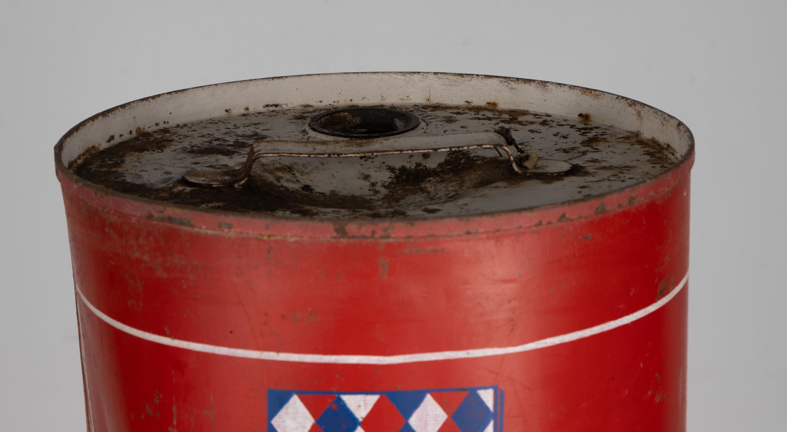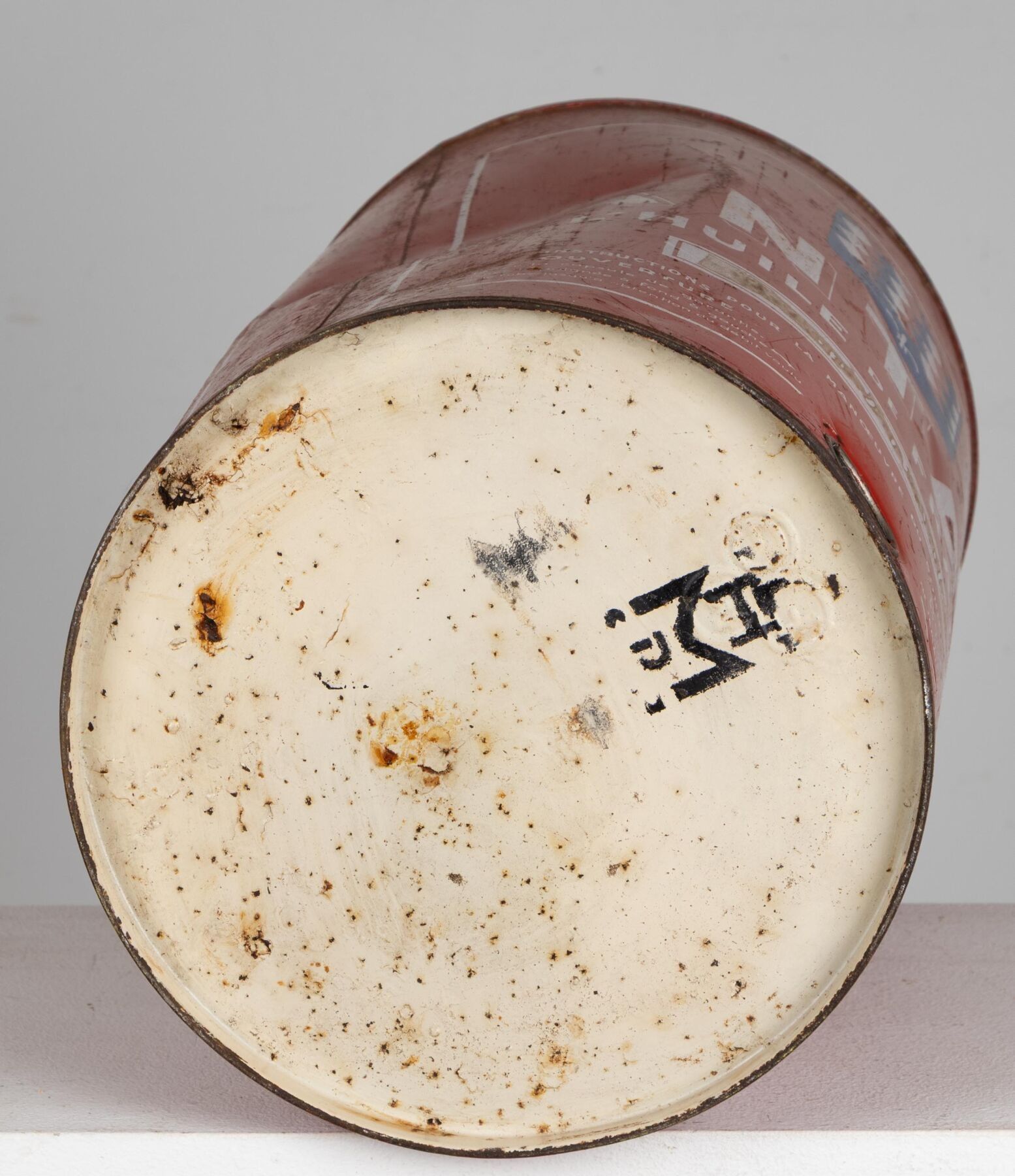 Bidon en tôle lthographiée.