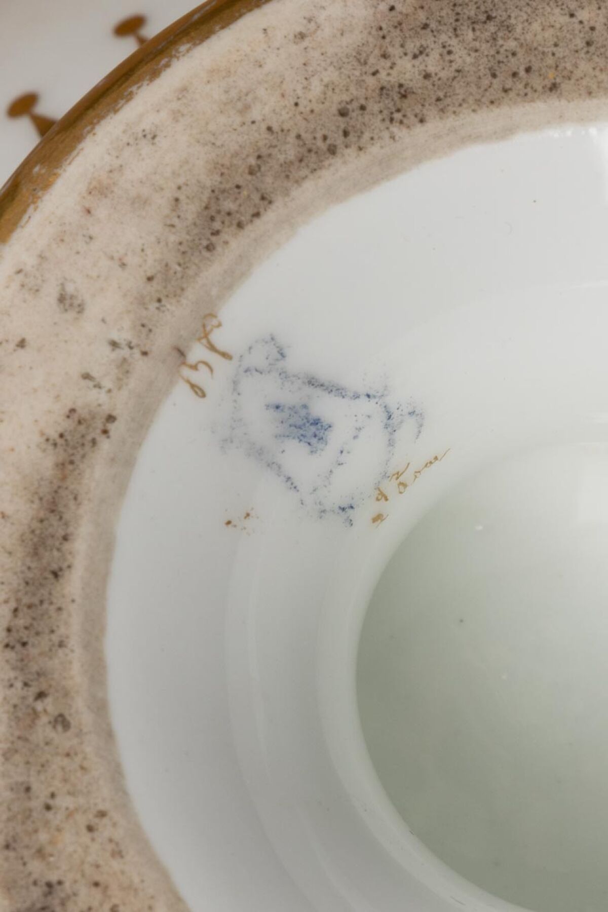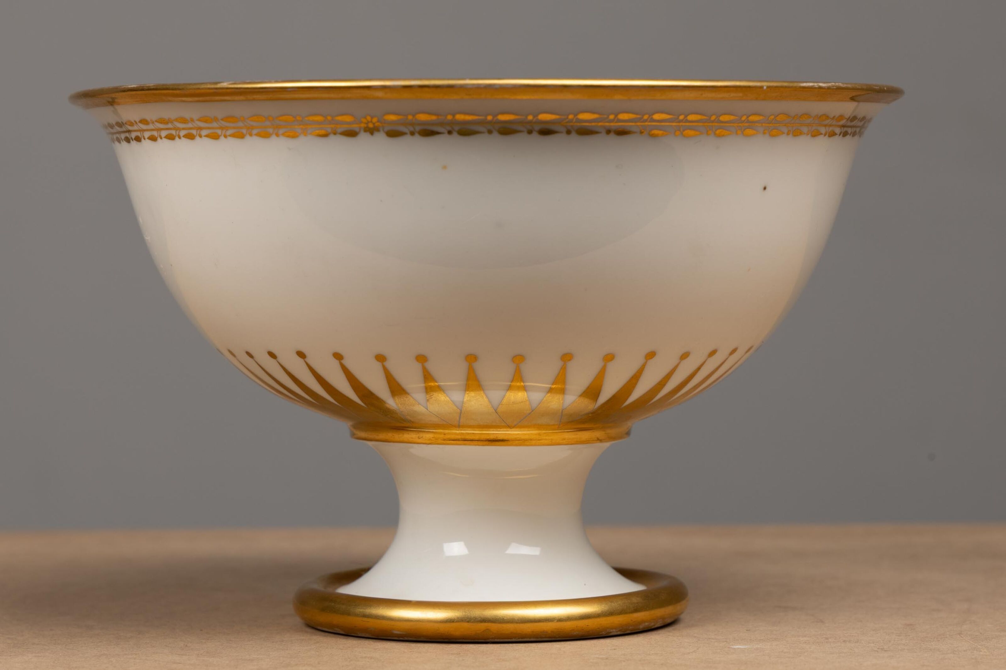 Jatte à fruits hémisphérique en porcelaine à décor or.