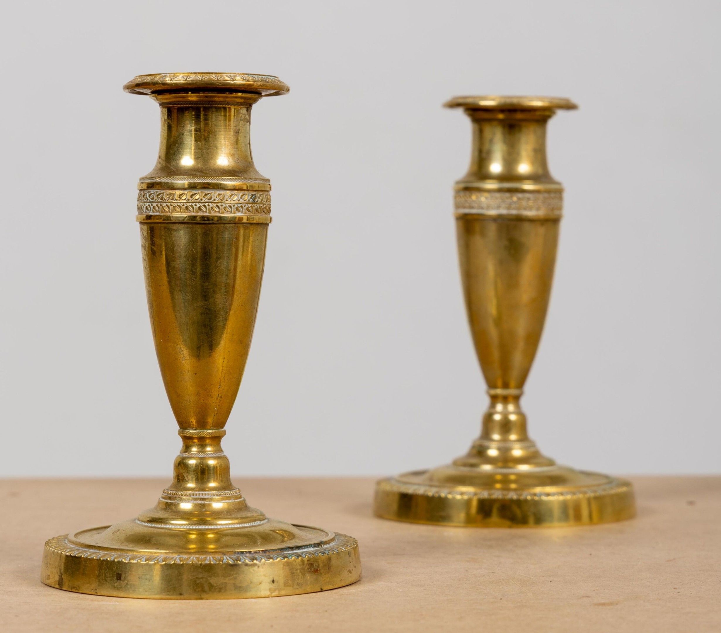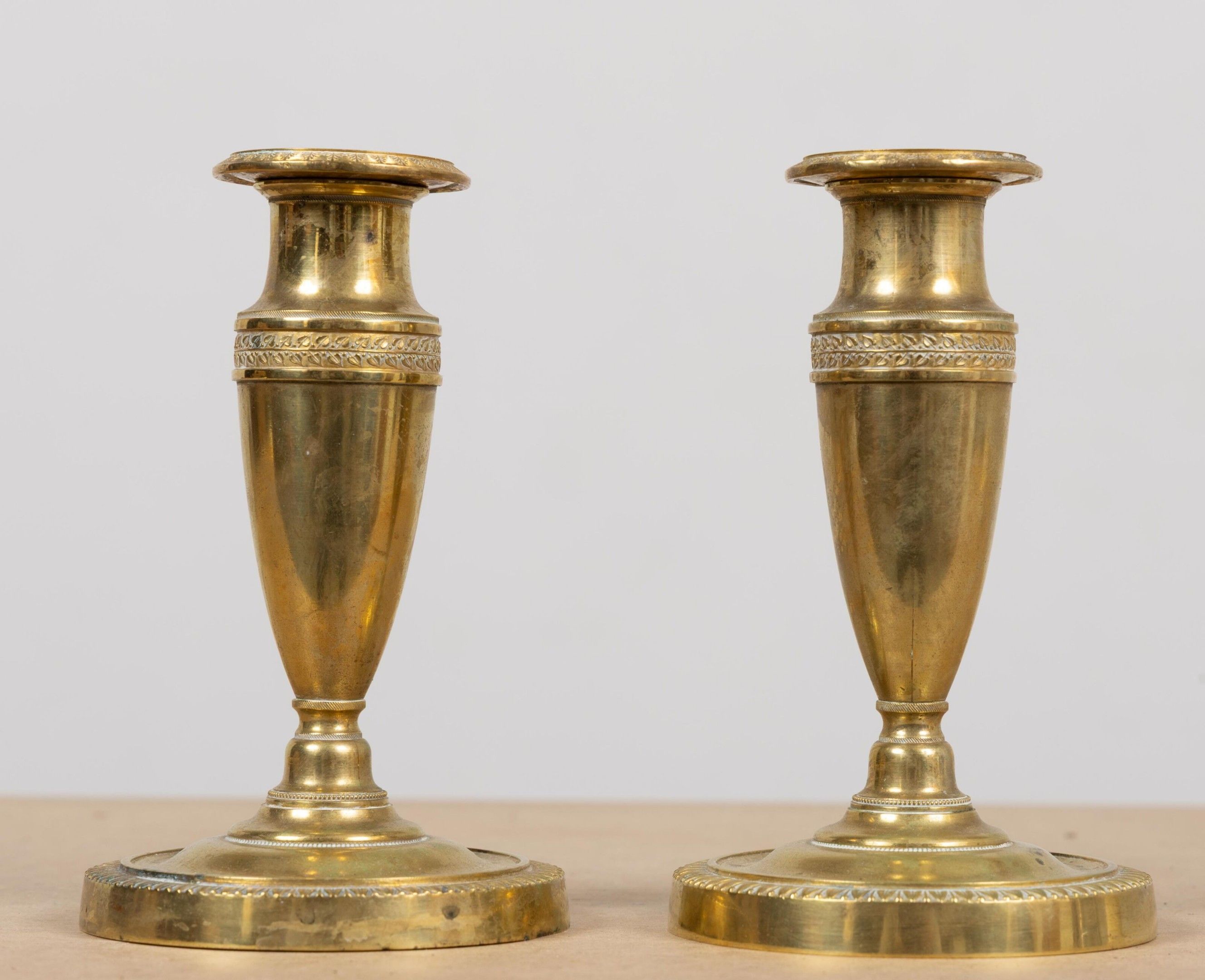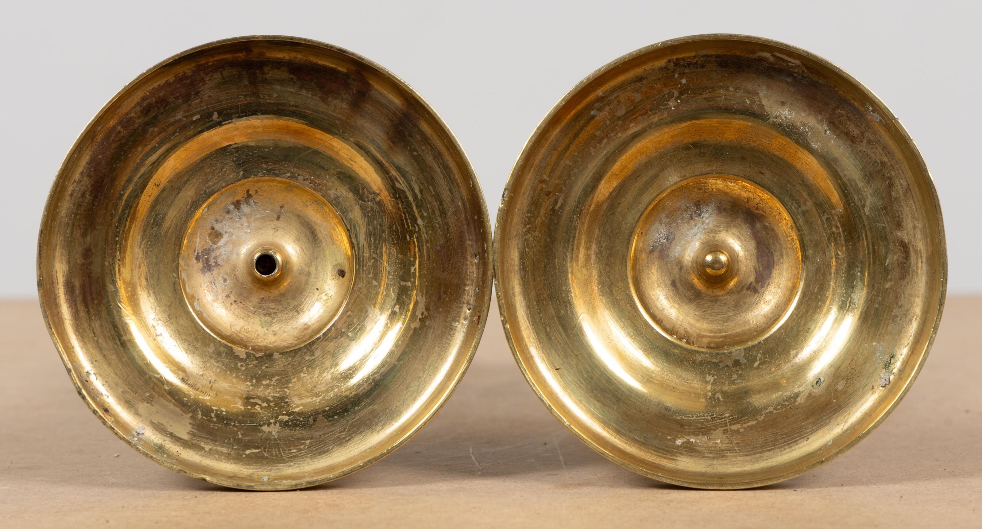 Paire de bougeoirs de toilette en bronze.