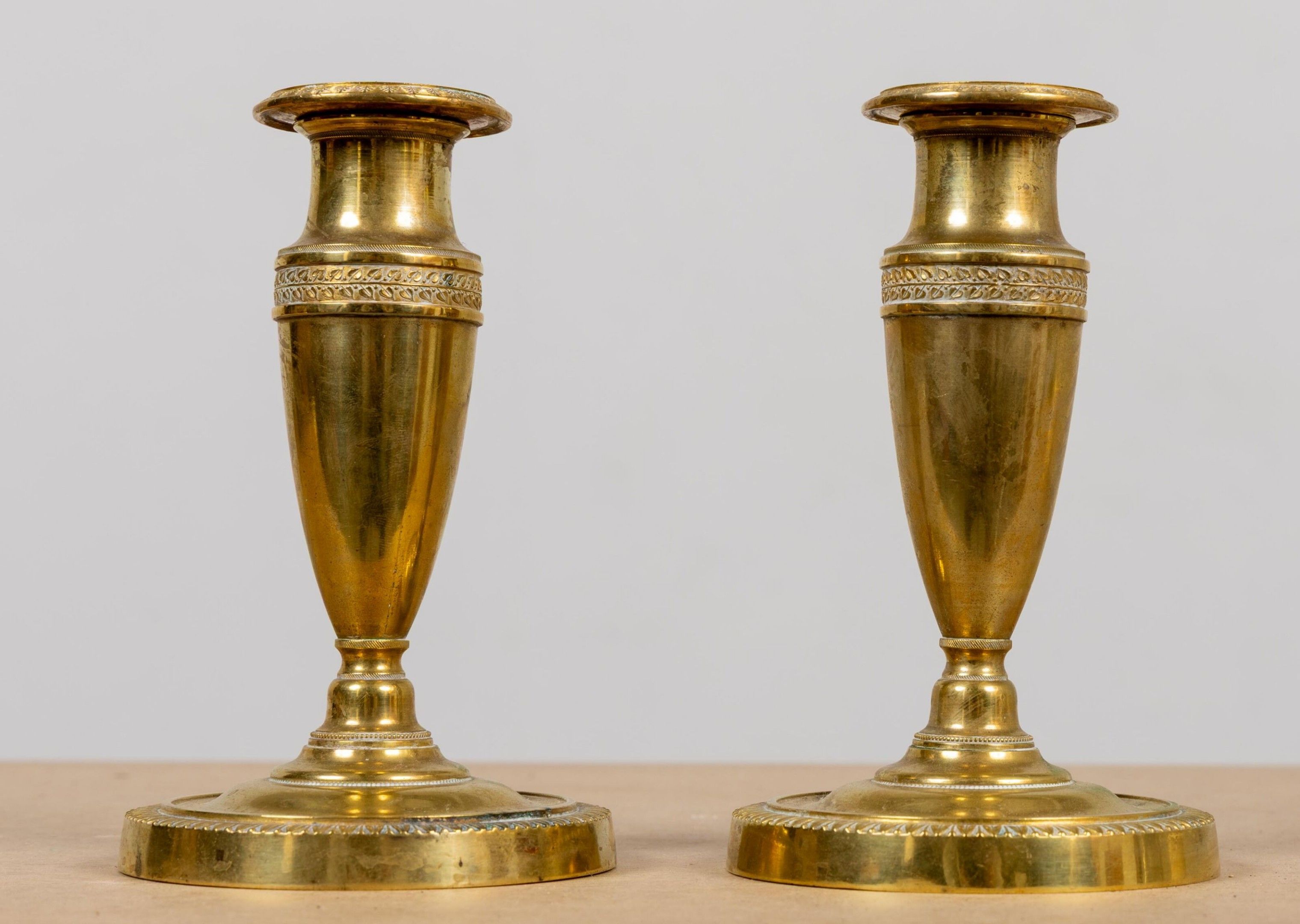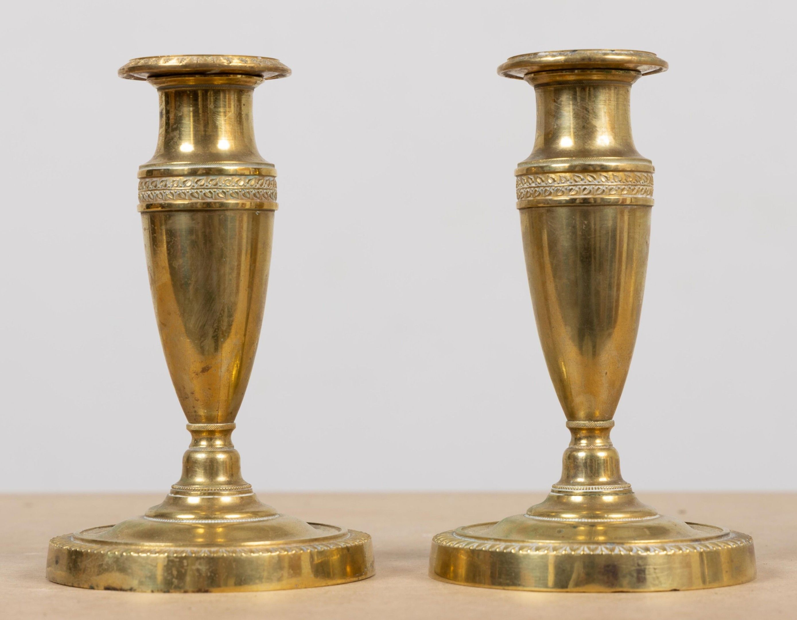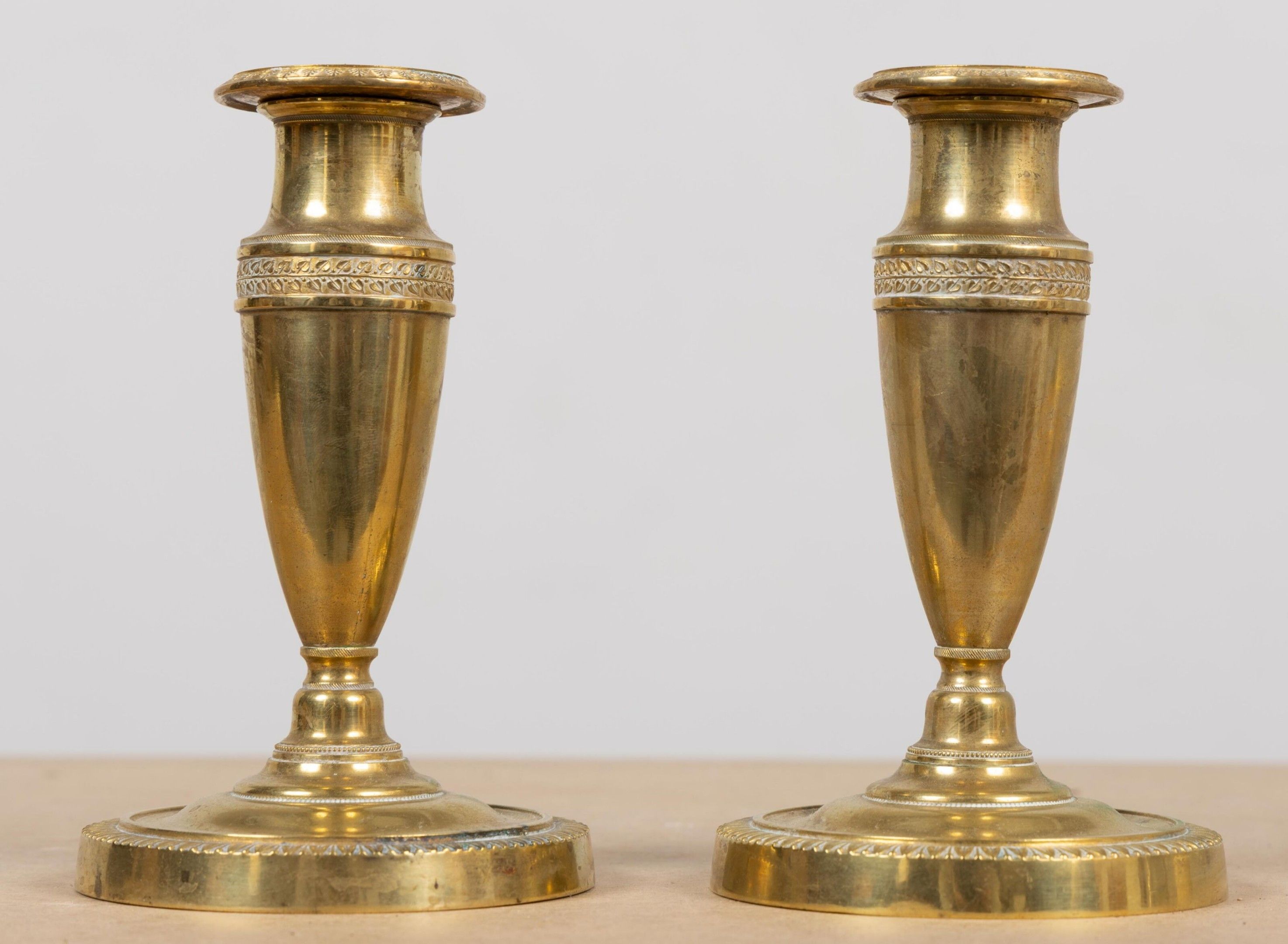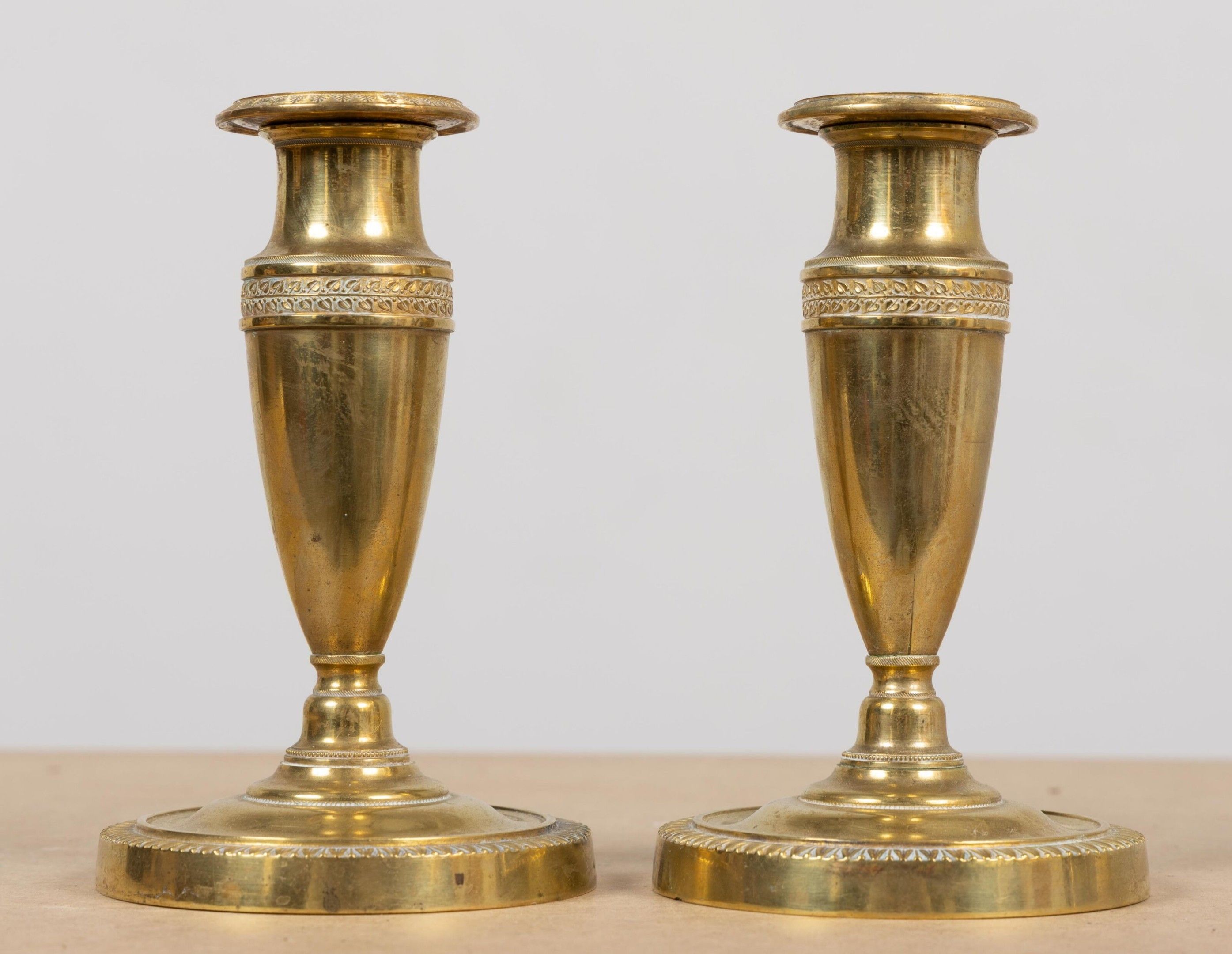 Paire de bougeoirs de toilette en bronze.