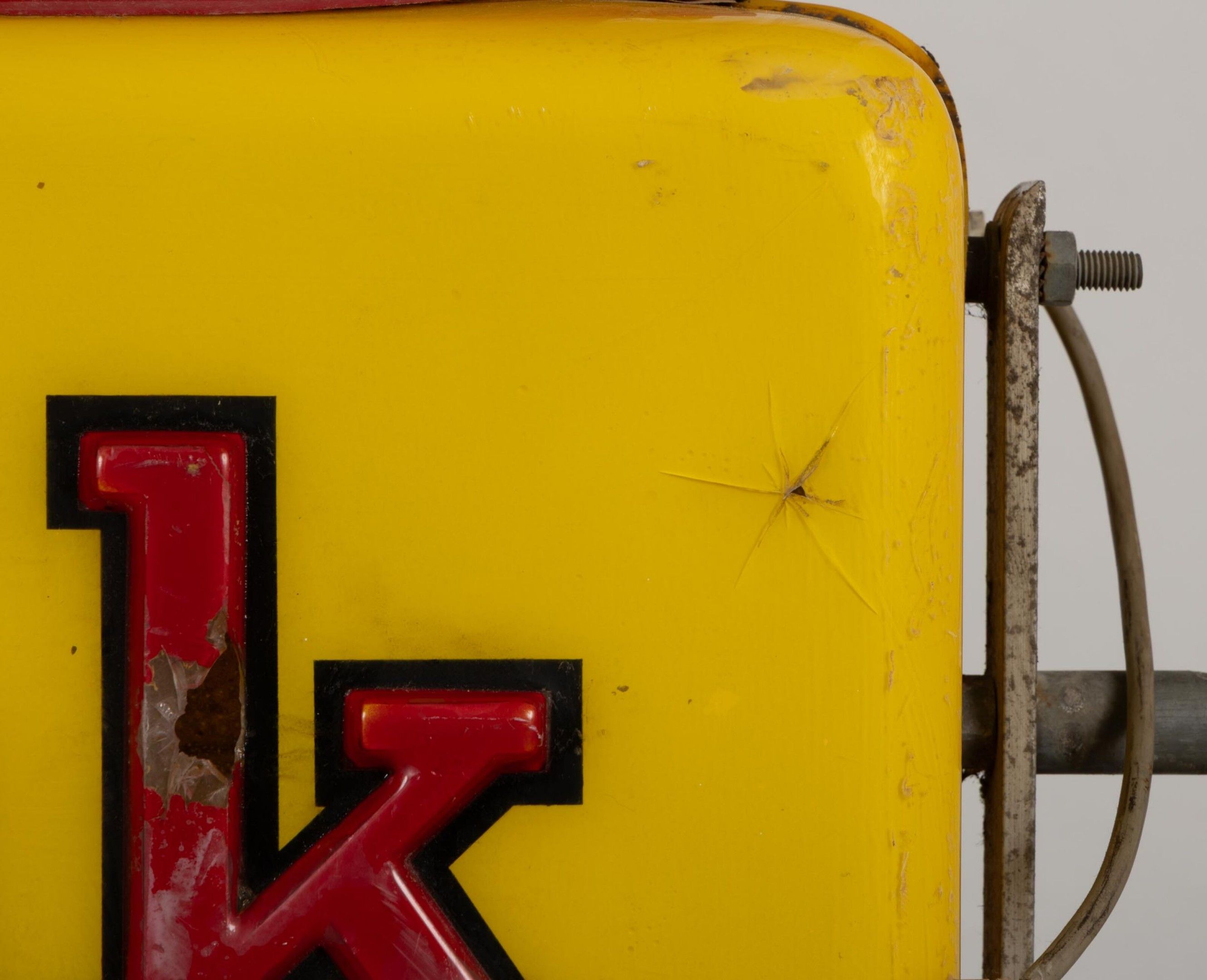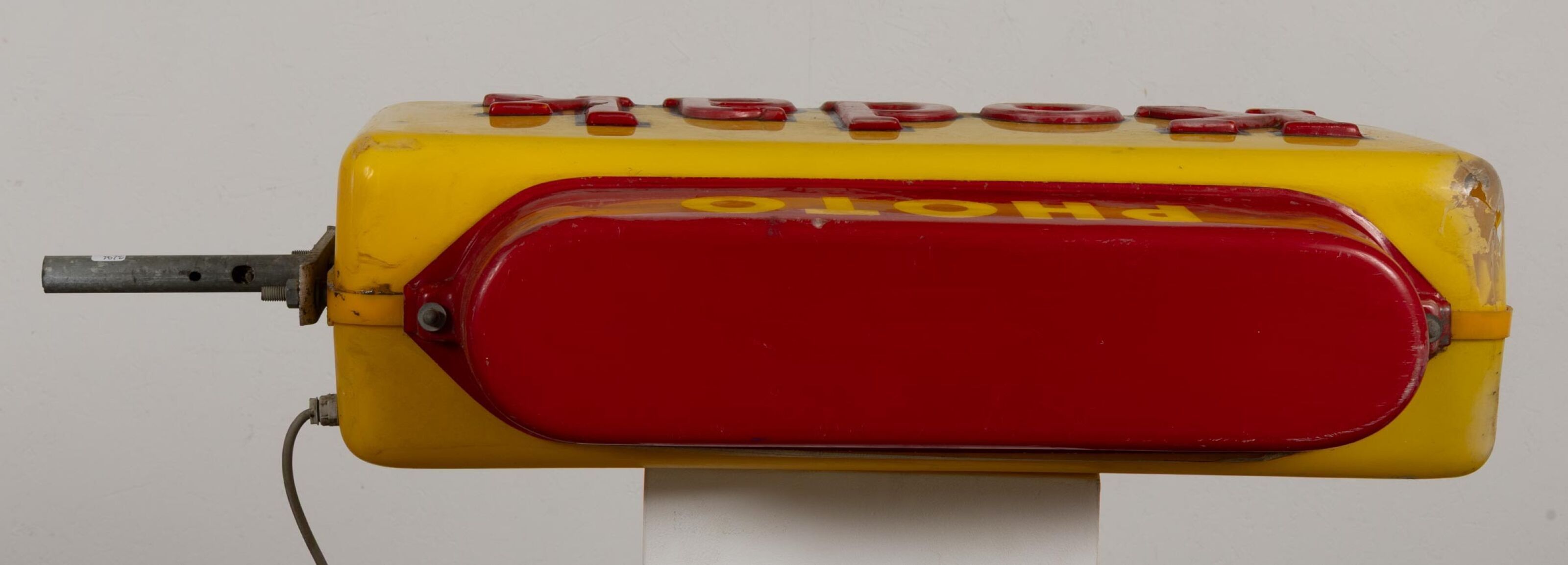 Enseigne lumineuse double face Kodak photo-ciné en plastique jaune, rouge et noir
