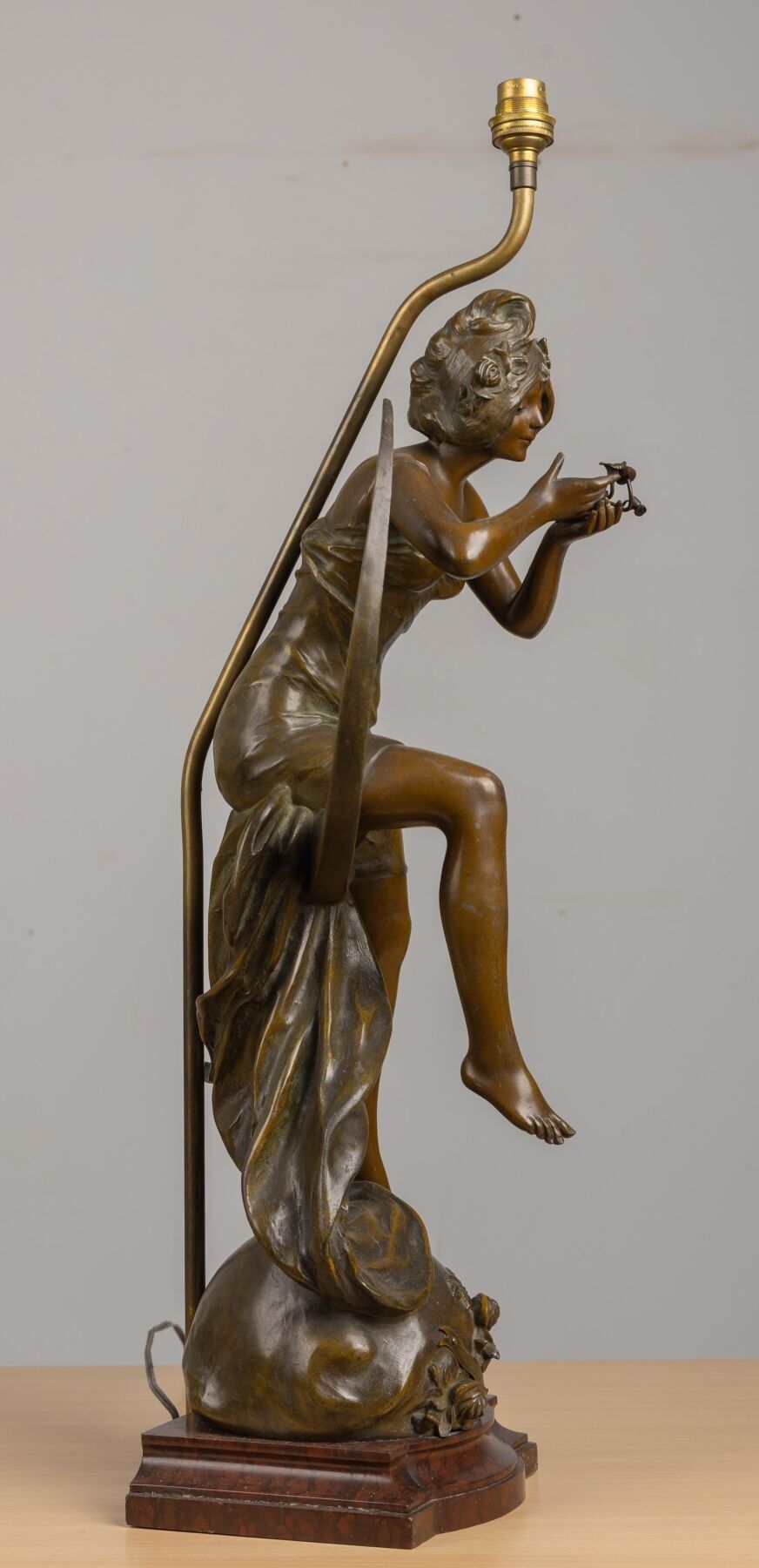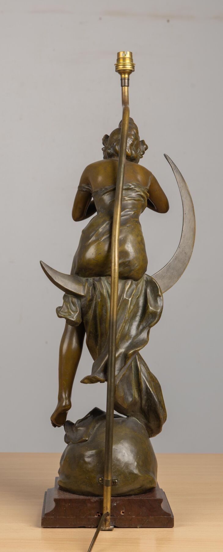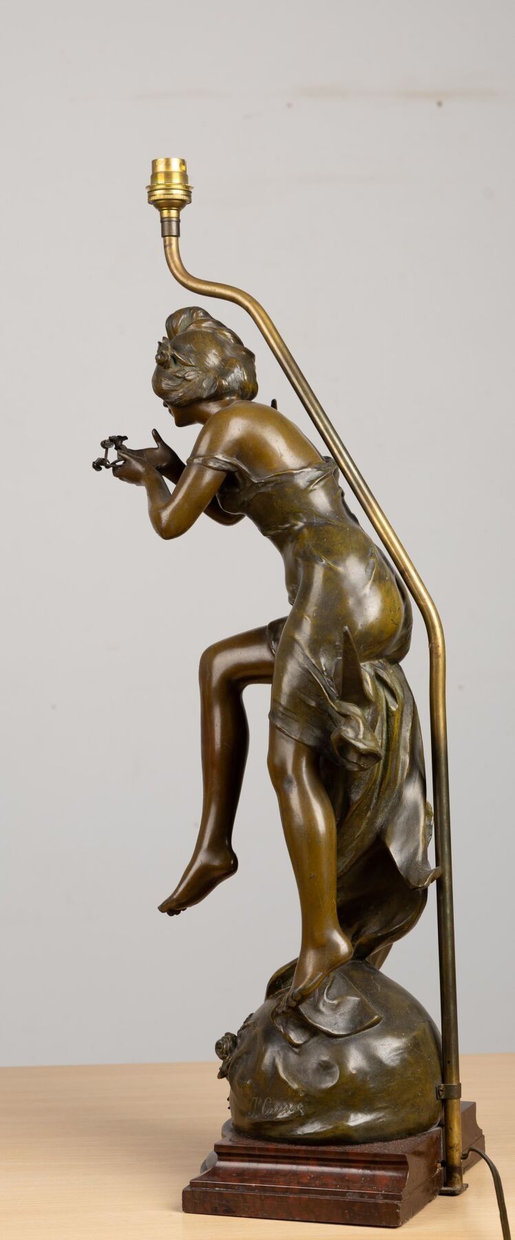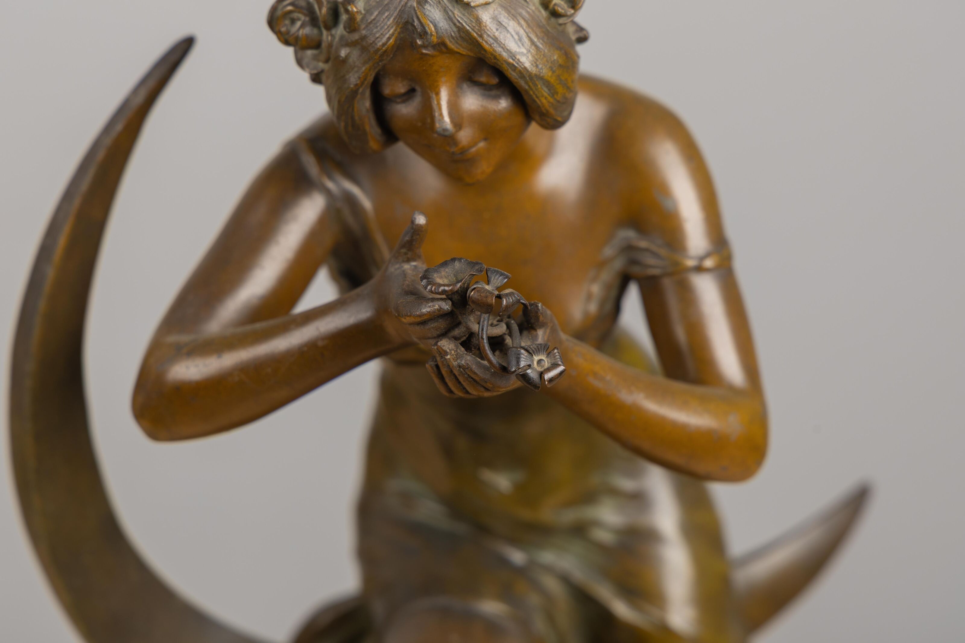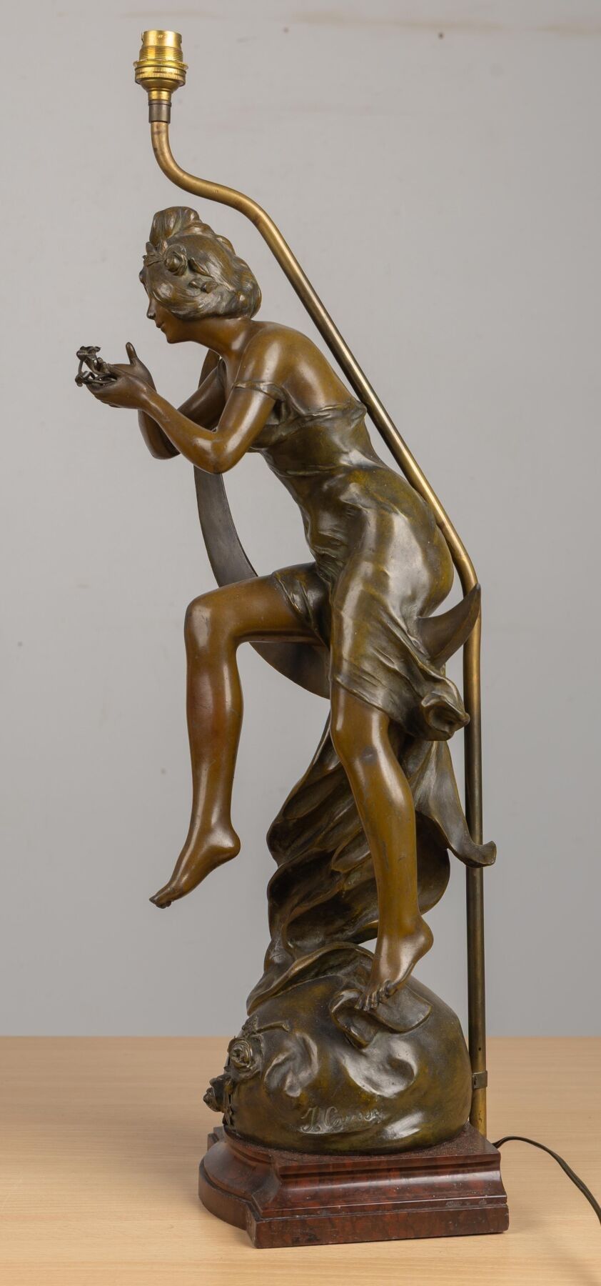 Sculpture en régule patiné bronze, reposant sur une base en marbre rouge.