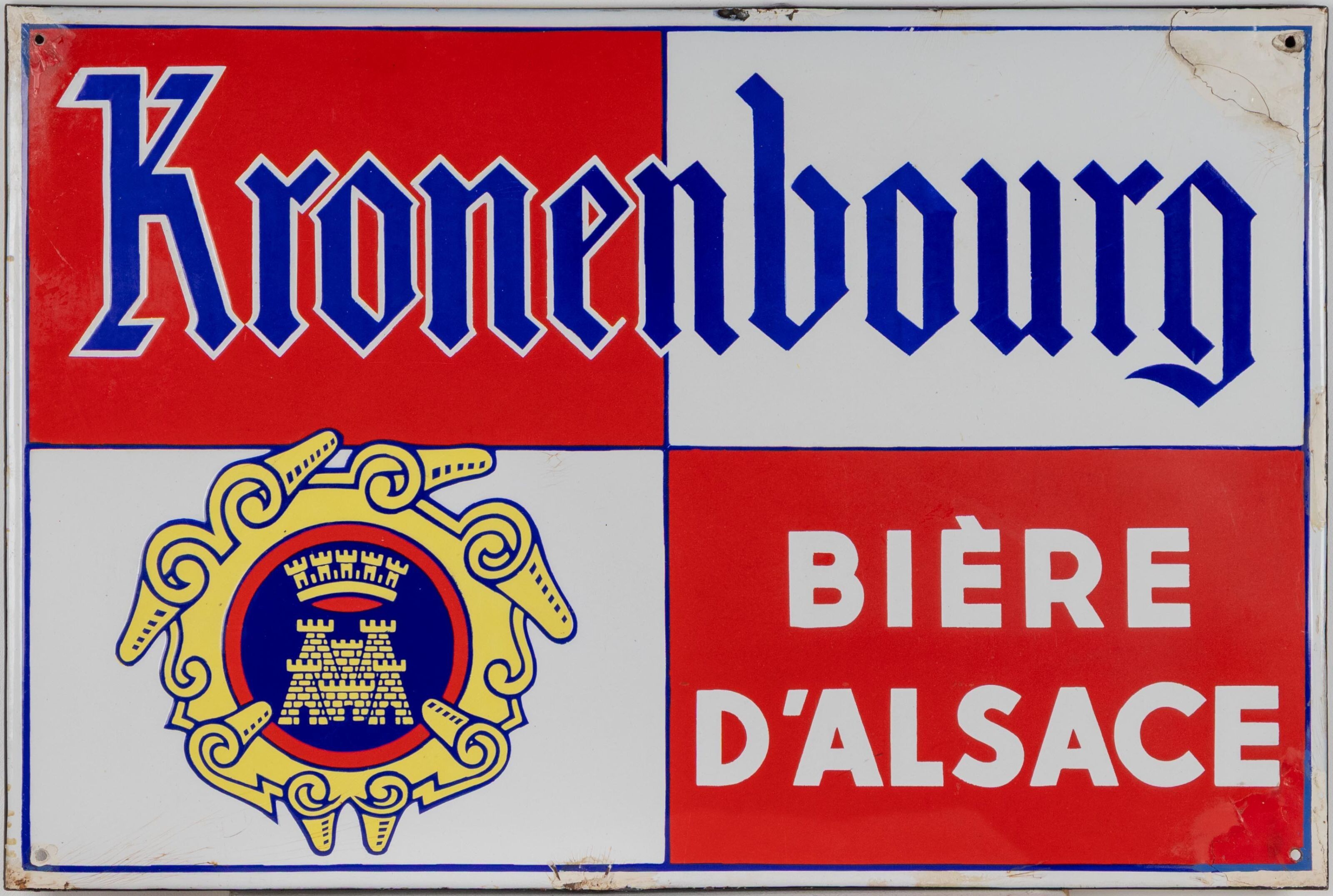 KRONENBOURG. Plaque en tôle émaillée à bord emboutie " Bière…