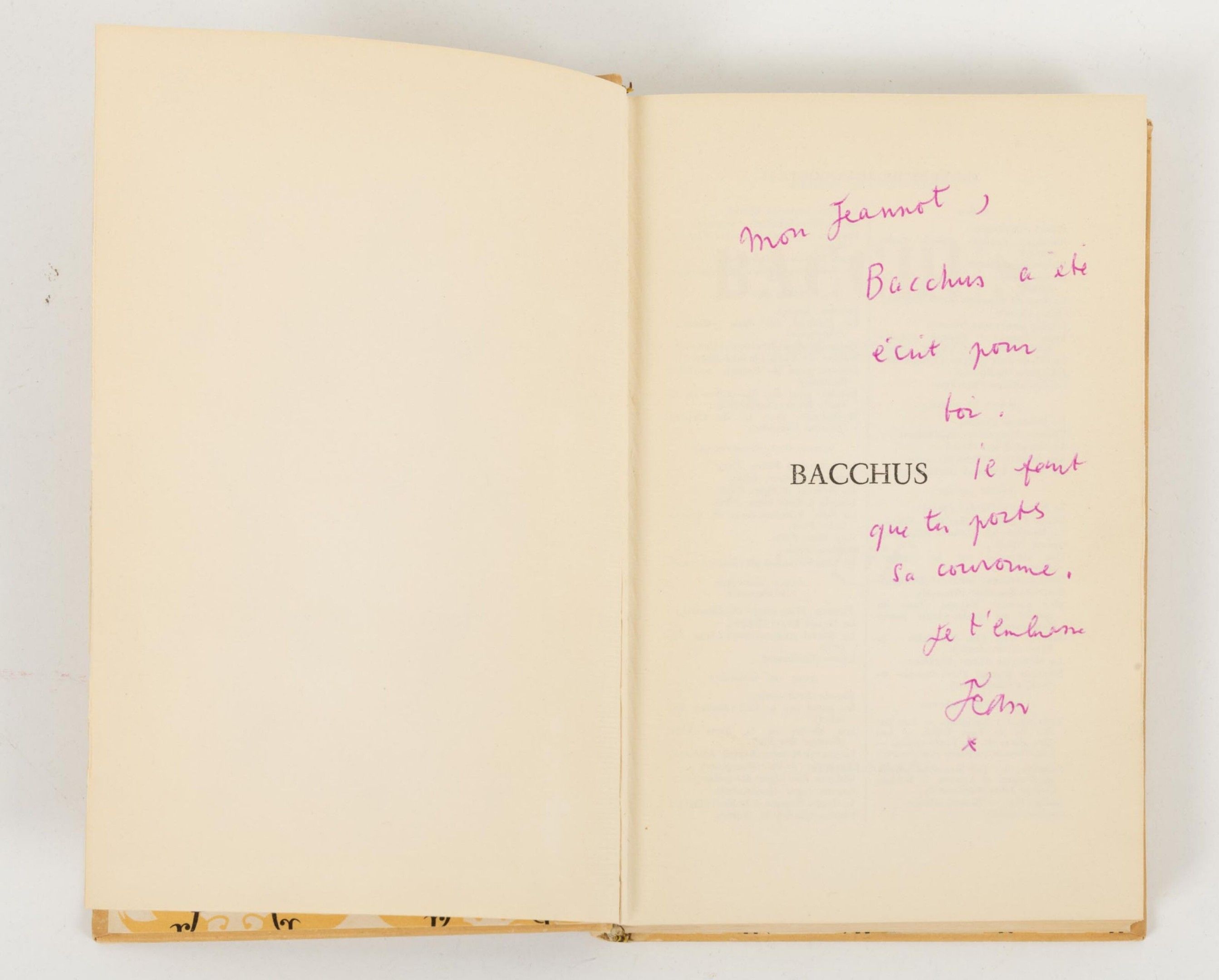 COCTEAU Jean (avec envoi). Bacchus.