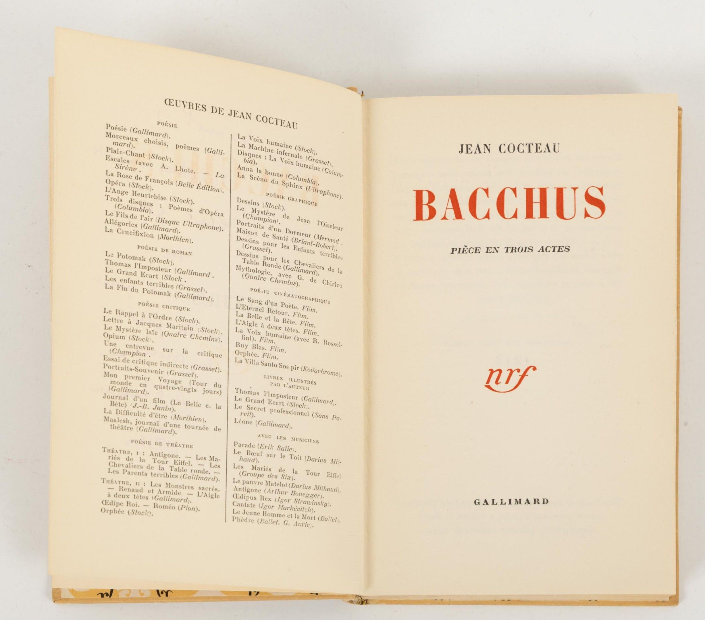 Avec envoi autographe signé de Jean Cocteau à Jean Marais : "mon Jeannot, Bacchus a été écrit pour toi, il faut que tu portes sa couronne je t'embrasse".