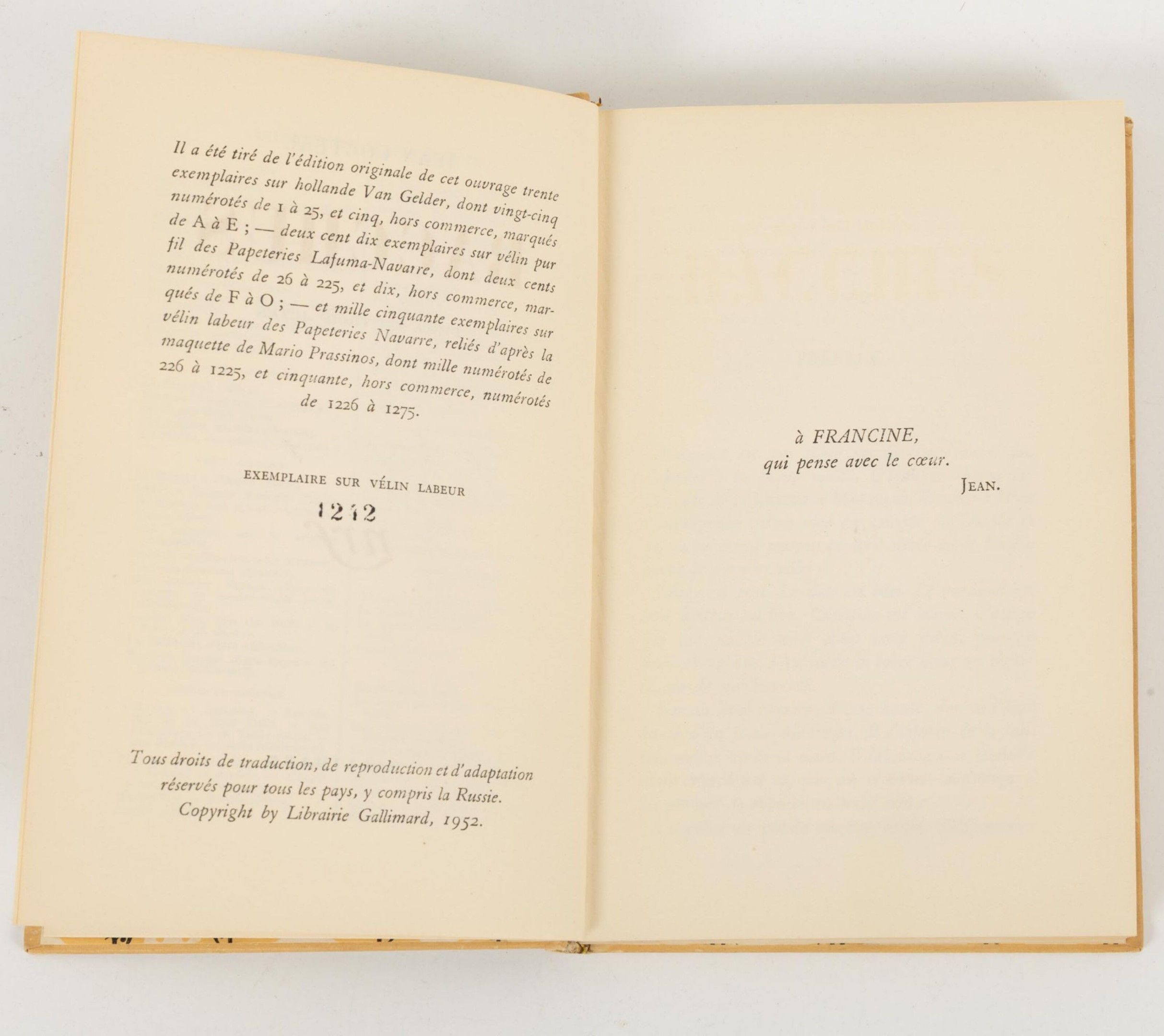 Gallimard (NRF), 1952.