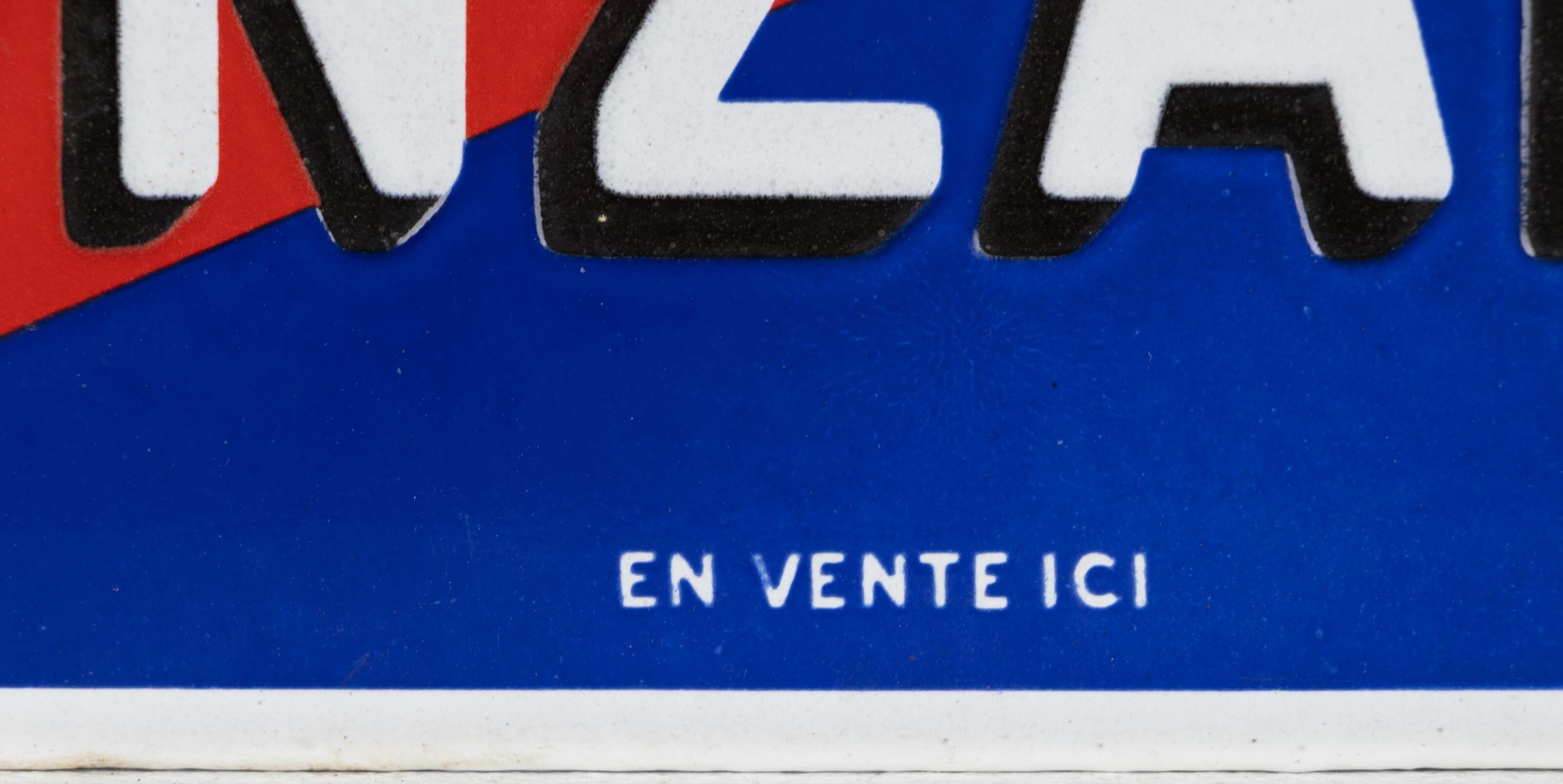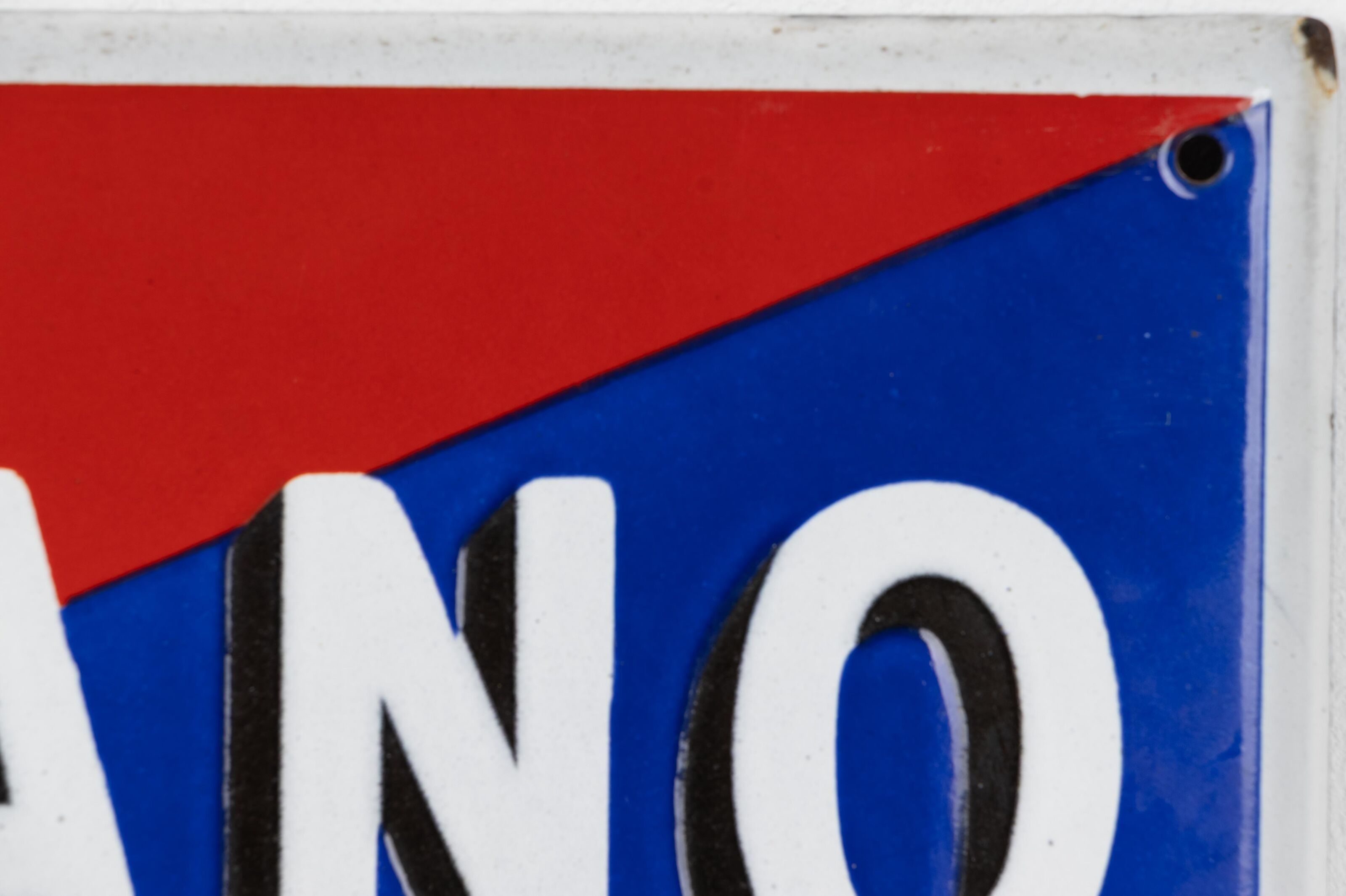 Plaque publicitaire en tôle émaillée de forme rectangulaire.