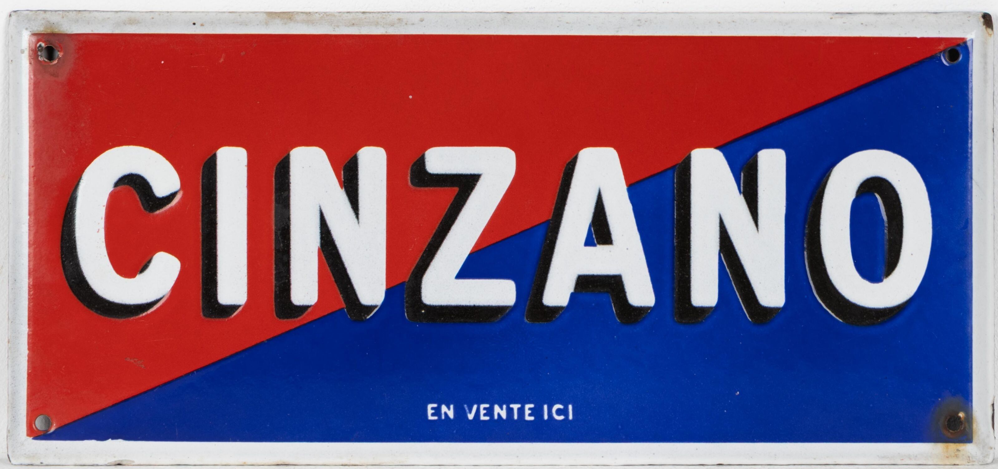 CINZANO. Plaque publicitaire en tôle émaillée de forme recta…