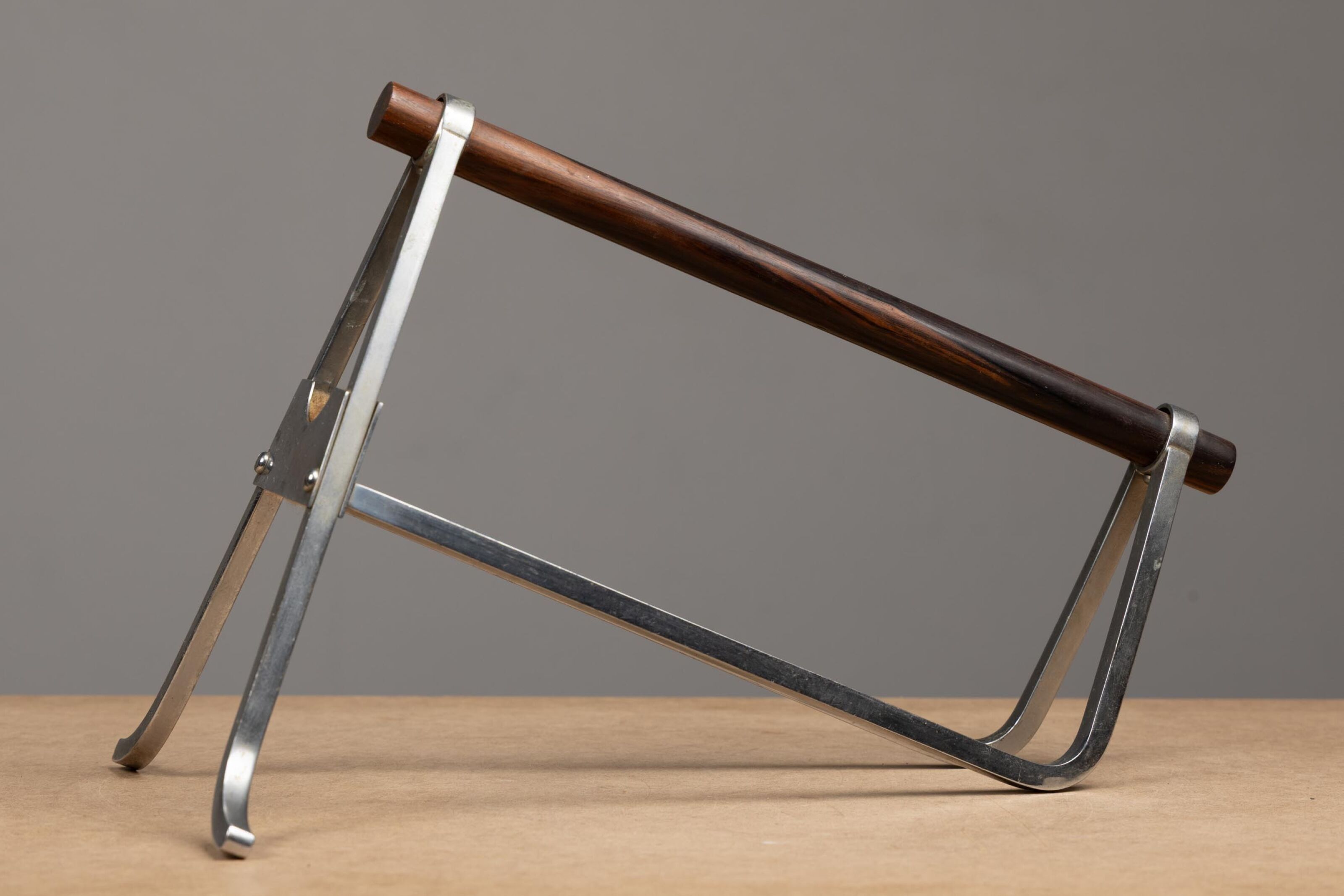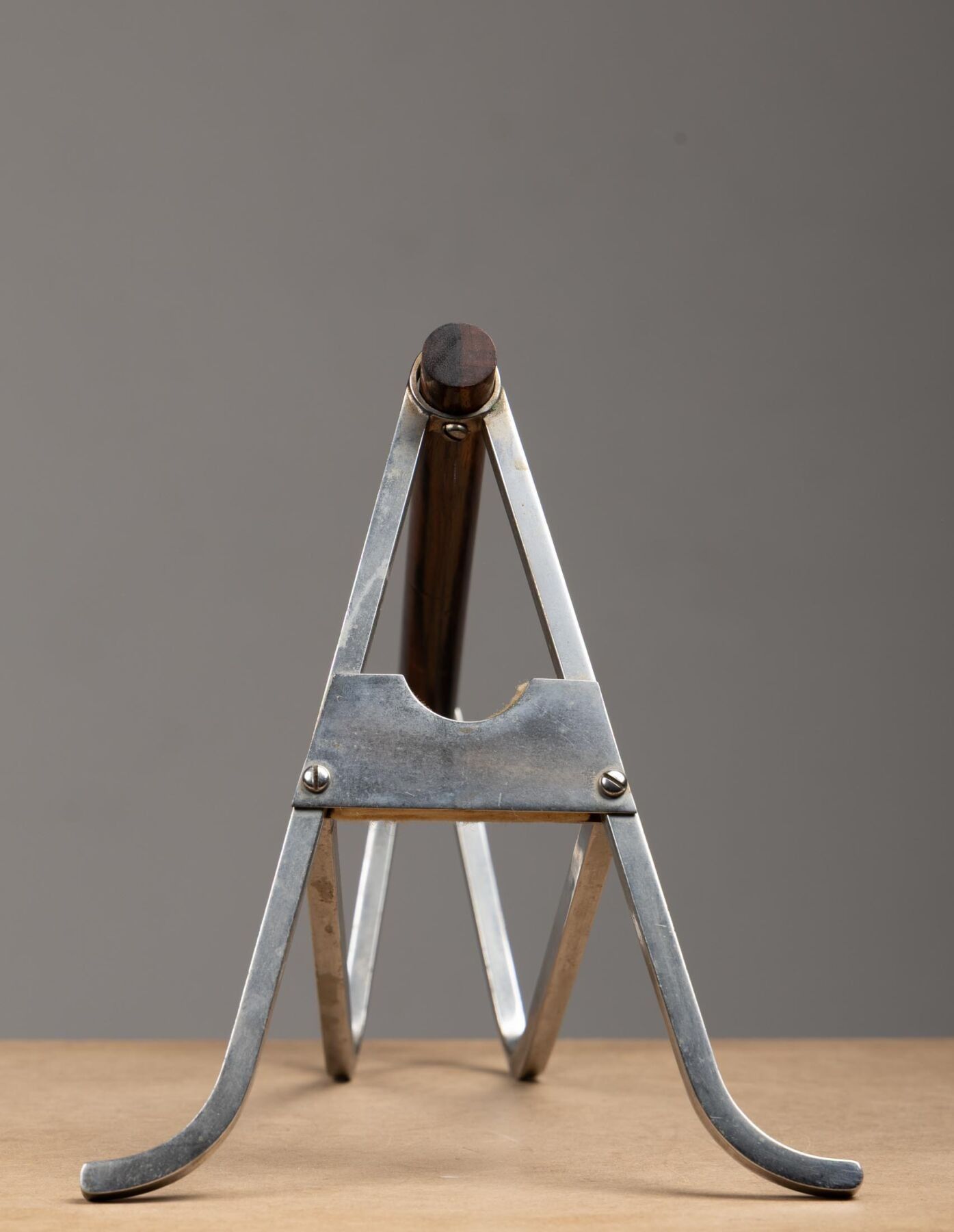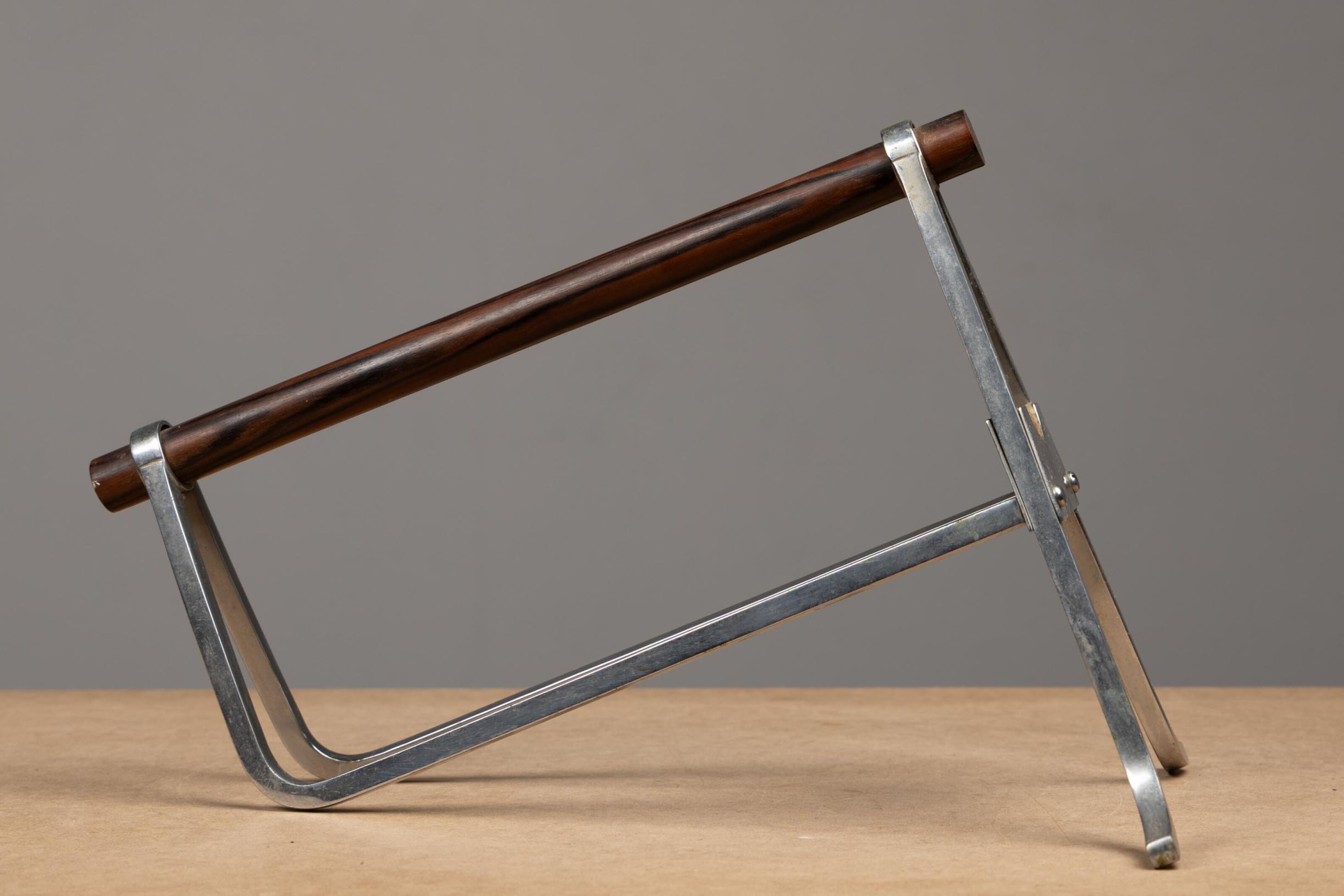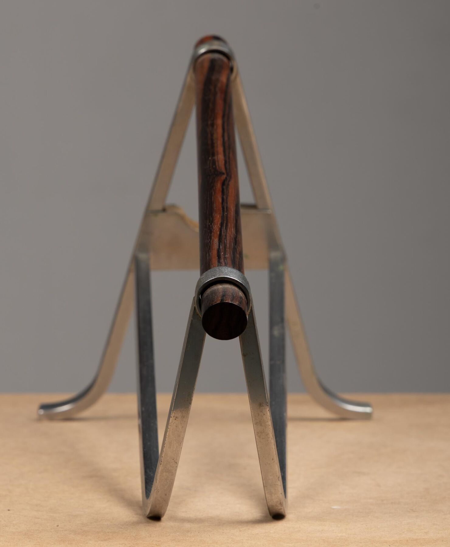 Porte-bouteille moderniste en métal chromé , la prise cylindrique en palissandre.