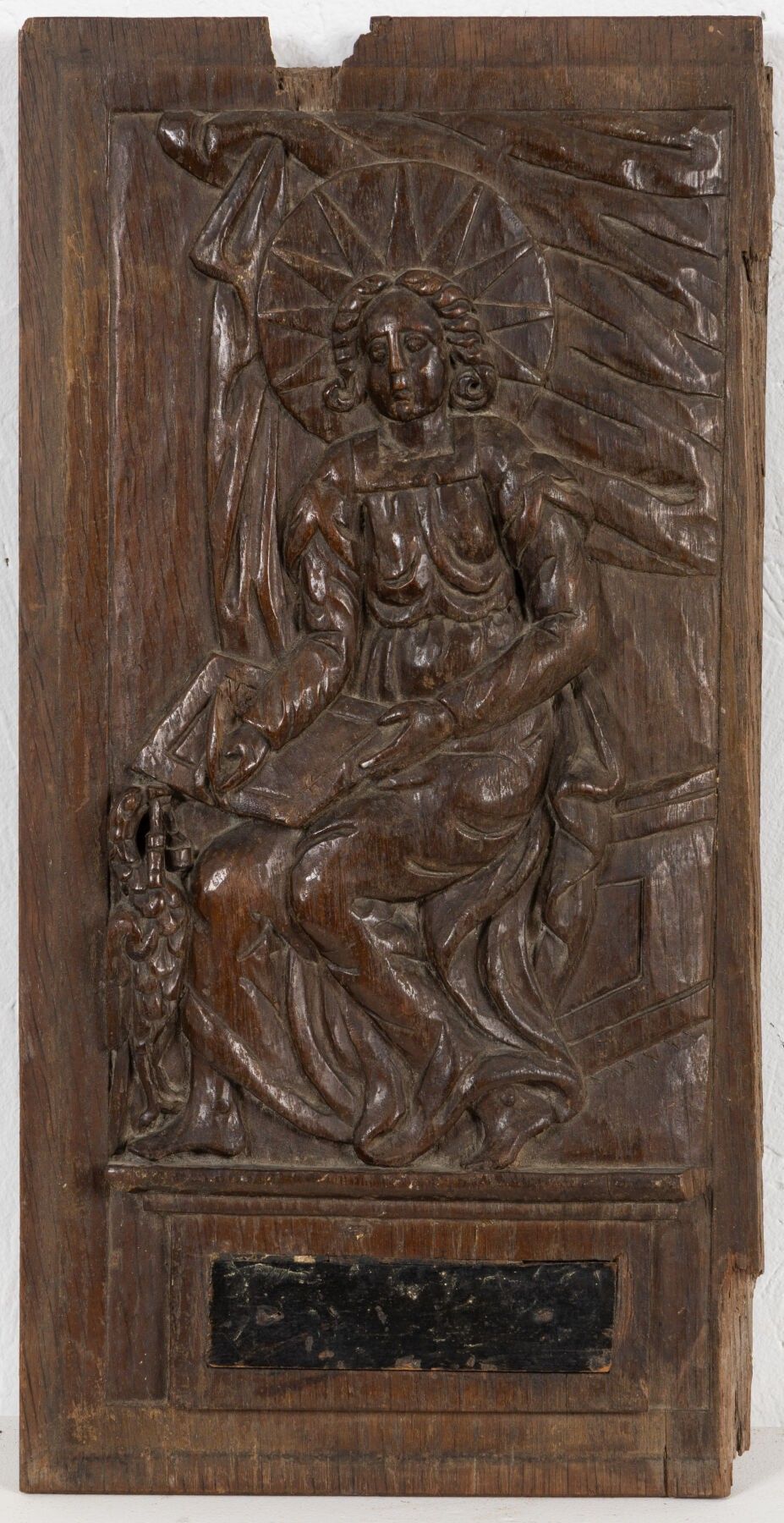 Panneau en bois sculpté figurant l'apôtre avec l'aigle.