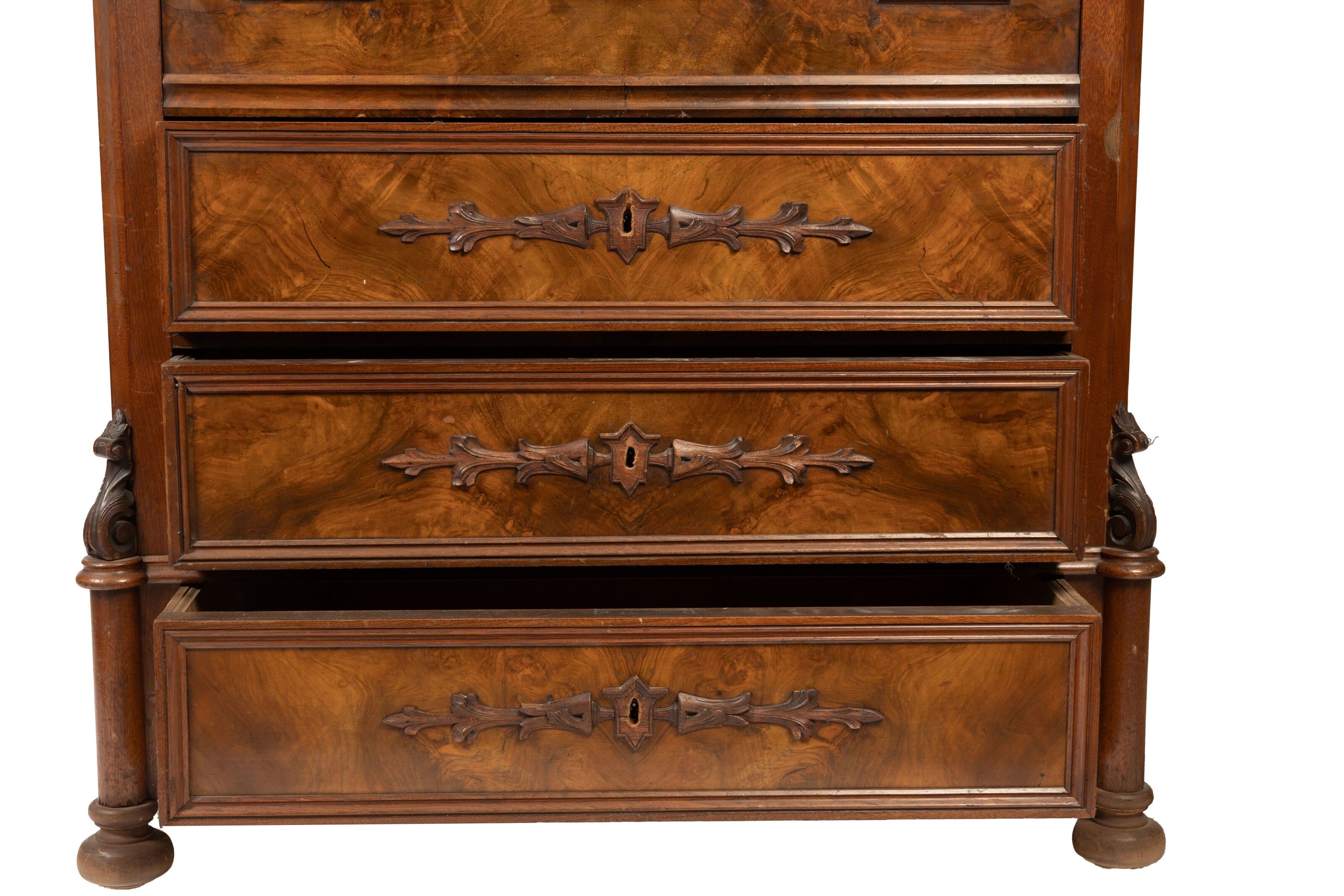 Secrétaire en bois de placage ouvrant à un abattant, trois t…