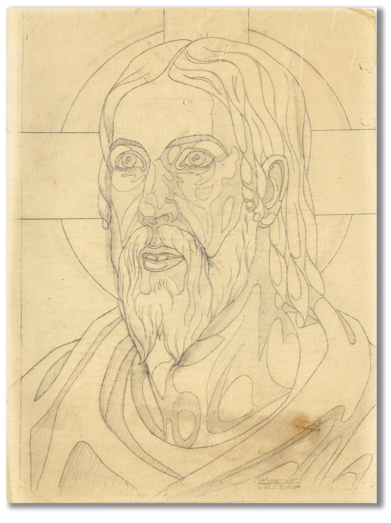Cagnaccio di San Pietro (Desenzano Del Garda 1897 - Venise 1946) "Étude pour le Christ" début des années 1930 crayon sur papier calque 40x30 cm Signé en bas à droite Provenance Famille de l'artiste Collection privée, Milan Cette œuvre est accompagnée d'un certificat d'authenticité photographique délivré par Giuliana Chiozzi, petite-fille de Cagnaccio di San Pietro.