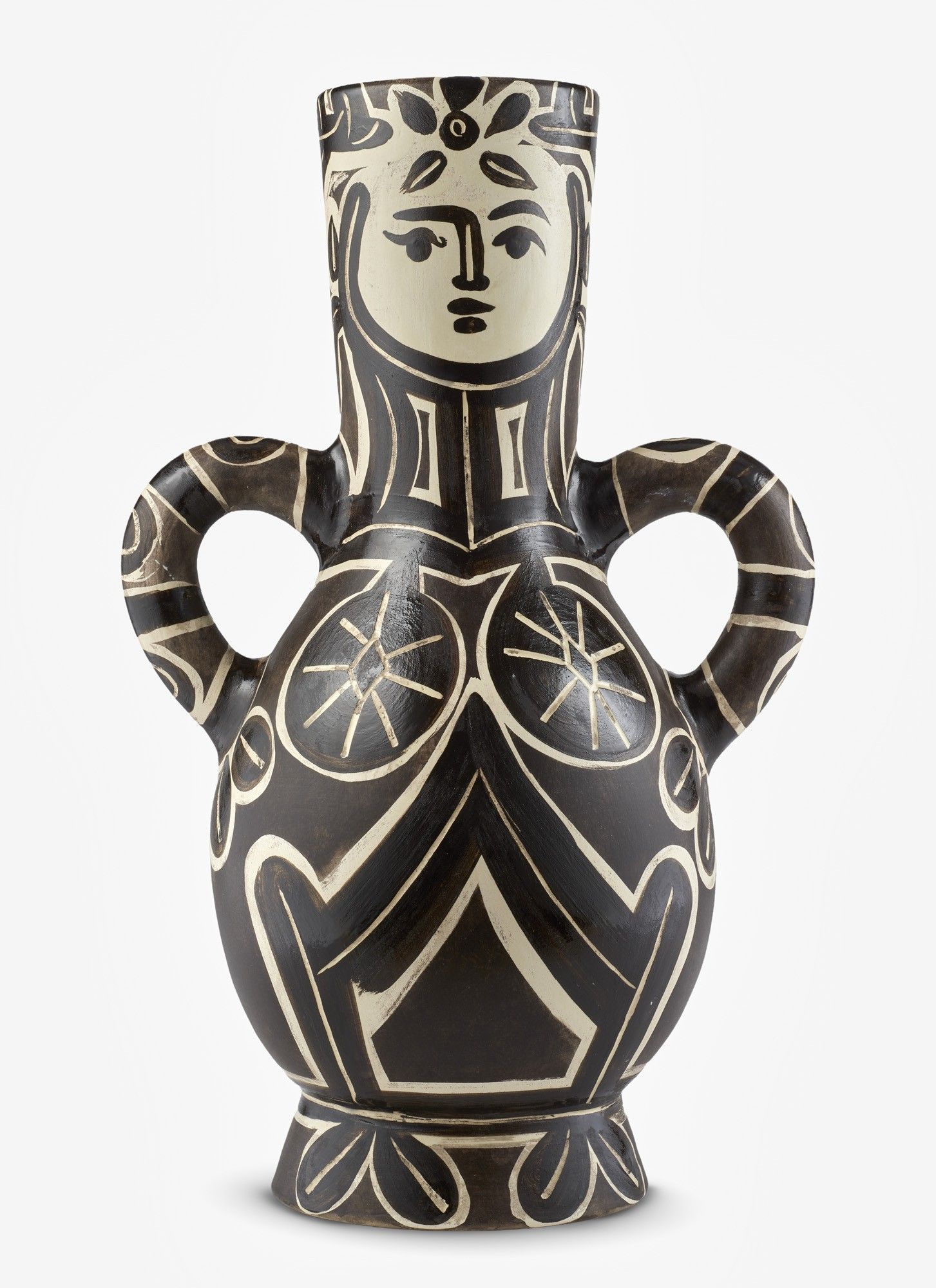 PABLO PICASSO (MALAGA 1881 - MOUGINS 1973) "Vase deux anses hautes" 1953 céramique partiellement émaillée h cm 39,9 Edition Picasso Madoura Plein Feu Provenance Collection privée, France Littérature G. Ramié "Ceramica de Picasso" Ediciones Polágrafa, Barcelona, 1974, p. 279, n. 715 ill. (autre pièce) A. Ramié "Picasso : catalogue de l'oeuvre céramique éditée:1947-1971" Galerie Madoura, Vallauris, 1988, p.115, n. 213 ill. (autre pièce)