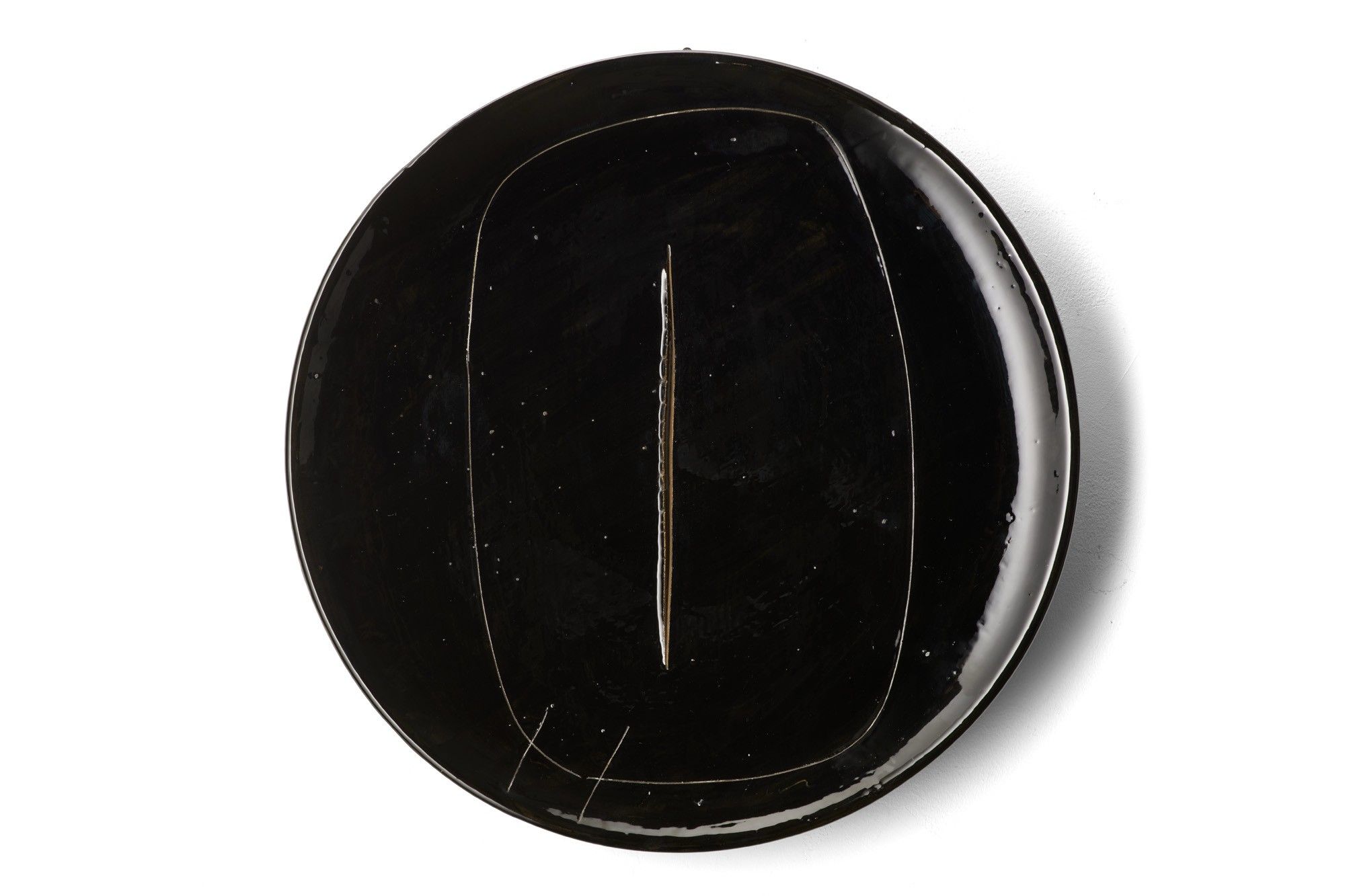 terre cuite engobée, vitrine, coupe et graffito : noir