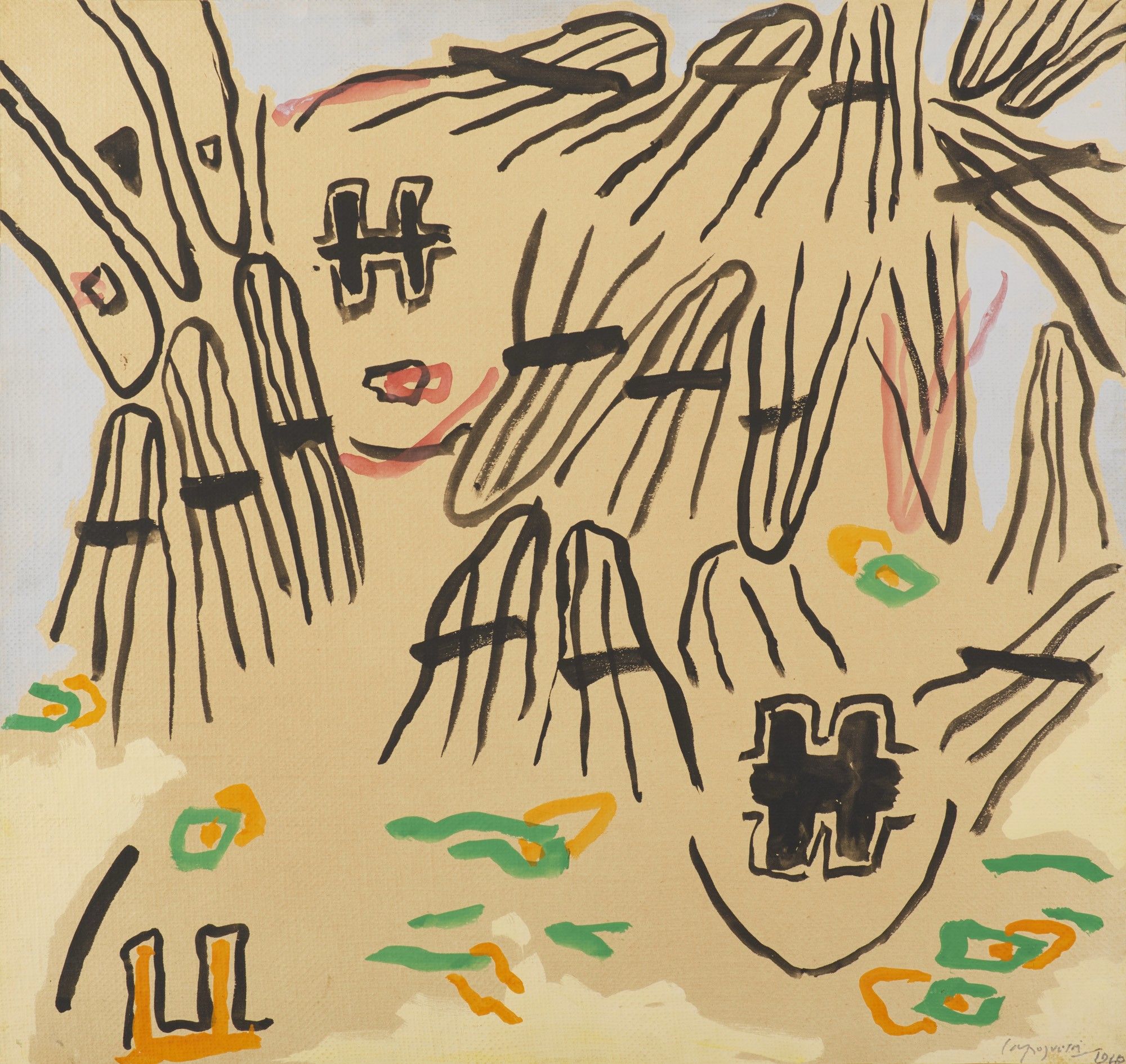 G. Capogrossi. gouaches, collages, dessins" Milan, Electa, 1981, p. 342, no. 461 ill.