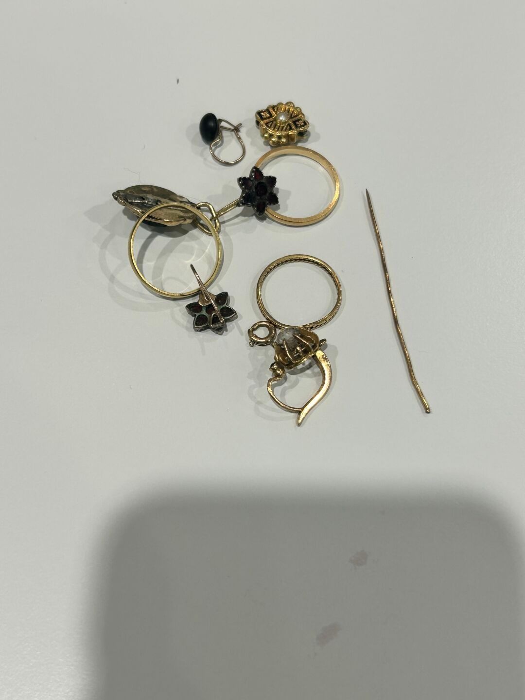 Lot de débris de BIJOUX en or jaune 750 °/°° dont alliances, boucles d'oreilles, pendentifs et divers. Poids brut : 11,6 g. Lot vendu en l'état sur désignation, non présent à l'étude. Délivrance sur rendez-vous uniquement. Frais de vente : 27% TTC.