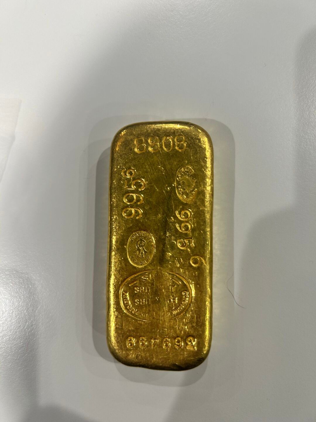 Un LINGOT or n°369499. Titre : 995,6 °/°°. Poids : 1004,8 g. J. Voisin essayeur.