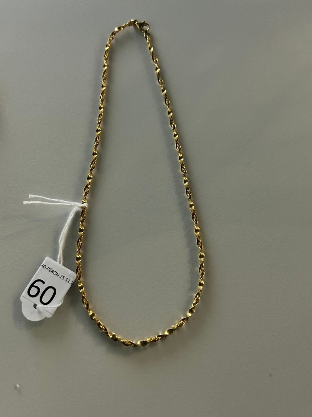 COLLIER en or jaune 750 °/°° maille torsadée. Poids : 7,5 g.