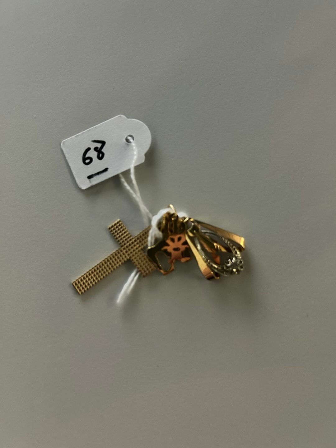 Quatre BRELOQUES en or jaune 750 °/°°. Poids : 5,1 g.