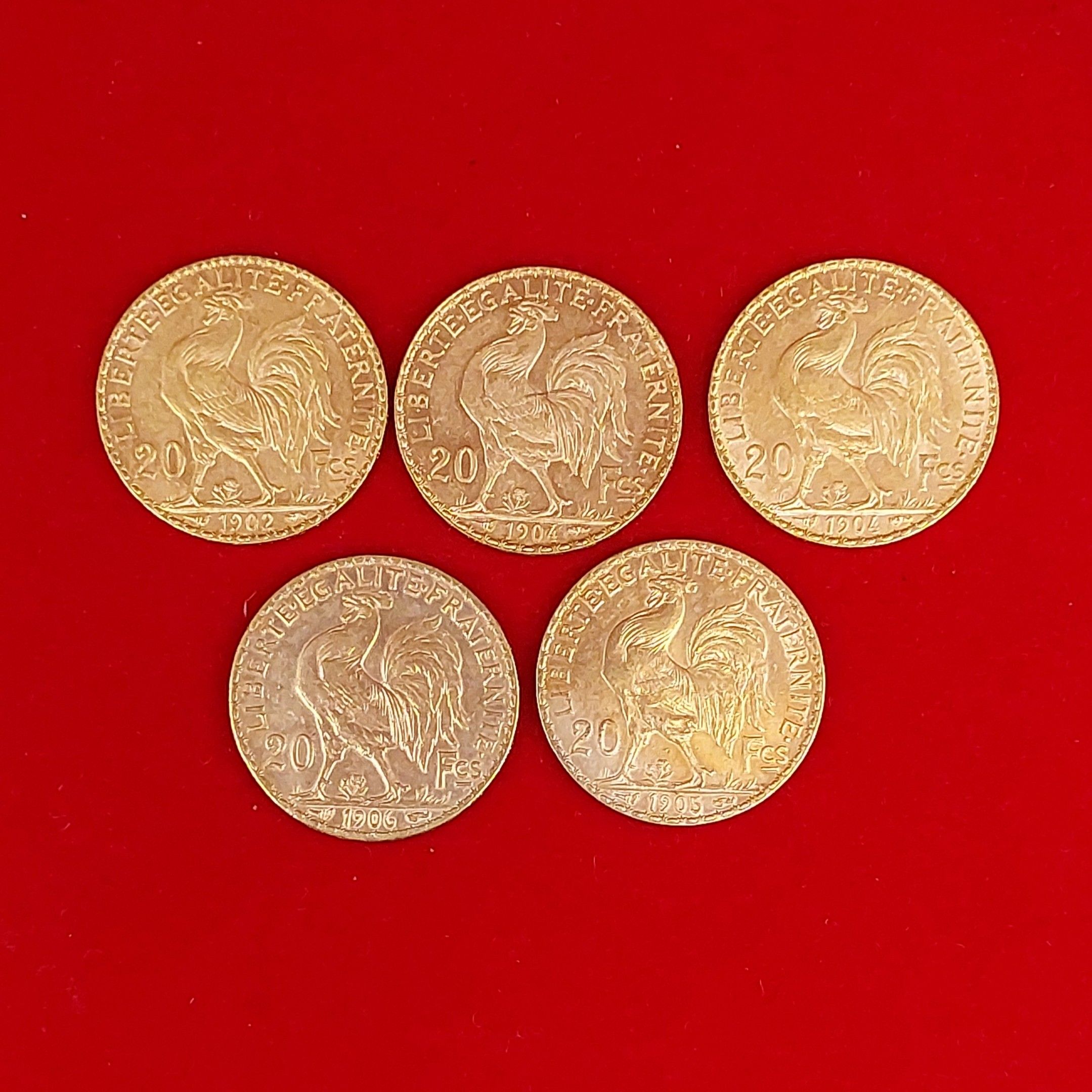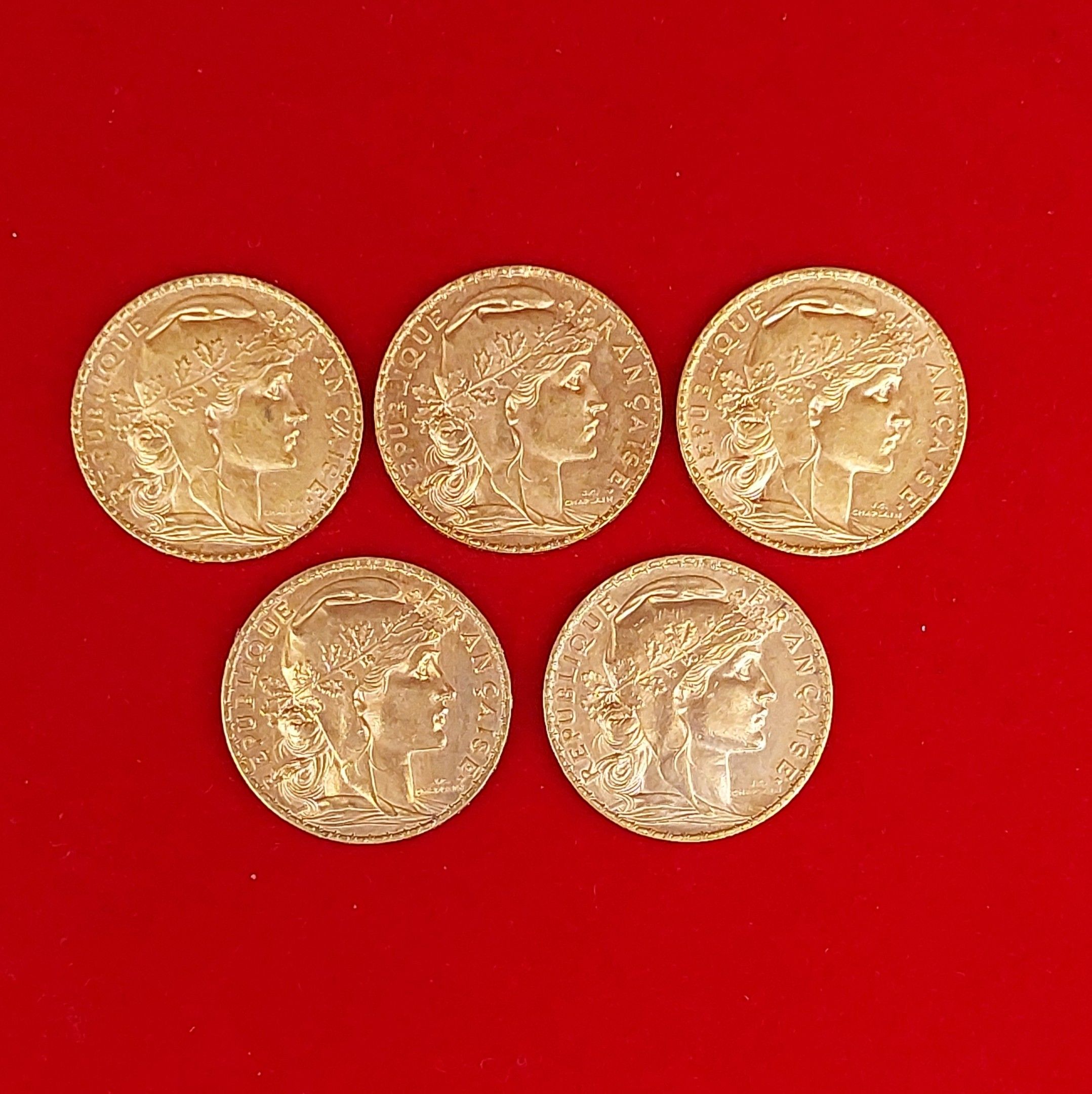 IIIème REPUBLIQUE 1871/1940 : Lot de 5x20 Francs Or « Marian…