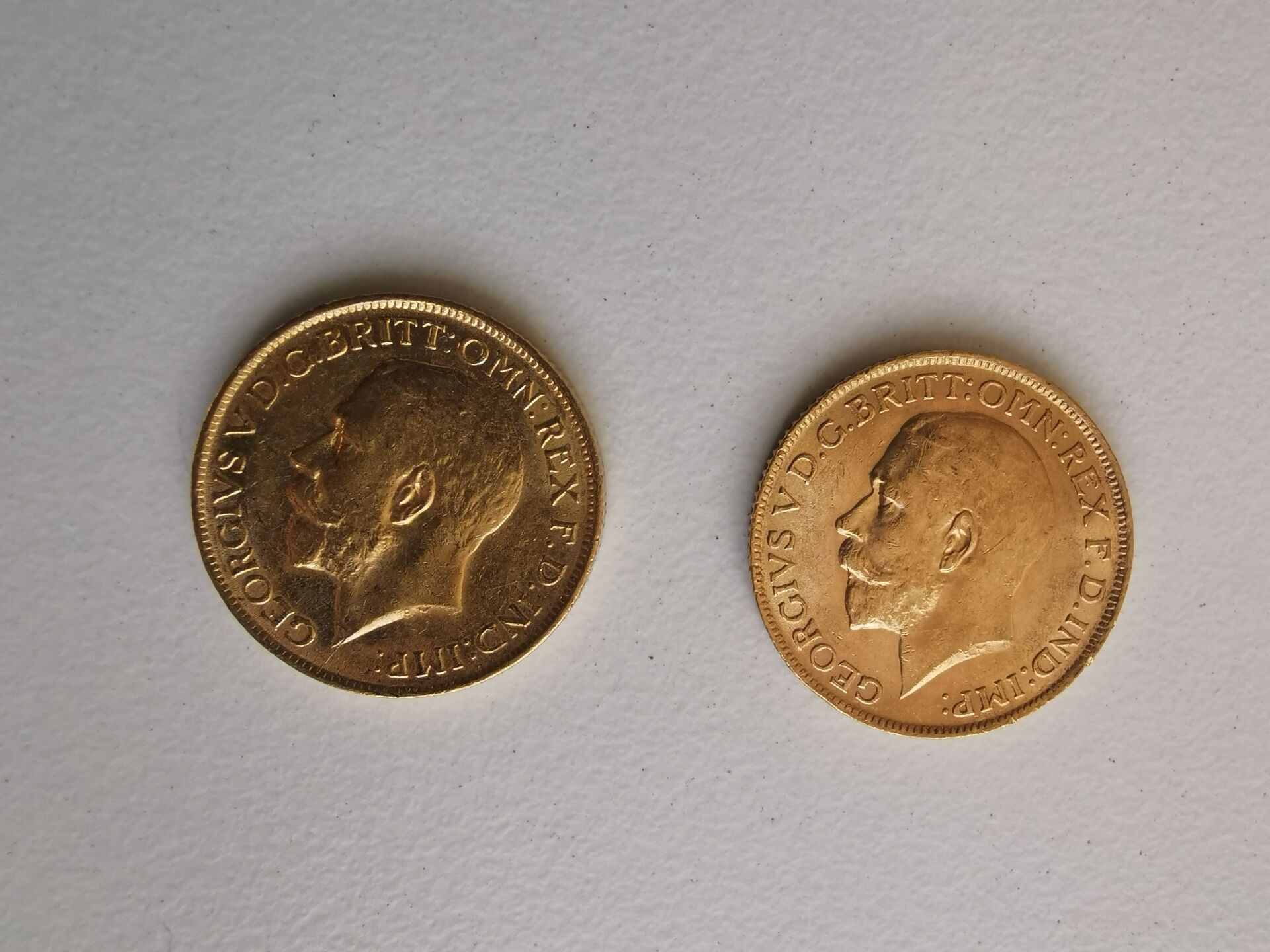 2 Pièces Souverain or Georges V 1918 -15.8 gr - suite à succession, vendues sur désignation, conservées dans un coffre à la banque, non visible à l'étude -
