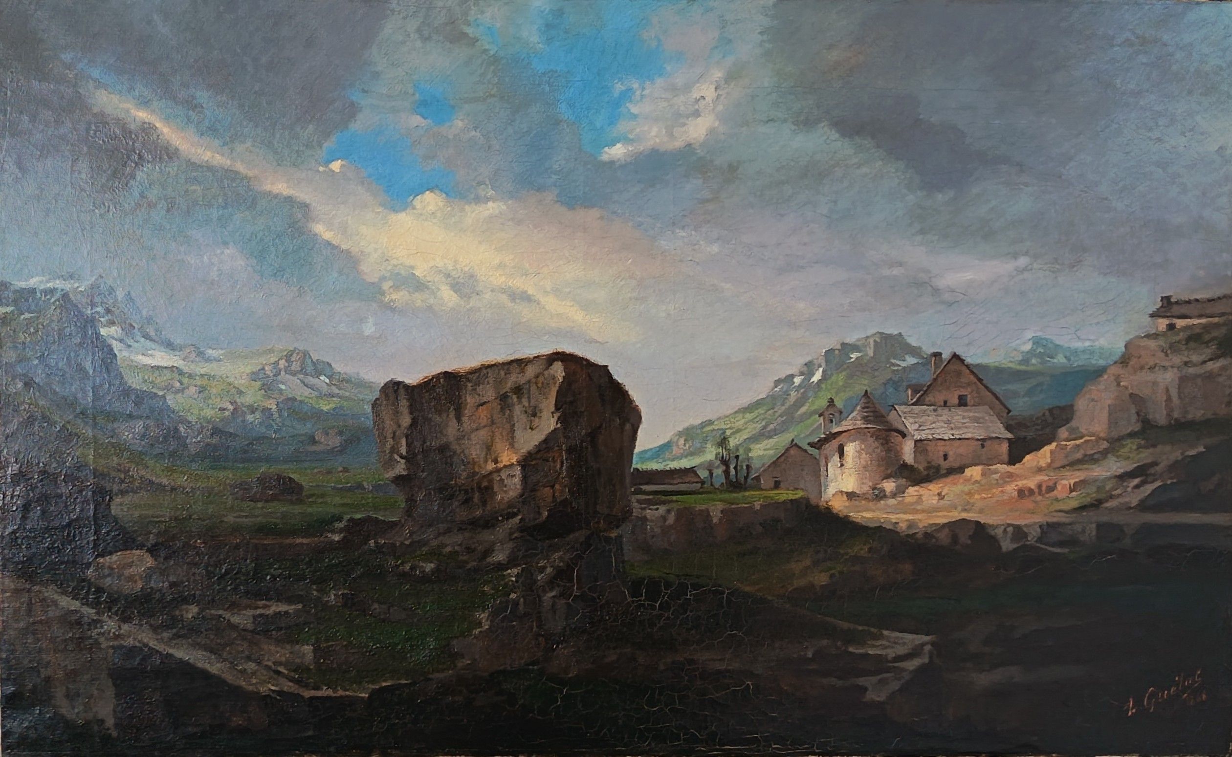 Laurent GUÉTAL (1841-1892) Paysage en Bérarde Huile sur toile, signée en bas à droite et datée 1868 51 x 82 cm (restaurations)