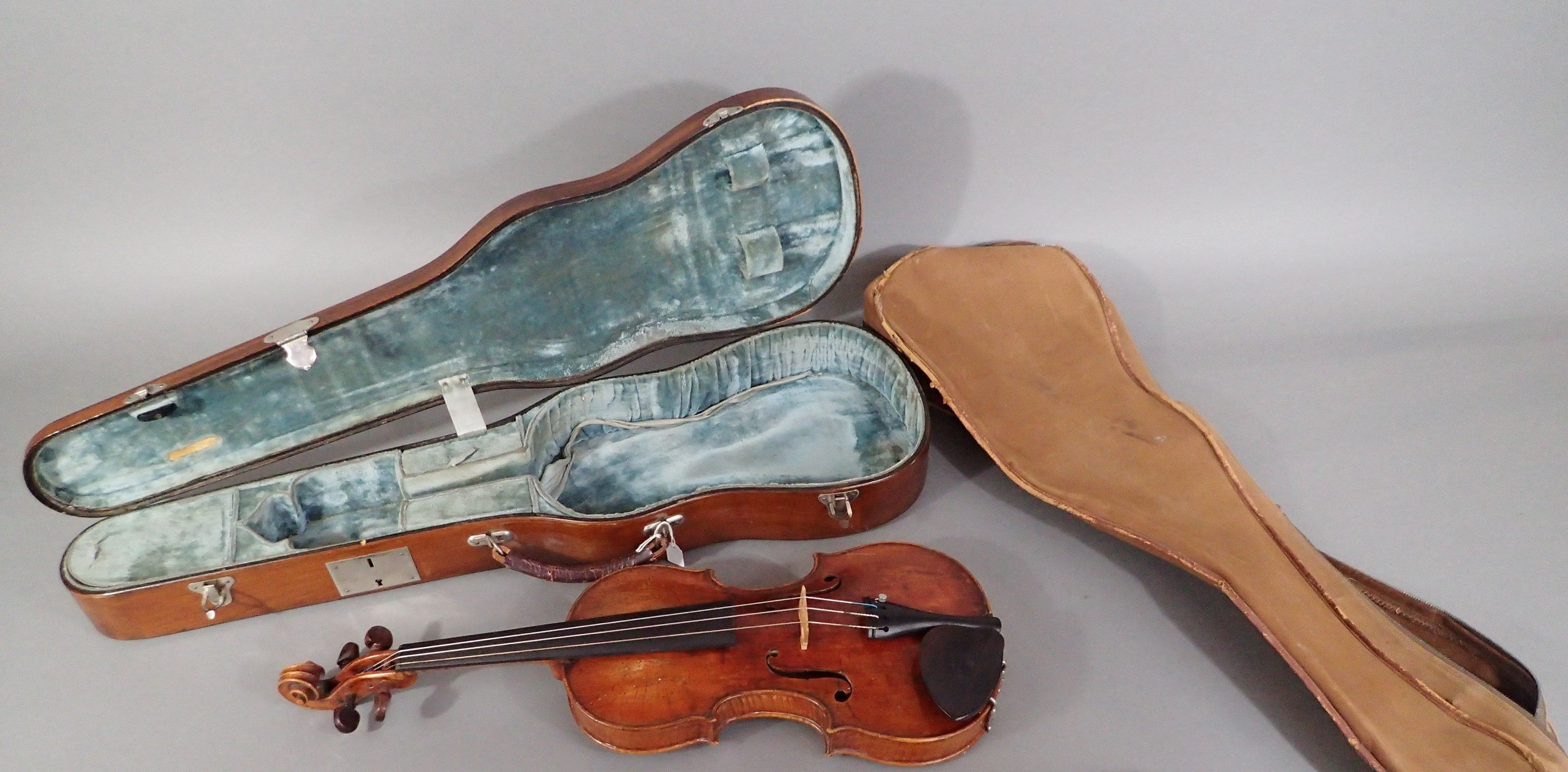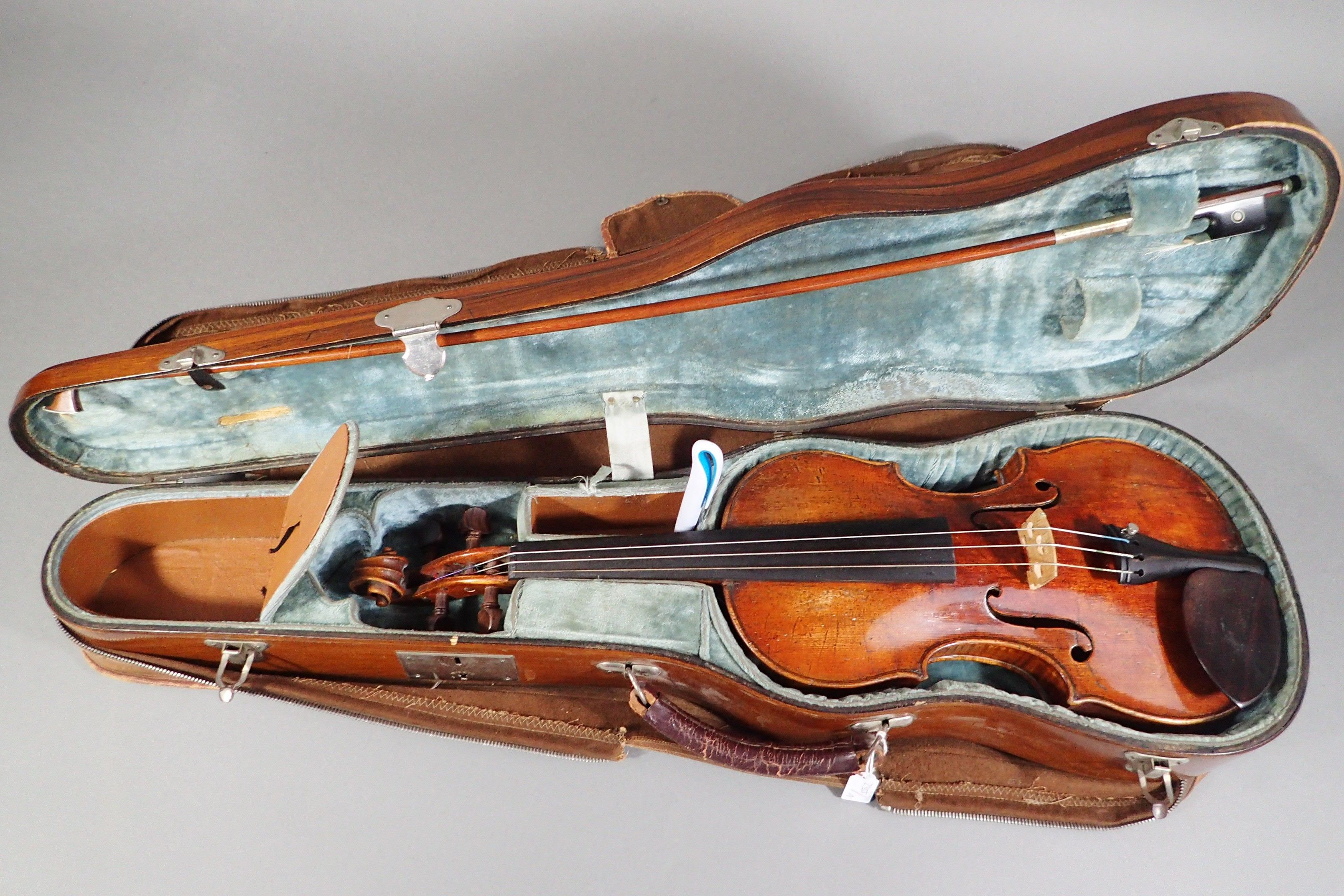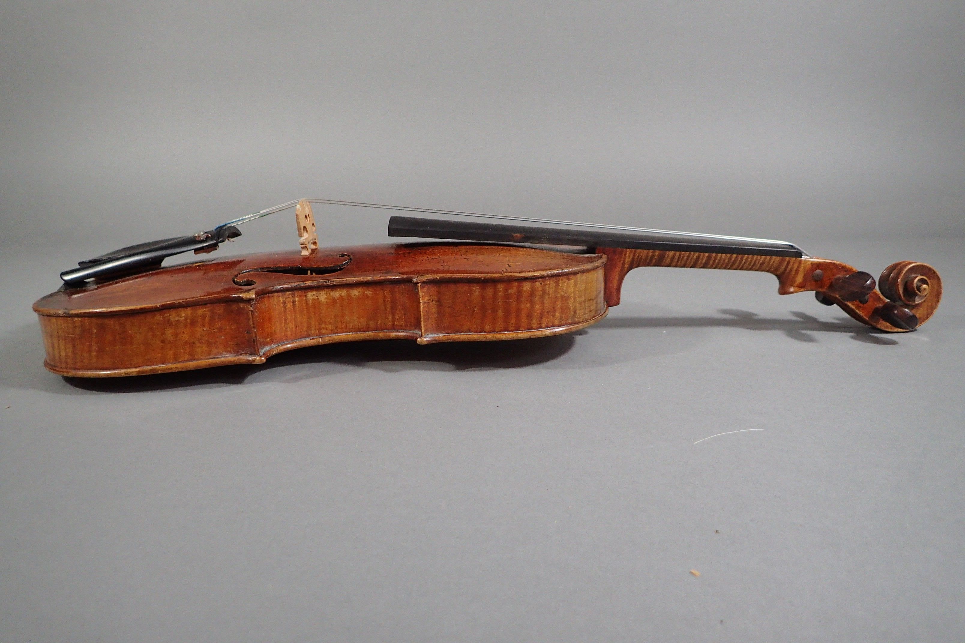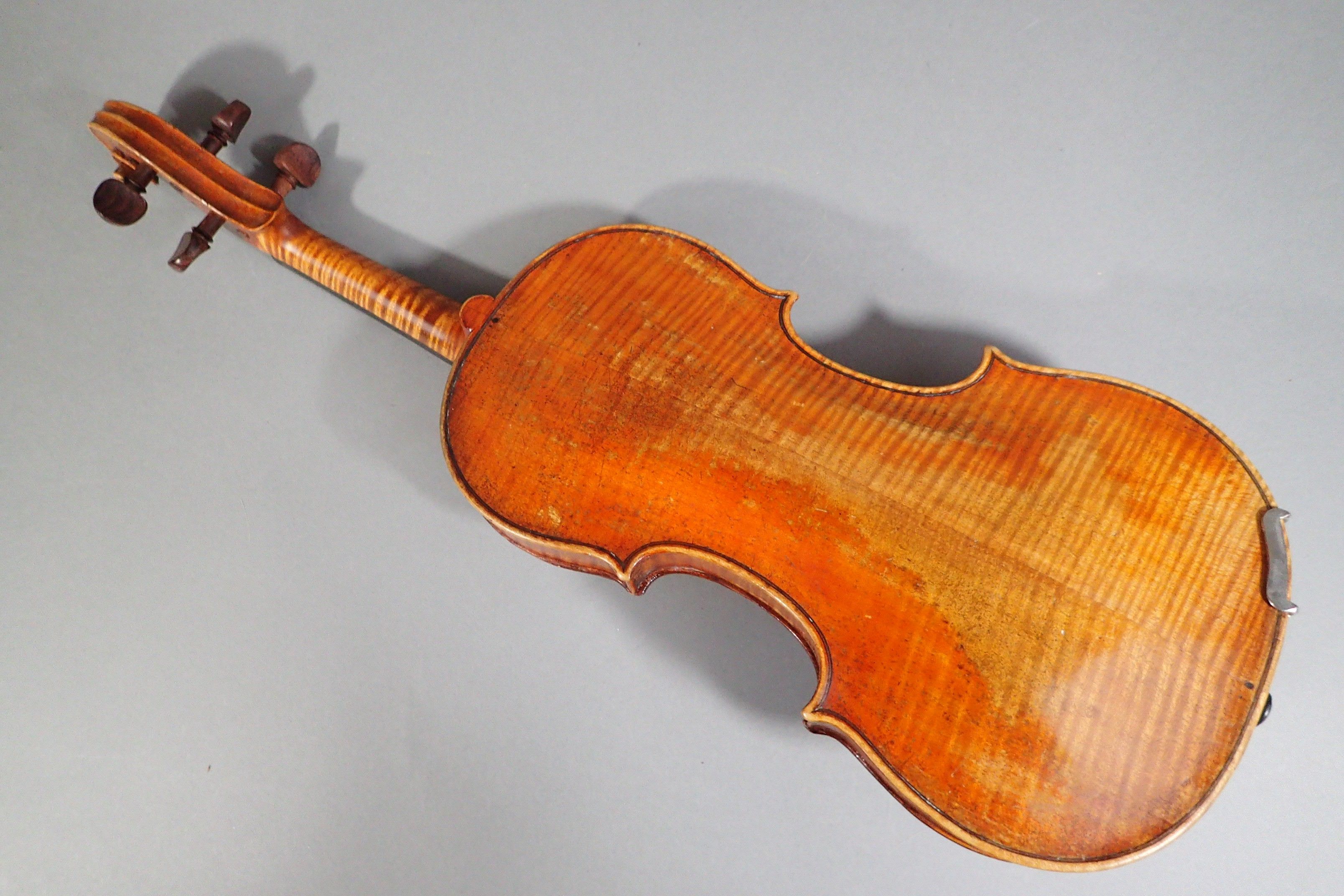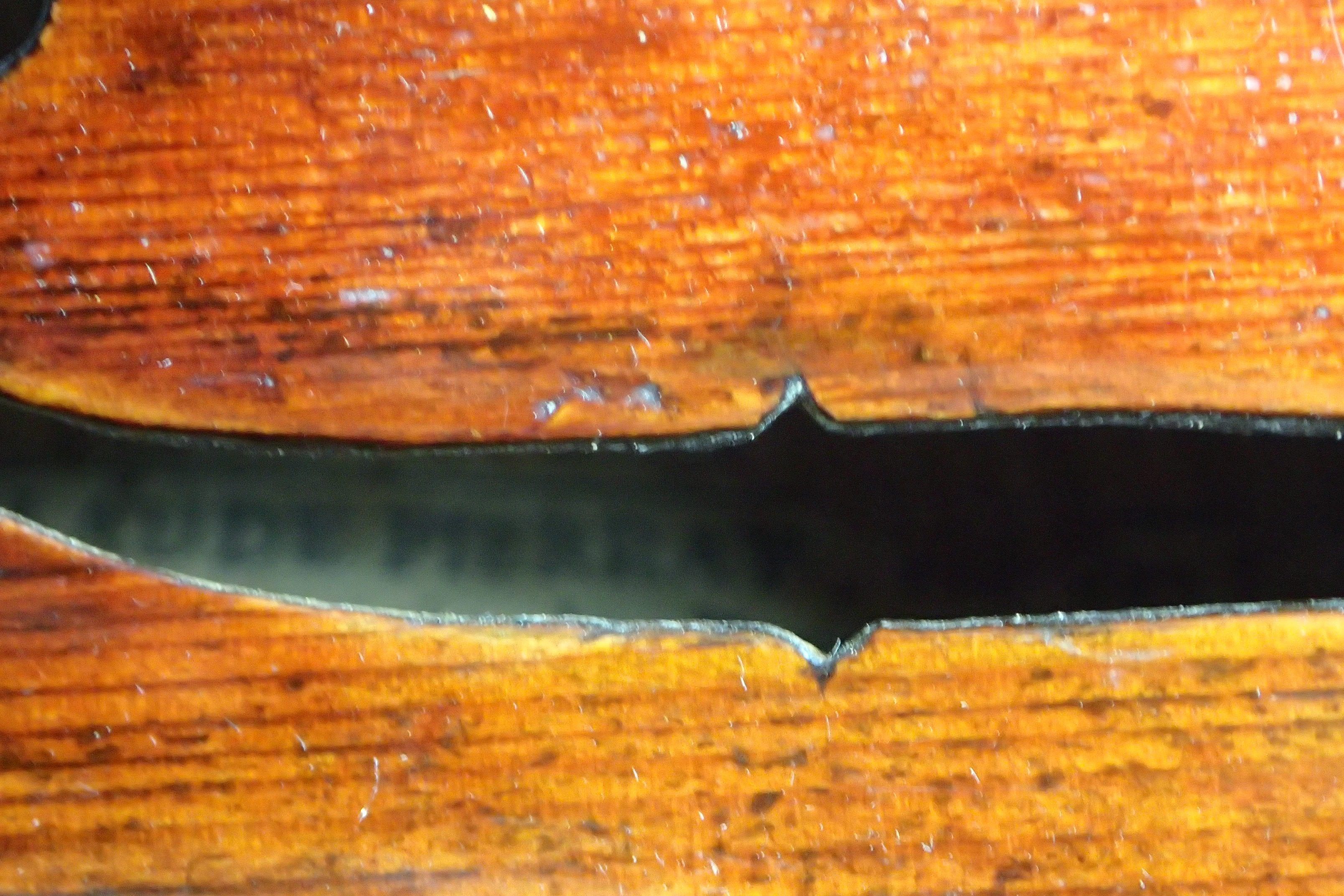 Violon français fait vers 1740-1745 dans le style de Pierre Saint Paul. Quelques restaurations sur la table et piqûres de ver. Longueur : 357 mm.