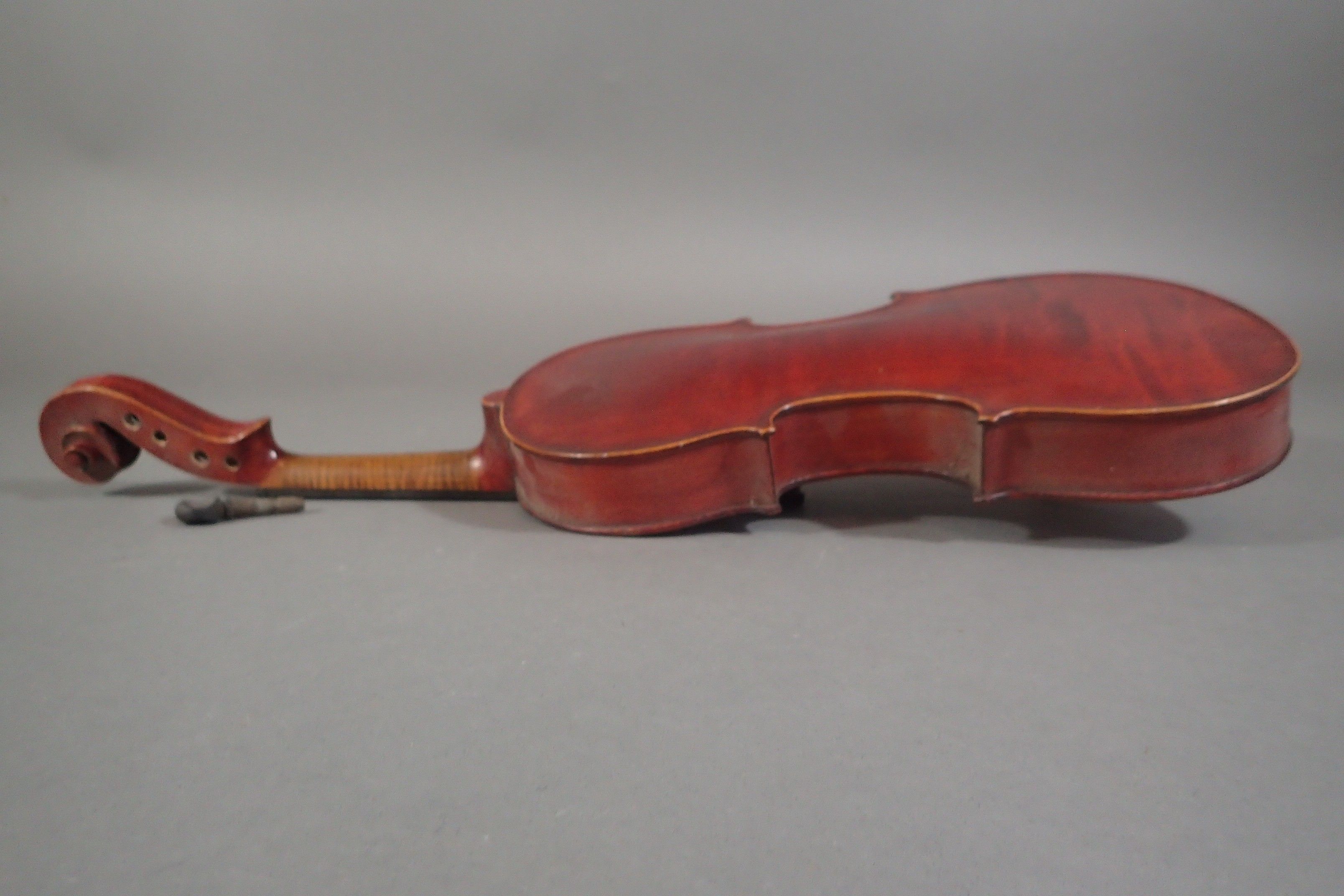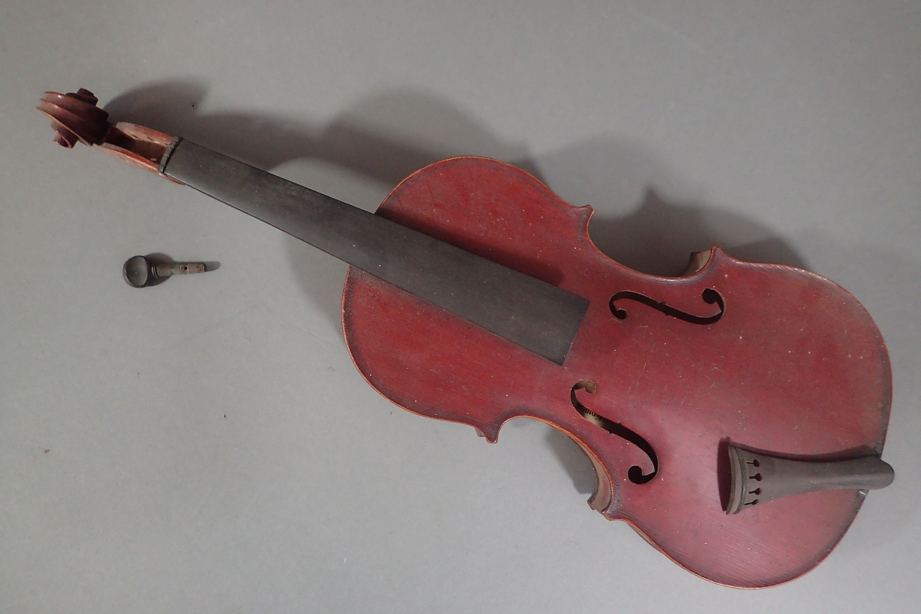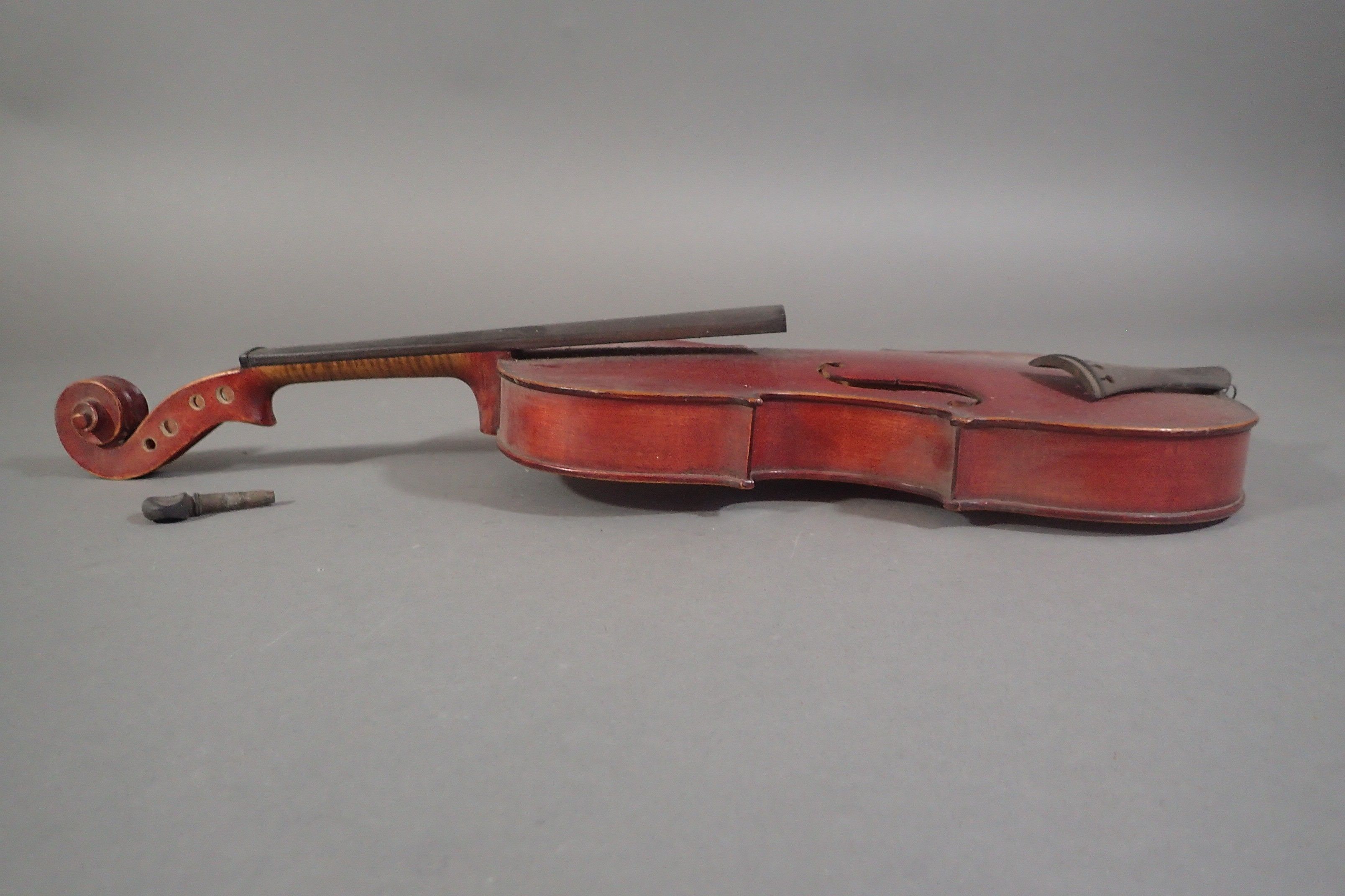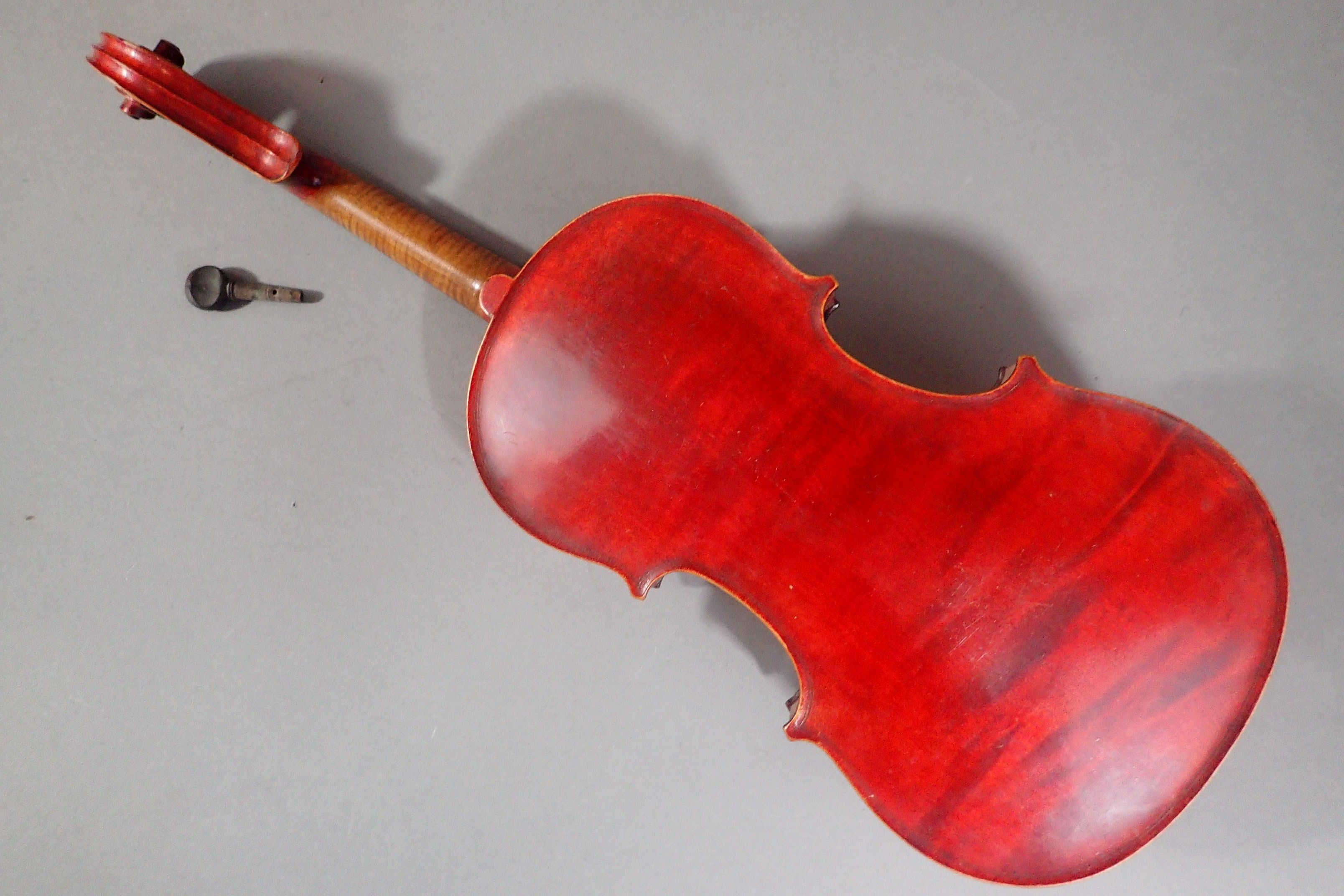 Violon (Long. : 302 mm) Dans son étui avec un archet (62 cm) (archet cassé). Etiquette Médio-Fino