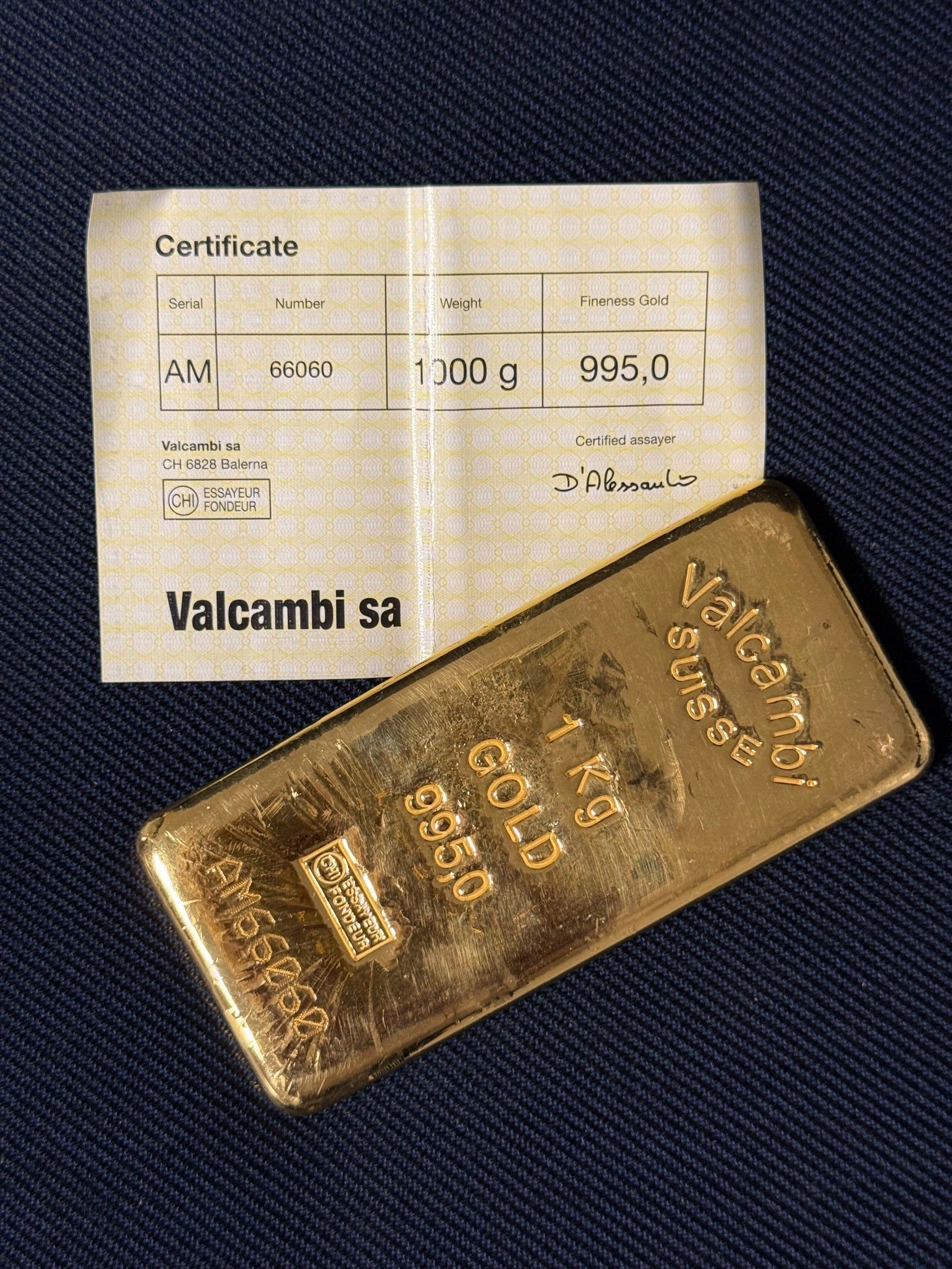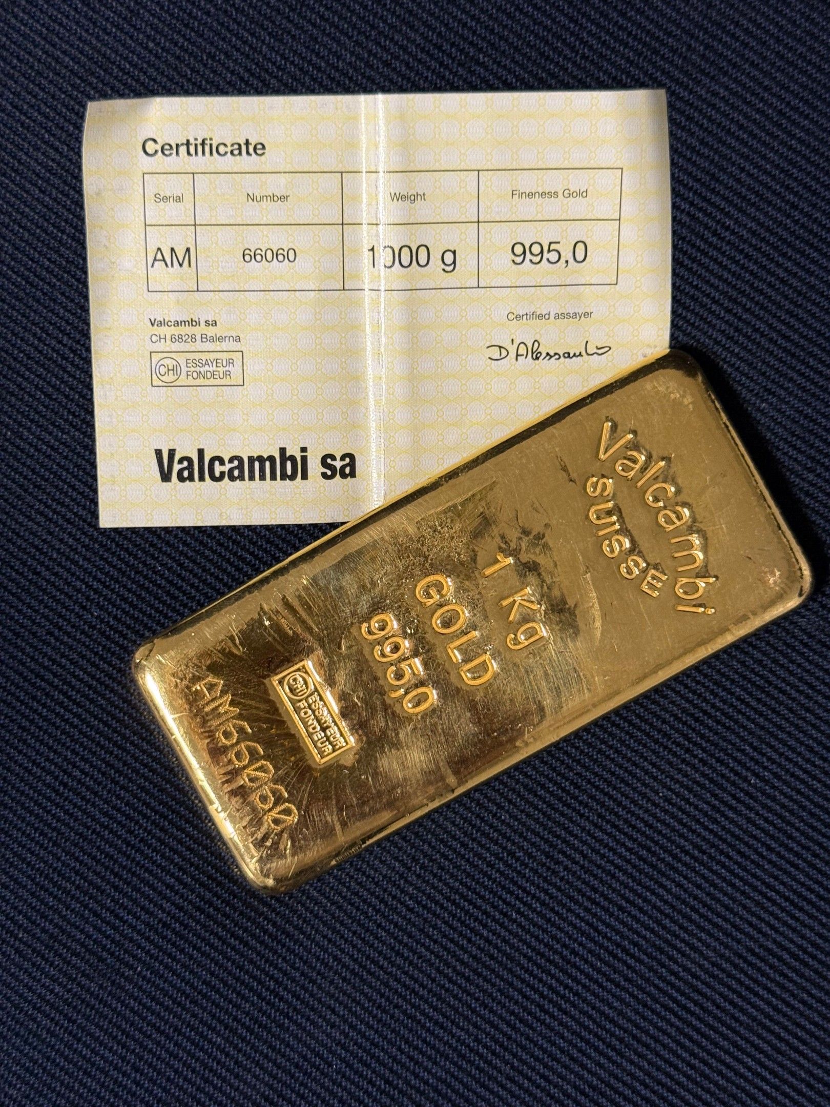Certificat Valcambi Sa (Suisse)