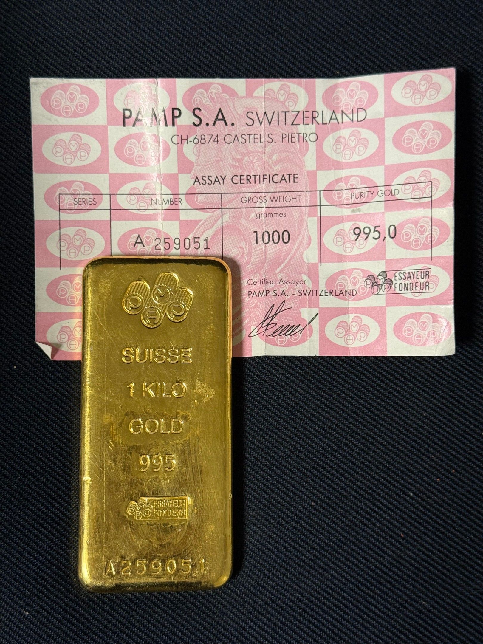 PAS DE LIVE Lingot d'or, numéroté A259051.